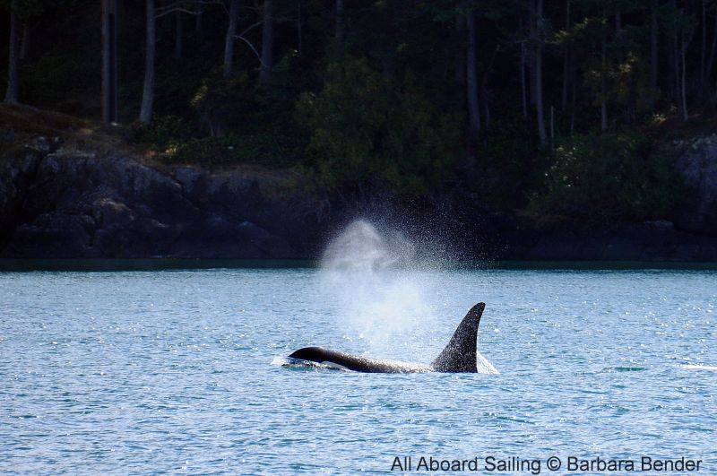 We sailed North into the Cactus Islands and through Johns Pass to meet a humpback whale. Together we travelled the North Side of Stuart island to Turn Point where we met K pod. Then North into Canada with breaches, spy-hops and kelping playful whales. Headed home via Skipjack Island where the harbor seals have made home in the Honeycombed sandstone