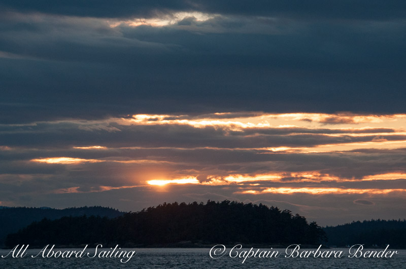 Independence Day – freedom is found in sailing north with good speed on a beam reach for the sunset. We returned to the south with a mug of hot chocolate as darkness fell. Rounding Pt Caution the show began. Bombs bursting in air crescendoed as we sailed into Friday Harbor amidst the grand fireworks display. Every sail is different.