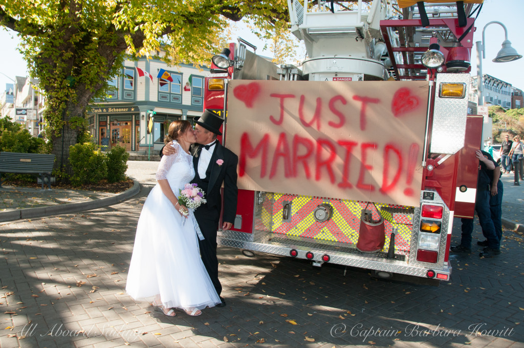 Our wedding aboard S/V “Peniel” docked at Spring Street Landing in Friday Harbor