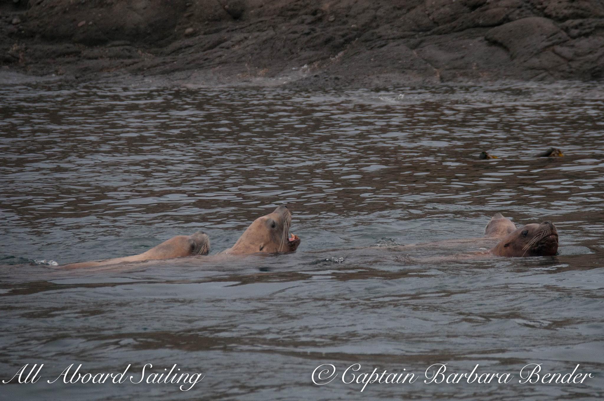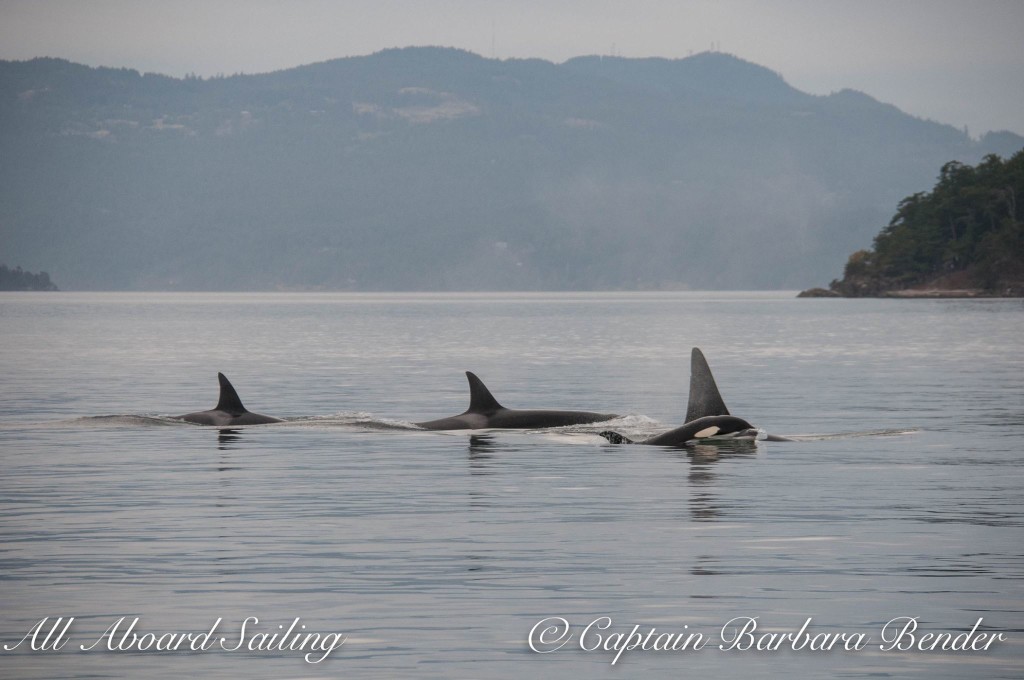 Sept 24th – We sailed out through Spieden Channel crossed the border to meet a family of transient (marine mammal eating) killer whales known as the T60’s. Together we circumnavigated Gooch and Comet Island. T60F stayed close to her big brother, T60C, as they explored the shorelines. Many harbor seals hauled out in New Channel staying warm on a chilly day.
