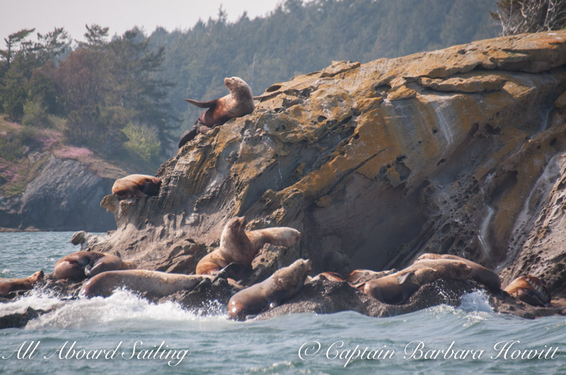 April 27, 2018 – Great winds for our first sail of the season. Wing on wing passing Yellow Island in bloom. Presidents Channel and onto Patos Island to meet transient orca families T123’s and T36A’s. Beating into white caps together we skirted the islands of Sucia and Matia. Homeward bound in the changing light over the Canadian Gulf Islands. Great sailing conditions but we tucked close to shore for BBQ’d supper.