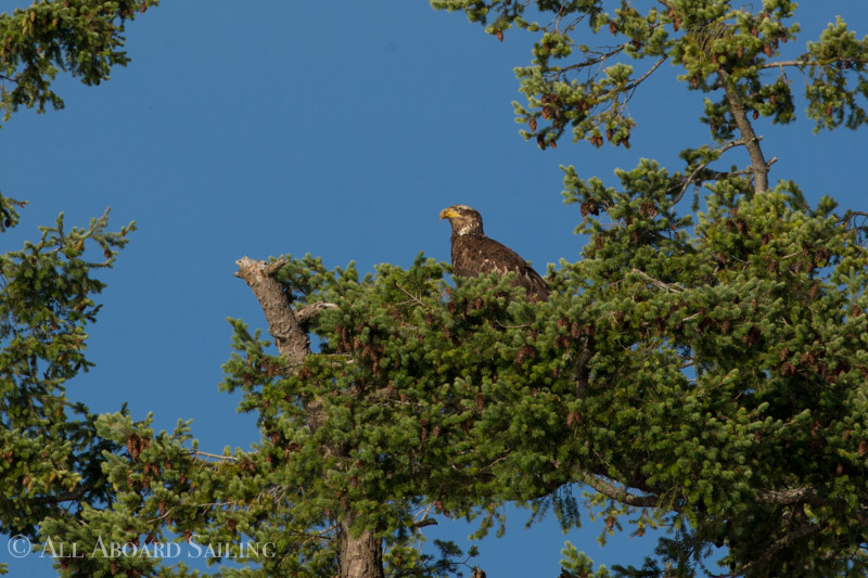 June 17, 2019 – It was a beautiful, sunny day to be sailing through the islands. We sailed north up San Juan Channel weaving in and out of our favorite passes enjoying the peaceful lapping of the waves on the hull. Hugging close to the shorelines we enjoyed the colors of the forest and wildflowers in bloom. Venturing up to Jones Island gave us a great view up Presidents Channel and west through Spieden Channel. The clouds helped to transform our sunset into something really beautiful as we sailed back to the harbor.