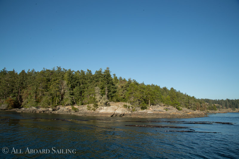 October 5, 2020 – Thanks today to Jim Maya for helping with today’s sunset sail. Sailing beam reach over Reid Rock to Shaw Island and a peaceful wing on wing sail along the Shaw coastline. We took the pass inside Canoe Island to Picnic Point with a view of Mount Baker as we crossed to Upright Head. The steep cliffside of the Lopez forested shoreline was well lit by the late afternoon sun. Jim pointed upwards and we caught a brief glimpse of a Peregrine Falcon. There are many more cormorants roosting on the cliff face North of Odlin Park. After clearing Flat Point the wind picked up enough for a close hauled sail into the setting sun.
