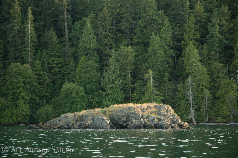 June 24, 2021 – After cutting through the pass behind Turn Island we sailed on the rips of the flood tide to Flat Point, Lopez. Biggs/transient orcas, T77C, T77D, T36 with T36B’s, were just ahead of us and we met them as we sailed close to shore at Upright Head. The two males, T125A and T128, left the others to head into East Sound, and we sailed alongside T77C and T77D with the others ahead. From Frost Island to Thatcher Pass we caught up with the T36’s. When the whales headed for Anacortes we went north along the shoreline of Blakely Island admiring the forest and the bald eagles. Coming in through Peavine Pass we sailed back to Upright Head and enjoyed an amazing sunset as we sailed the shoreline of Shaw Island back to Friday Harbor.