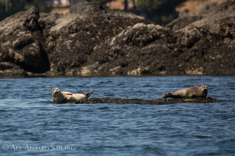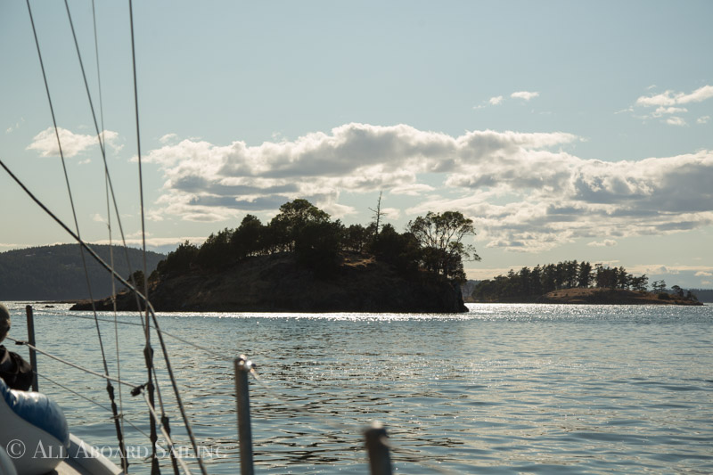 July 21, 2021 – Full day sail circumnavigating San Juan Island. We cast off and headed south hoping to sail with a humpback whale who was headed NE towards Cattle Pass. The whale stopped traveling and was milling on Salmon Bank for a bit as we were getting close to Cattle Pass. However, the whale began traveling again this time WNW in some very sloppy seas. The whale was identified as MMY0079 “Scratchy”. We got a decent first pass but on subsequent surfacings the whale changed to a westerly course to Hein Bank and we decided sea conditions weren’t favorable to keep up with it. Instead we headed north along the west side of San Juan Island following reports of three orcas who were milling near Halibut Island for many hours on the Canadian side of the border. After we passed Lime Kiln Lighthouse the orcas crossed the border to the US side aiming at Henry Island. We got lucky to get there in time to see them – T77C with sibling T77D with T49A2 before they crossed back into Canada. Following the whale encounter we headed to one of our favorite places called New Channel along the north side of Spieden Island. We came down San Juan Channel on the west side of Jones Island and through the Wasp Islands before returning to Friday Harbor.
