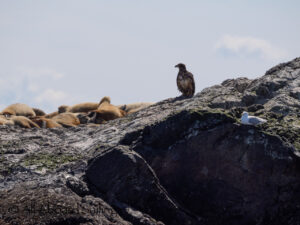 Juvenile bald eagle on Whale Rocks with the Steller sea lions By allaboardsailing@yahoo.com April 15, 2023 Juvenile bald eagle on Whale Rocks with the Steller sea lions ← Previous Next →