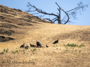 Bald eagles, vultures and crows eating dead mammal on Spieden Island By allaboardsailing@yahoo.com June 27, 2023 Bald eagles, vultures and crows eating dead mammal on Spieden Island ← Previous Next →