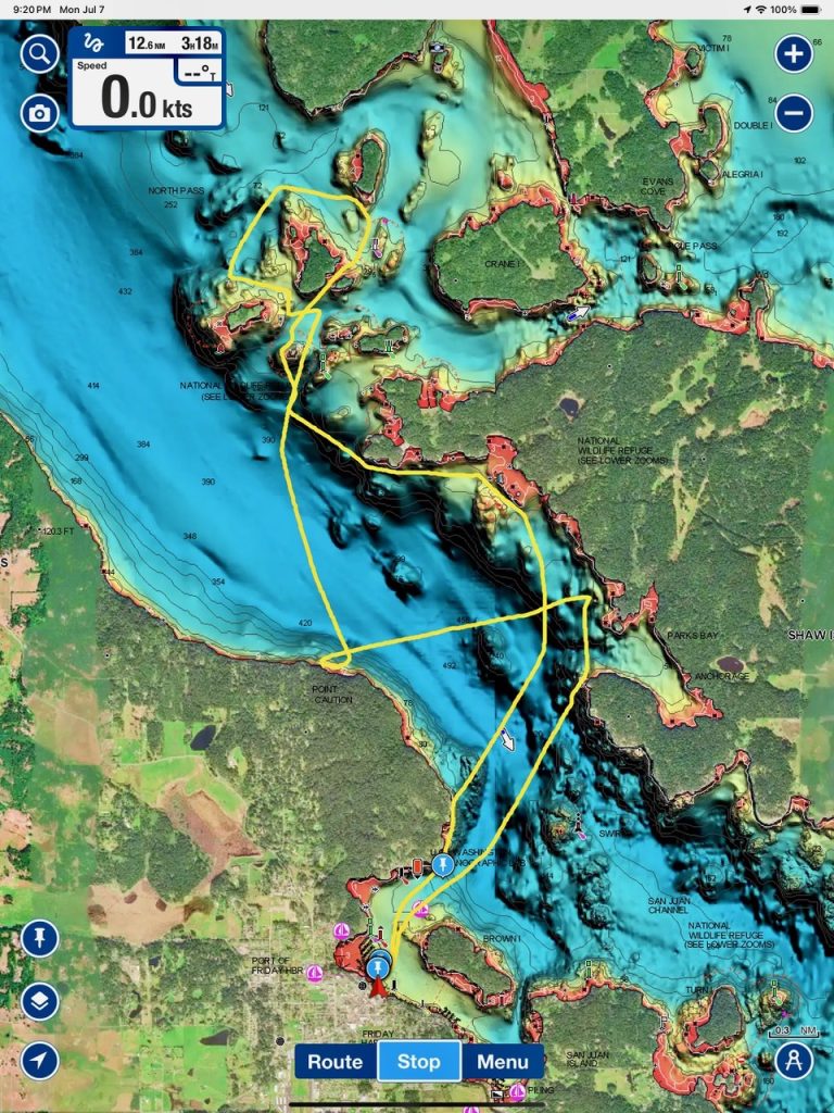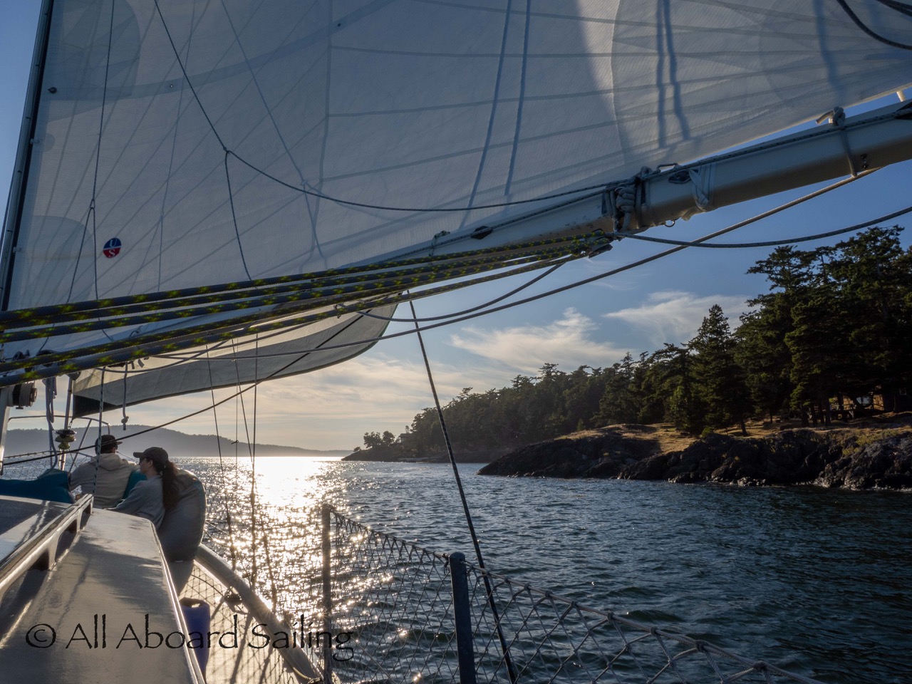 Sailing along Shaw Island coastline