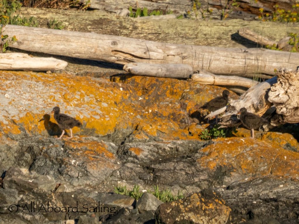Three black oystercatchers chicks on Low Island