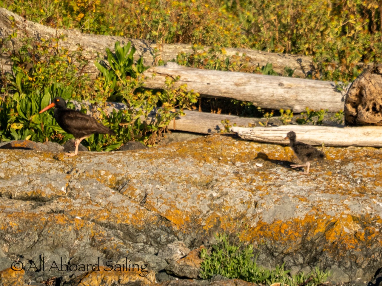 Black oystercatcher with chick on Low Island