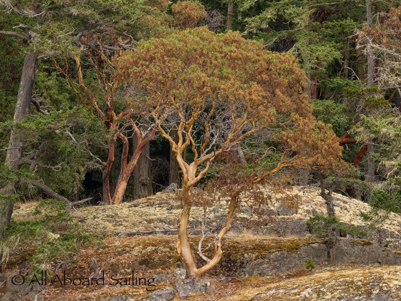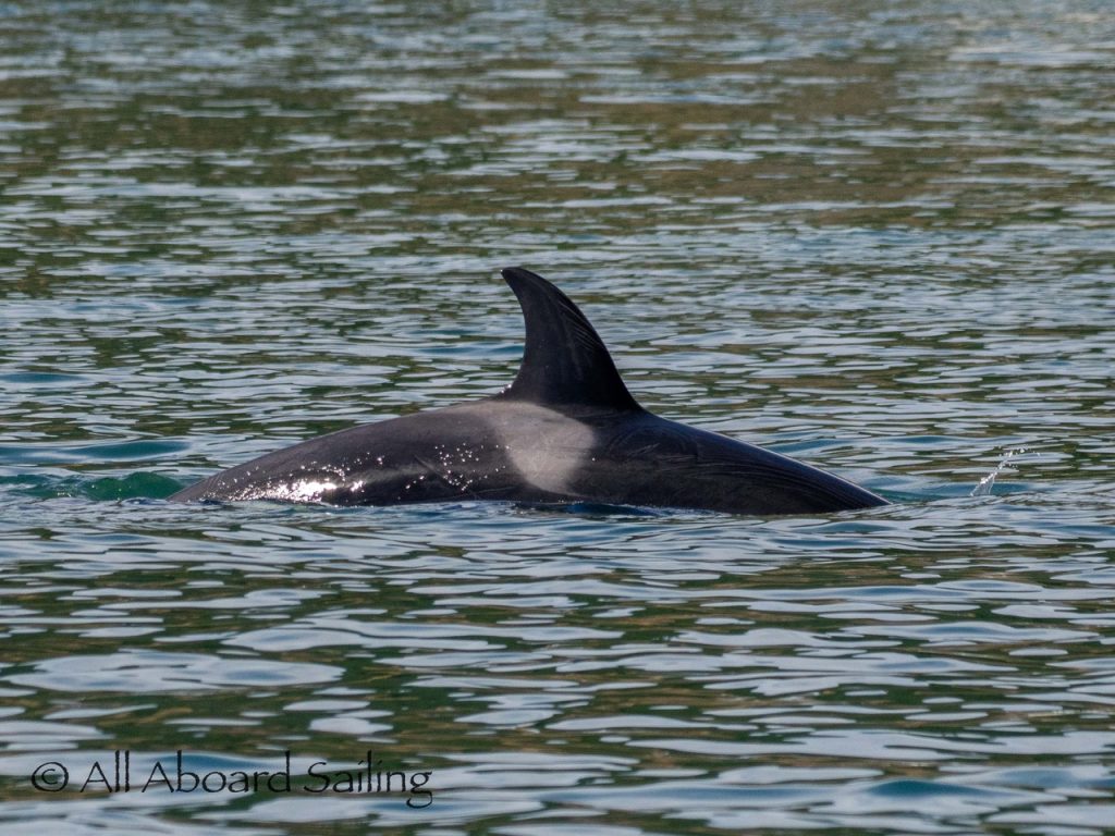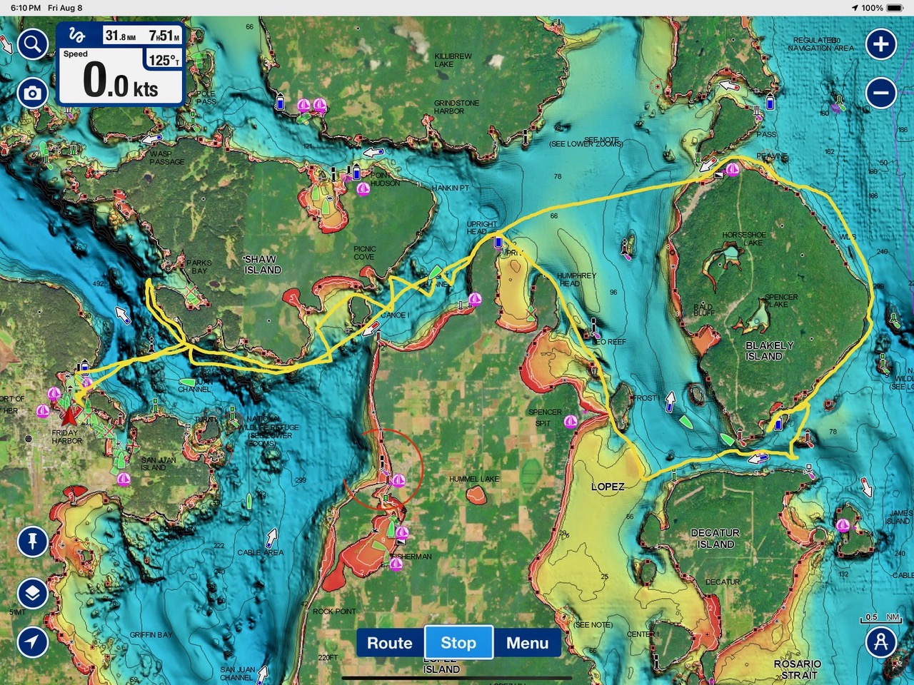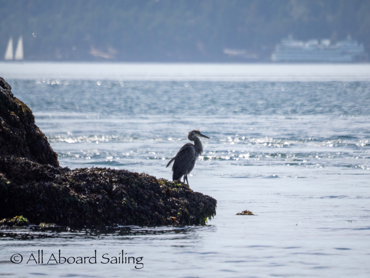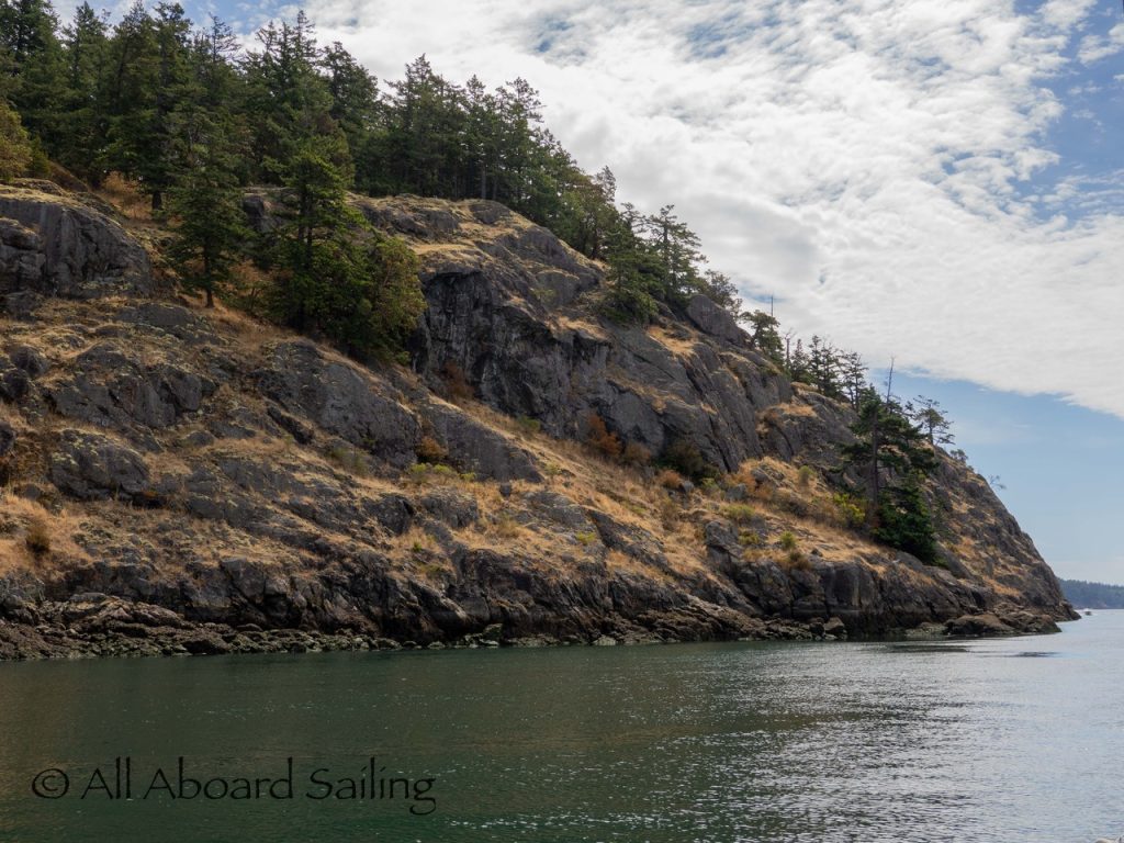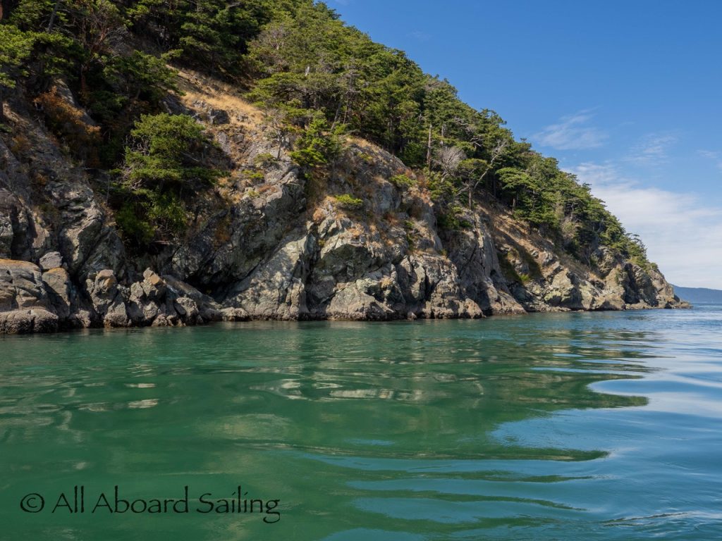 August 8, 2025 – There was a report of Biggs/Transient orcas T109A’s in Lopez Sound. We sailed across to Shaw Island and up Upright Channel to meet the orcas near Thatcher Pass. Slow travel and socializing their way through the pass with a maze of boats and ferries. They turned and went back into the pass and we left them to continue drifting the strong current along the forested shoreline of Blakely Island. Coming back through Peavine Pass we met the orcas again in Upright Channel as they were finishing a hunt. Tacked our way inside Canoe Island seeing the orcas one more time as they traveled up the Shaw Island coastline in San Juan Channel.