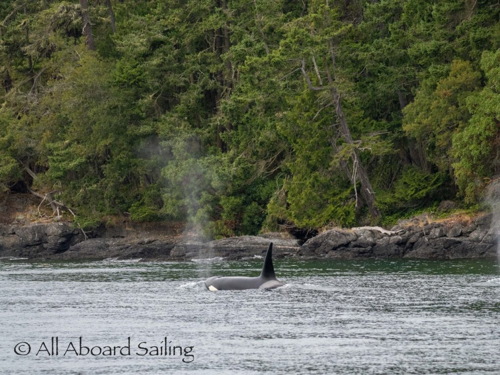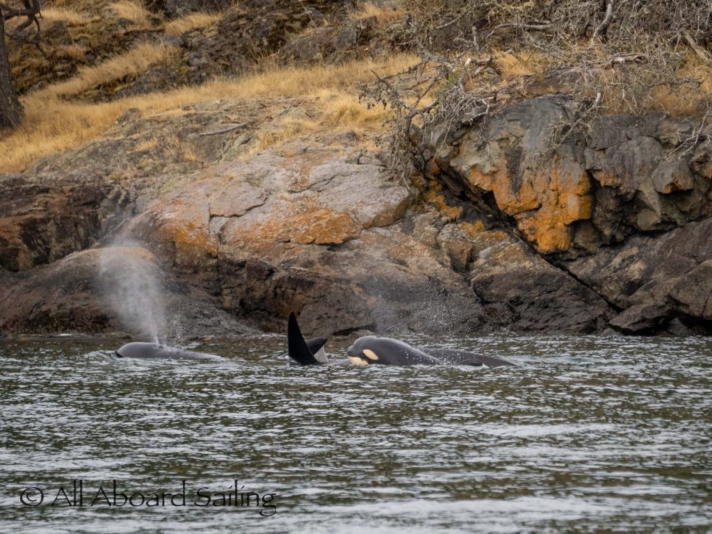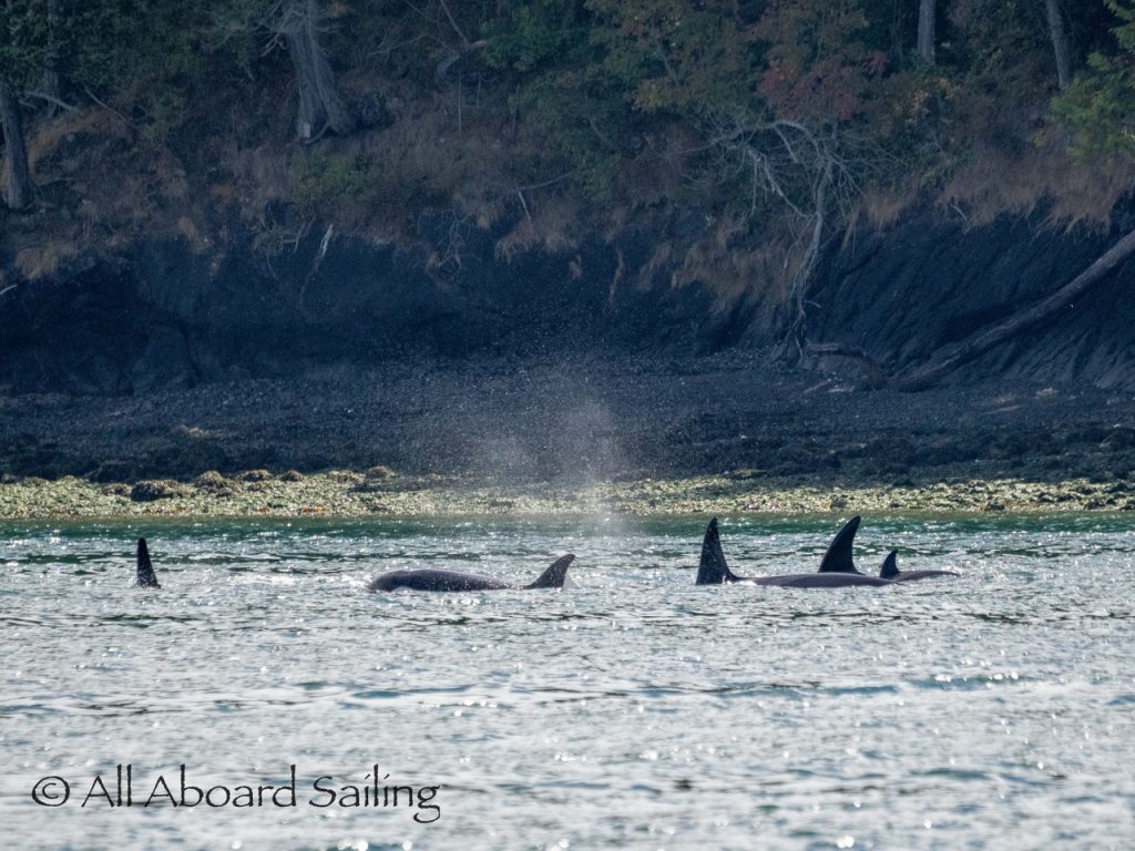 Biggs/Transient orcas T109A’s along Shaw Island coastline