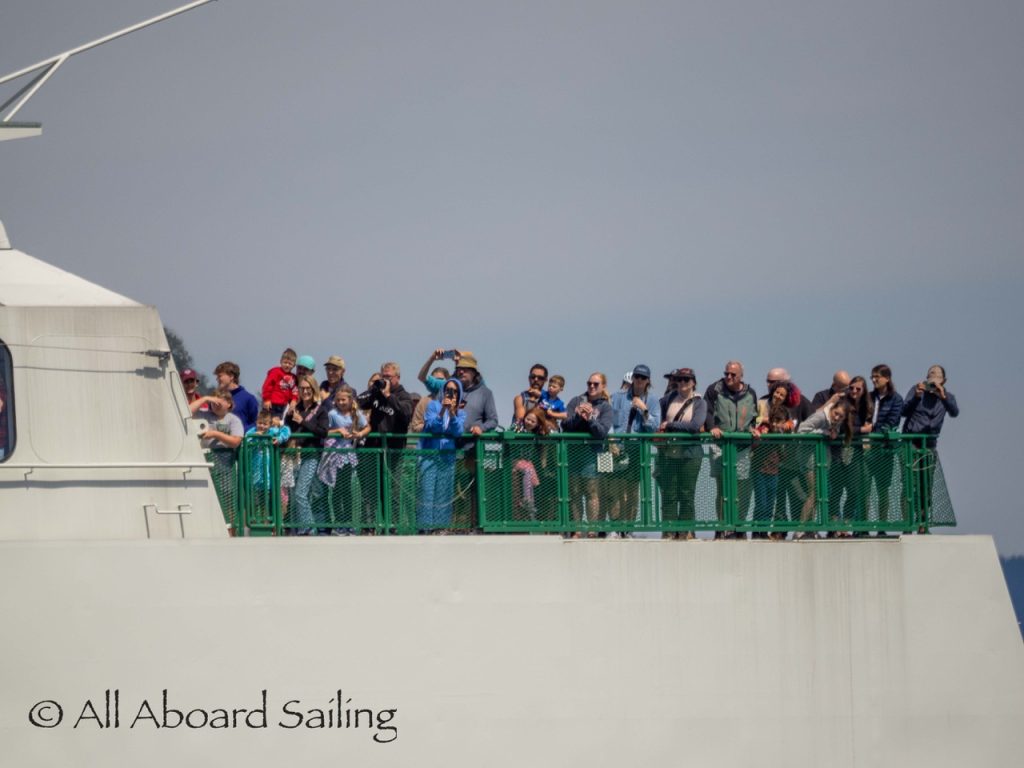 Passengers on the ferry watching the orcas in Thatcher Pass