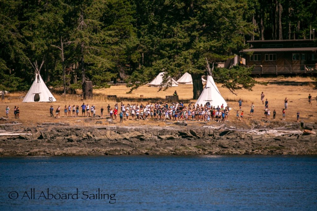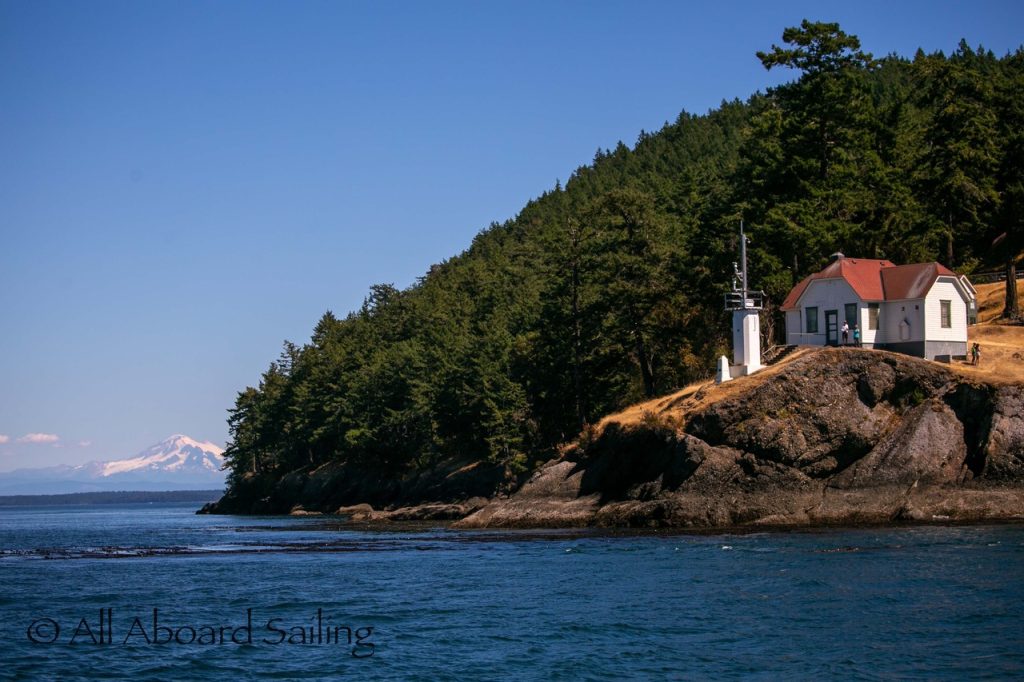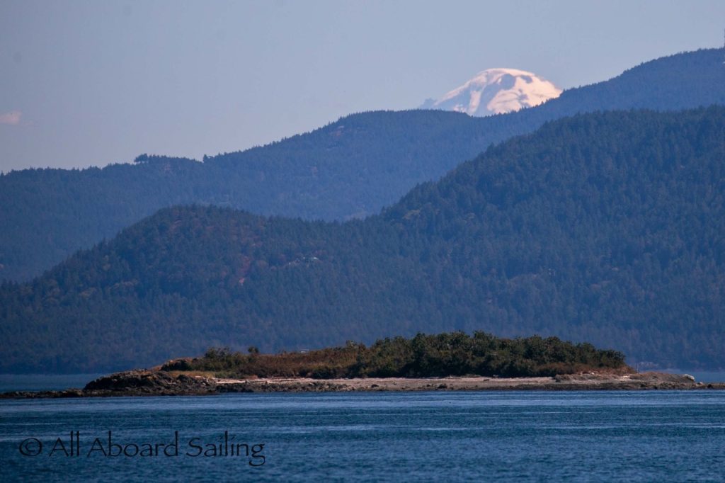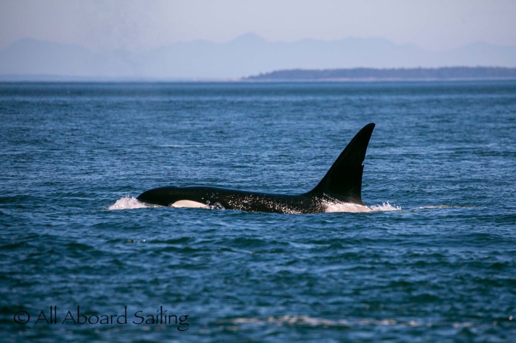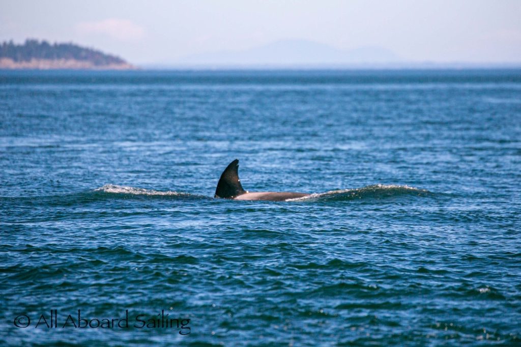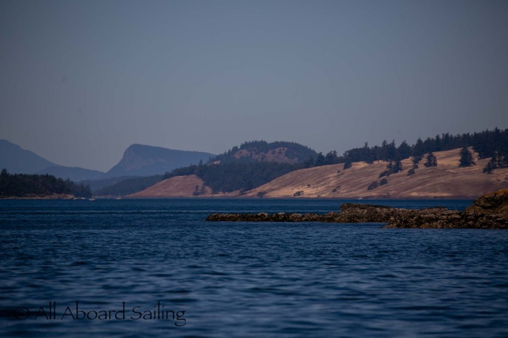 August 12, 2025 – With news of Biggs/Transient orcas T37A’s northbound in Haro Strait we headed north. We sailed through the Wasp Islands seeing harbor seals then up to Jones Island and over to the Spieden Island shoreline. We met the orcas as they crossed to Sentinel Island and rounded into New Channel. All the kids of Johns Island Camp Norwester came down to the shoreline to watch. The orcas took Johns Pass and we continued with them until we reached Turn Pt Lighthouse. Rounding Turn Pt and close into Lovers Leap taking the Stuart Island shoreline back to New Channel where we enjoyed drifting the calm fast moving waters. Over to Flattop Island where more harbor seals were hauled out warming in the sunshine before making our way back to Friday Harbor.