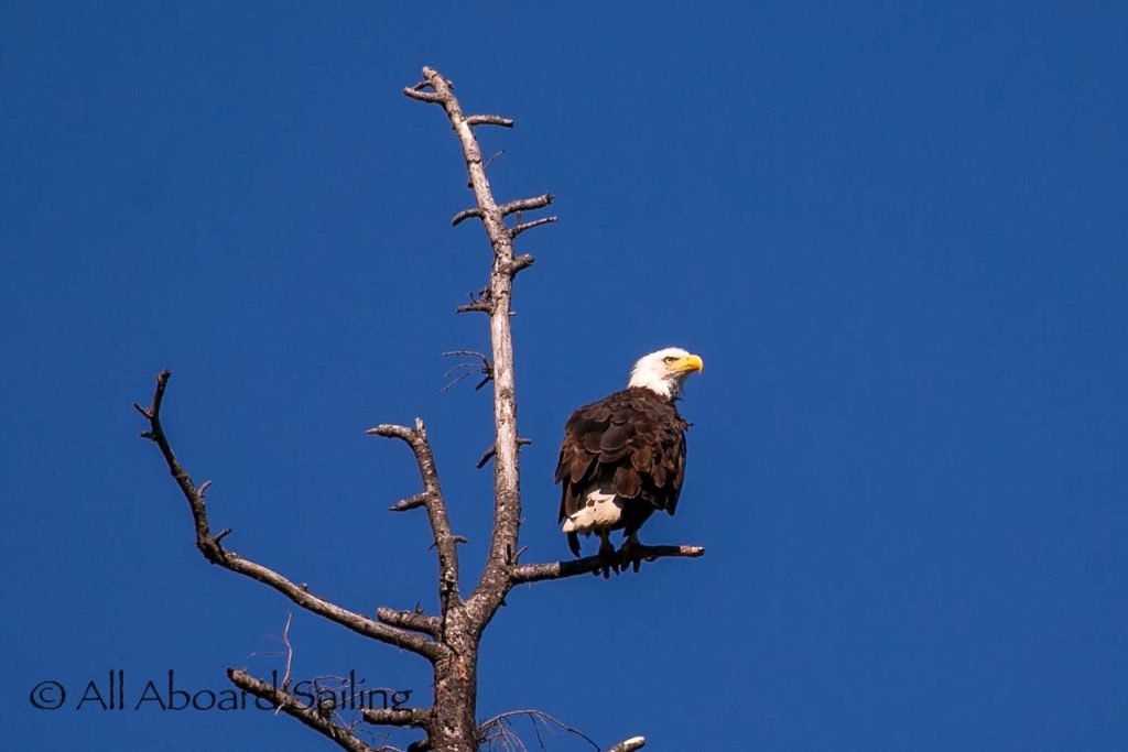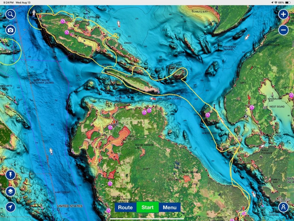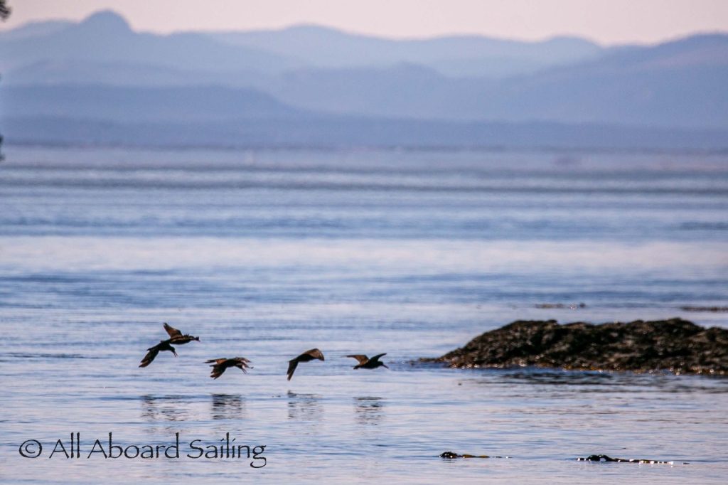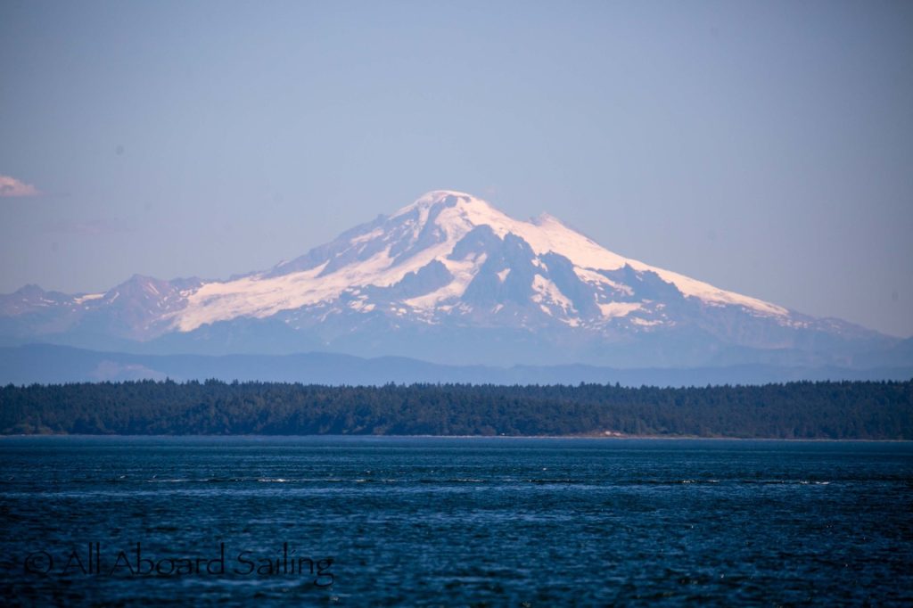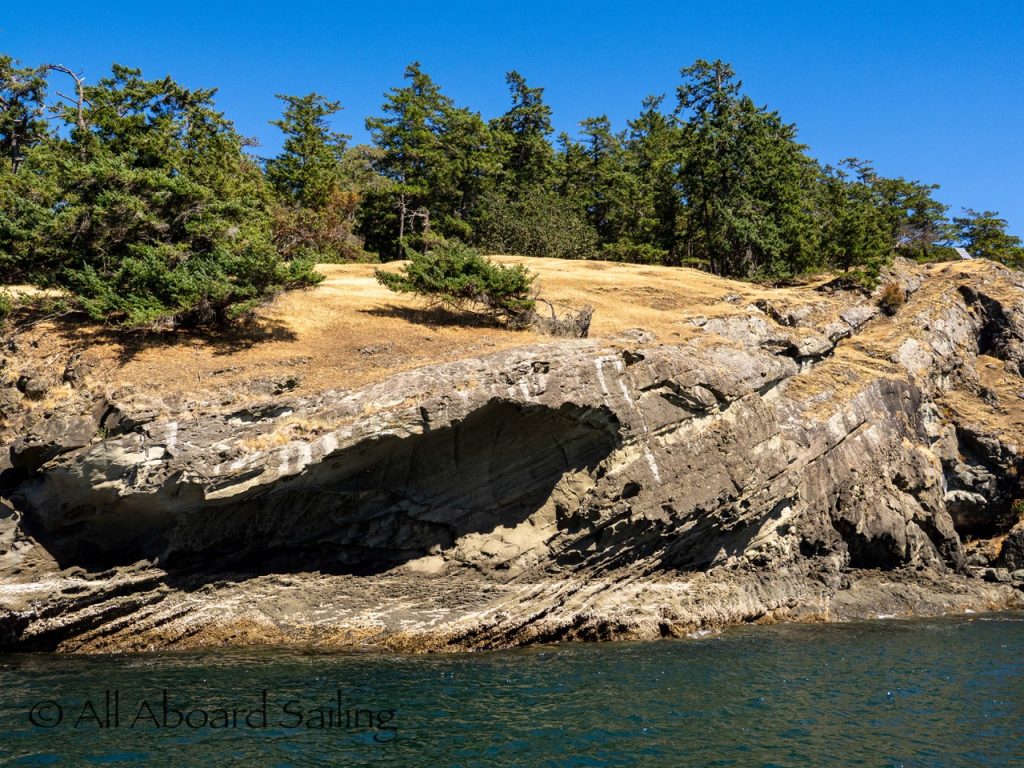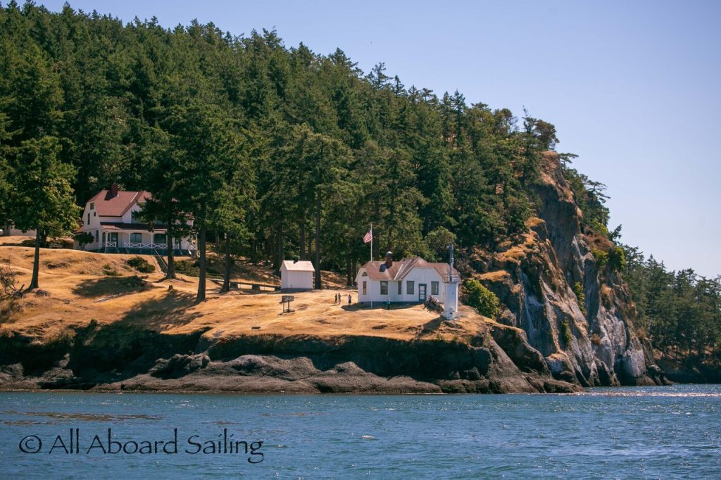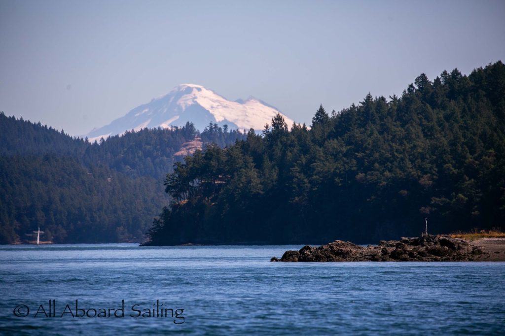 August 12, 2025 – With news of Biggs/Transient orcas T37A’s northbound in Haro Strait we headed north. We sailed through the Wasp Islands seeing harbor seals then up to Jones Island and over to the Spieden Island shoreline. We met the orcas as they crossed to Sentinel Island and rounded into New Channel. All the kids of Johns Island Camp Norwester came down to the shoreline to watch. The orcas took Johns Pass and we continued with them until we reached Turn Pt Lighthouse. Rounding Turn Pt and close into Lovers Leap taking the Stuart Island shoreline back to New Channel where we enjoyed drifting the calm fast moving waters. Over to Flattop Island where more harbor seals were hauled out warming in the sunshine before making our way back to Friday Harbor.