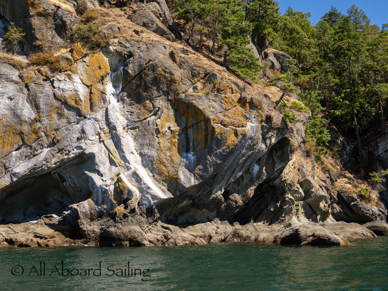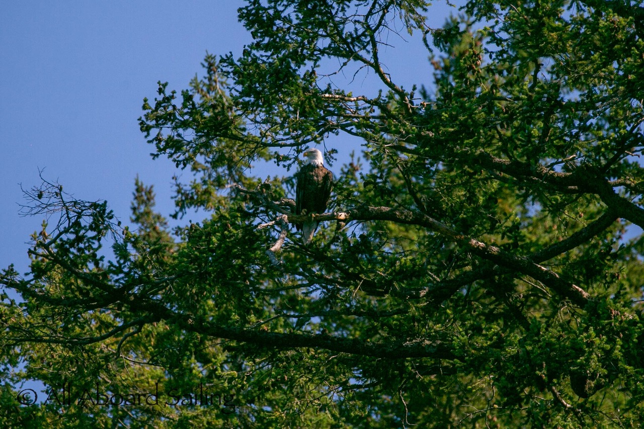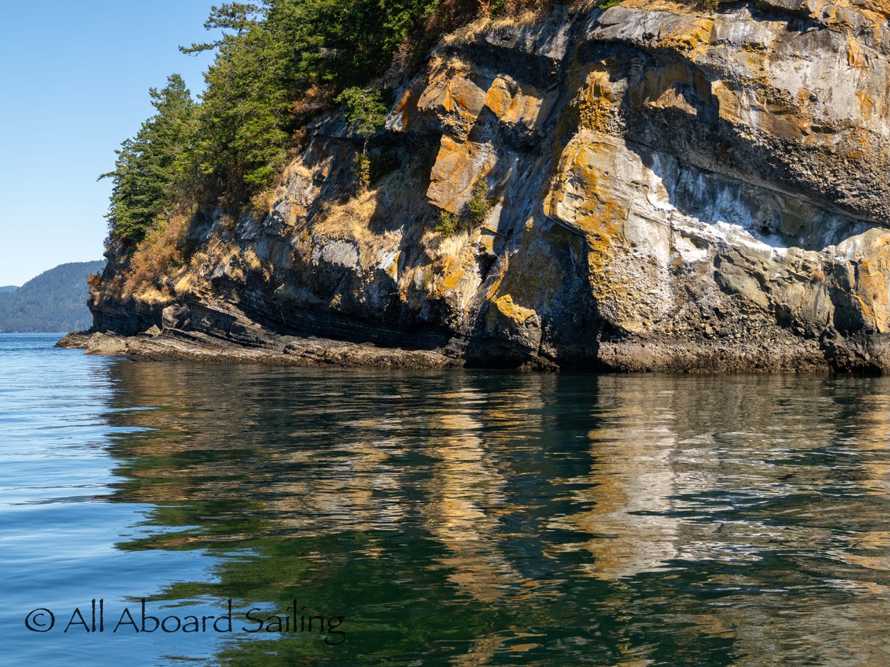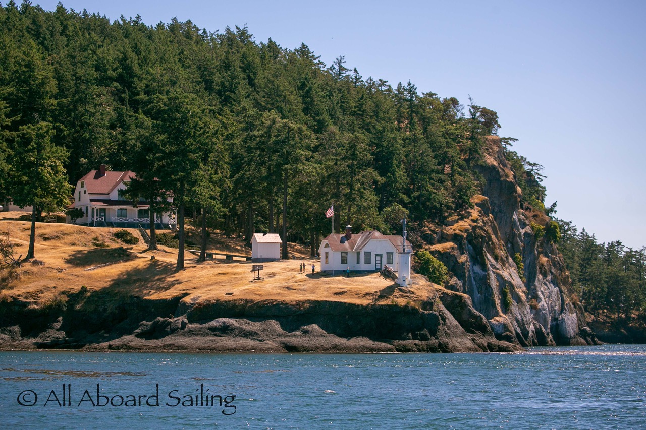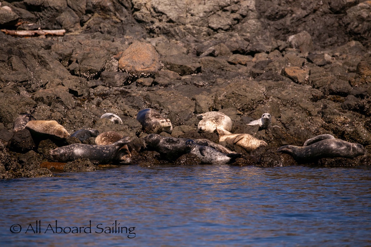 August 12, 2025 – With news of Biggs/Transient orcas T37A’s northbound in Haro Strait we headed north. We sailed through the Wasp Islands seeing harbor seals then up to Jones Island and over to the Spieden Island shoreline. We met the orcas as they crossed to Sentinel Island and rounded into New Channel. All the kids of Johns Island Camp Norwester came down to the shoreline to watch. The orcas took Johns Pass and we continued with them until we reached Turn Pt Lighthouse. Rounding Turn Pt and close into Lovers Leap taking the Stuart Island shoreline back to New Channel where we enjoyed drifting the calm fast moving waters. Over to Flattop Island where more harbor seals were hauled out warming in the sunshine before making our way back to Friday Harbor.