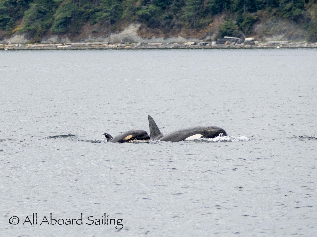 Biggs/Transient orcas T109A with newest calf T109A8 in Lopez Sound