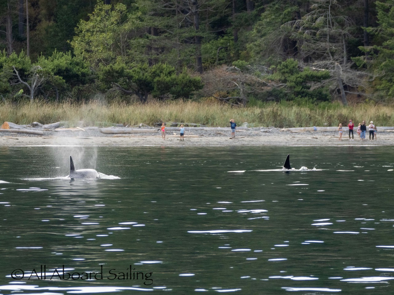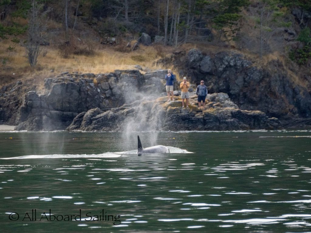 People watching Biggs/Transient orcas T124D’s on Blakely Island