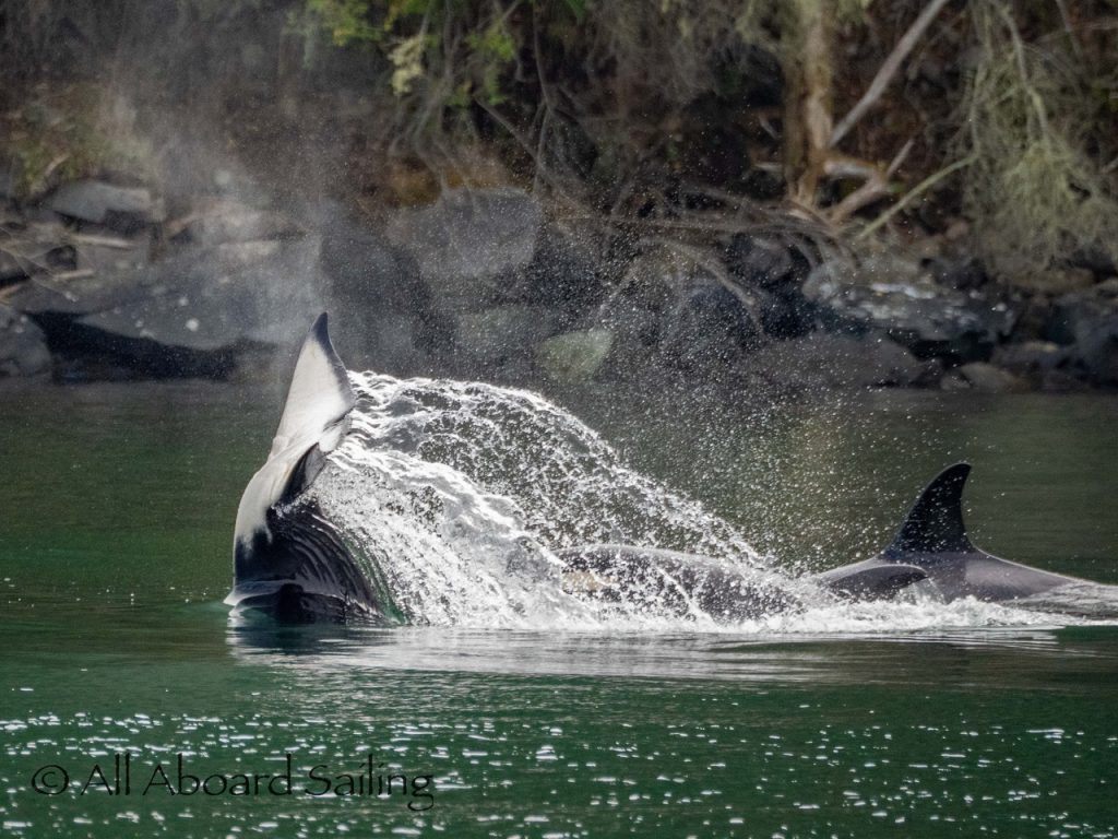 Biggs/Transient orcas T124D’s backwards swimming while eating