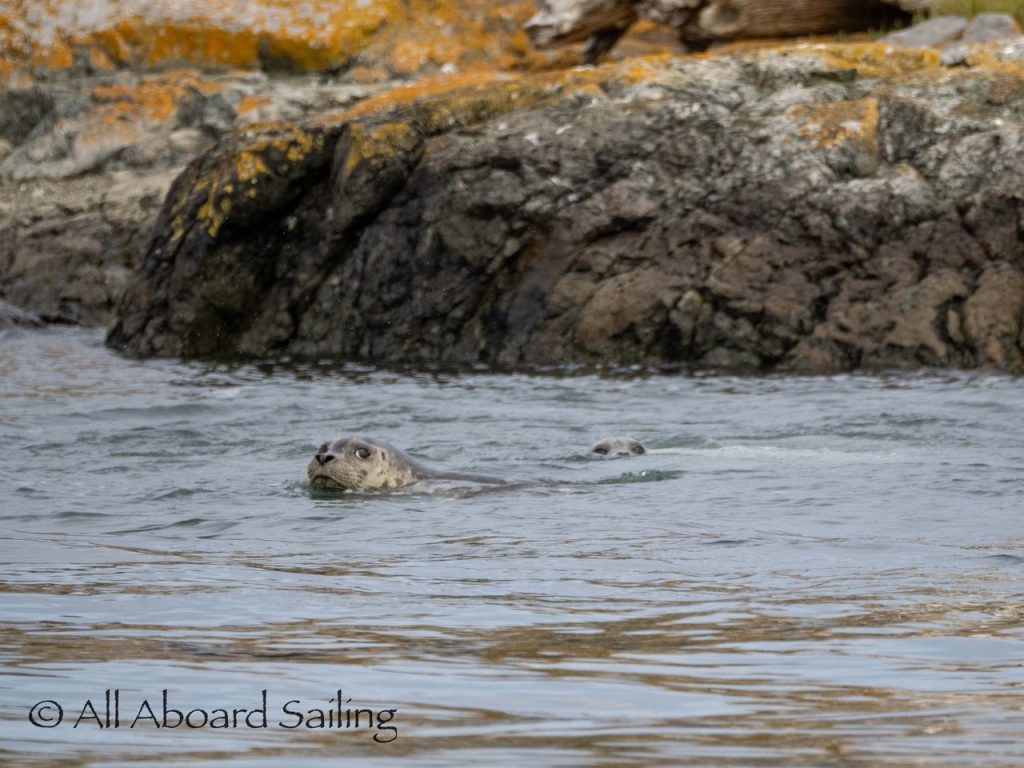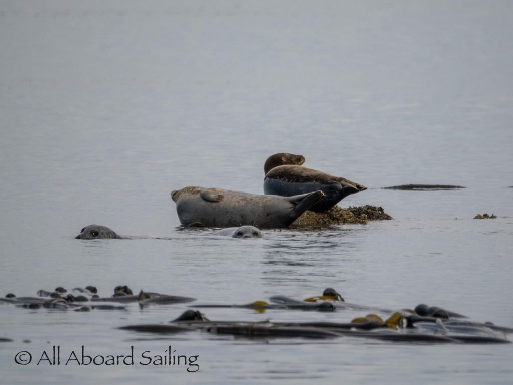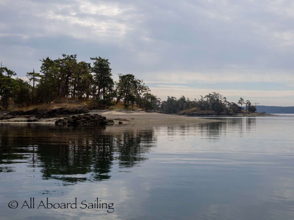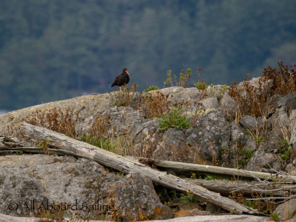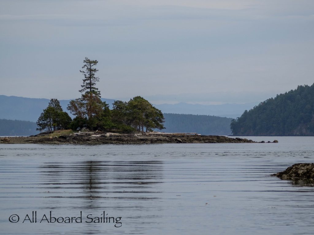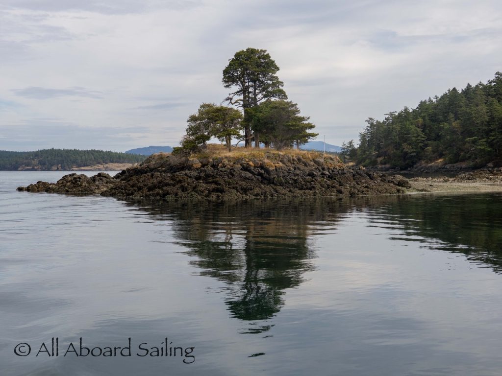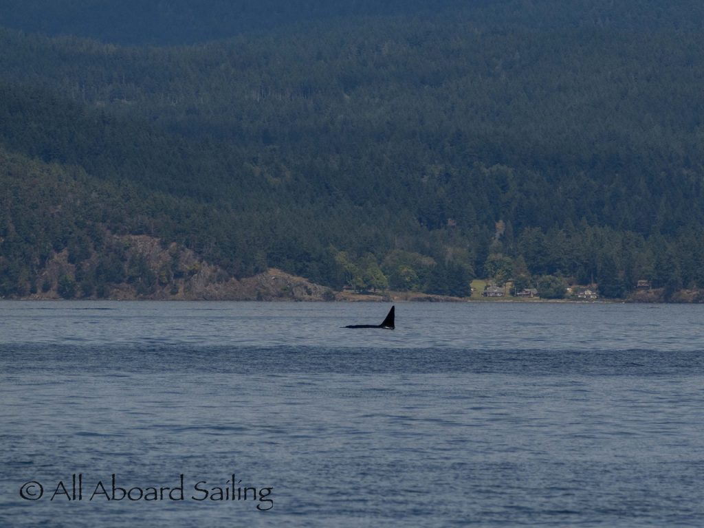 August 19, 2025 – We sailed out of Friday Harbor and Turn Island pass seeing harbor seals hauled out in the morning sun. With news of Biggs/Transient orcas, the T19’s, northbound at the bottom of Rosario Strait we took a northerly course to meet them. We came inside of Canoe Island and over to Upright Head seeing a bald eagle in a Madrona tree. Over to Peavine Pass where we heard the orcas had taken Thatcher pass so we circled Spindle Rock with its harbor seals and a great blue heron and came back inter-island to Flower Island. We met the orcas after they had just come through the narrow pass between Spencer Spit and Frost Island. Sailed parallel as they traveled north into Cayou Channel leaving them at West Sound. Returned by way of the Wasp Islands.