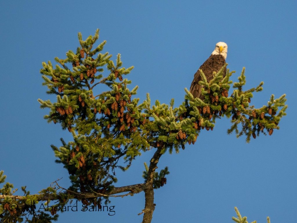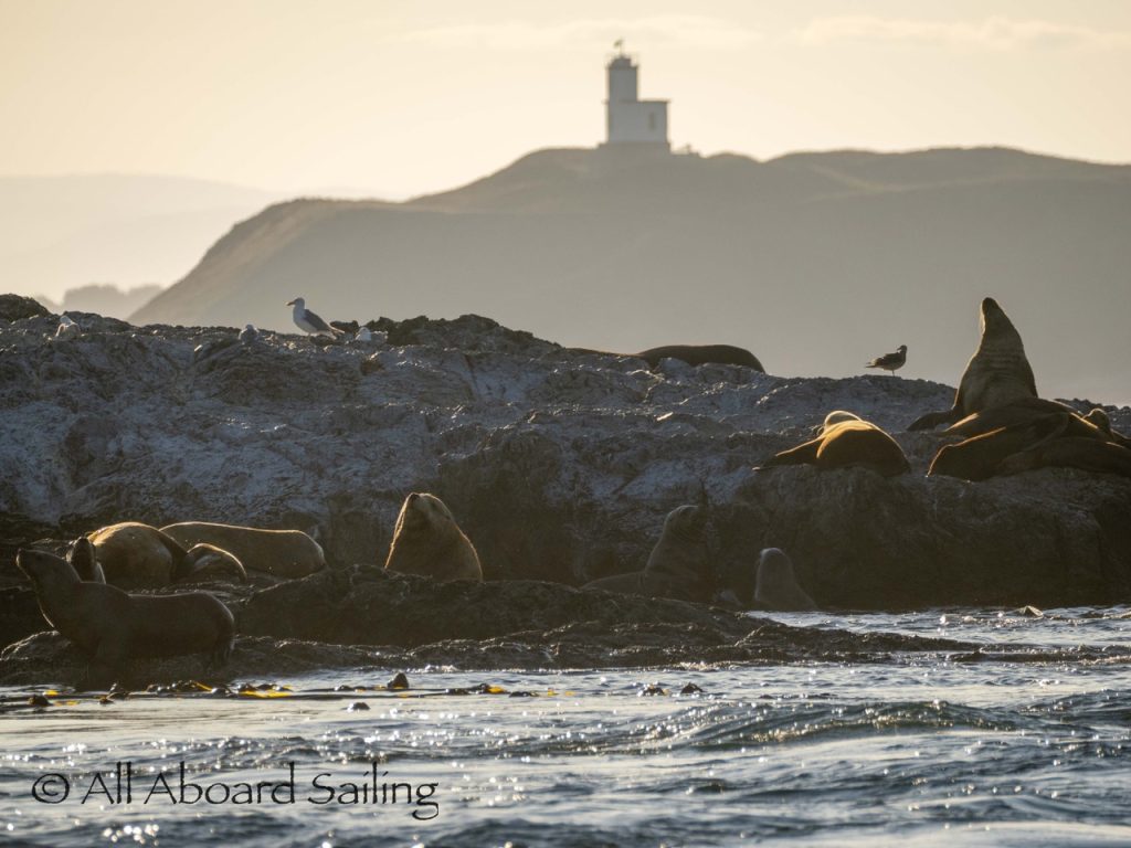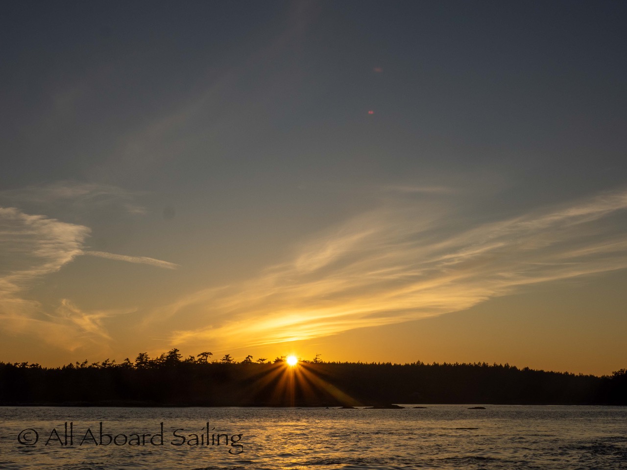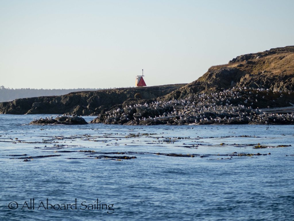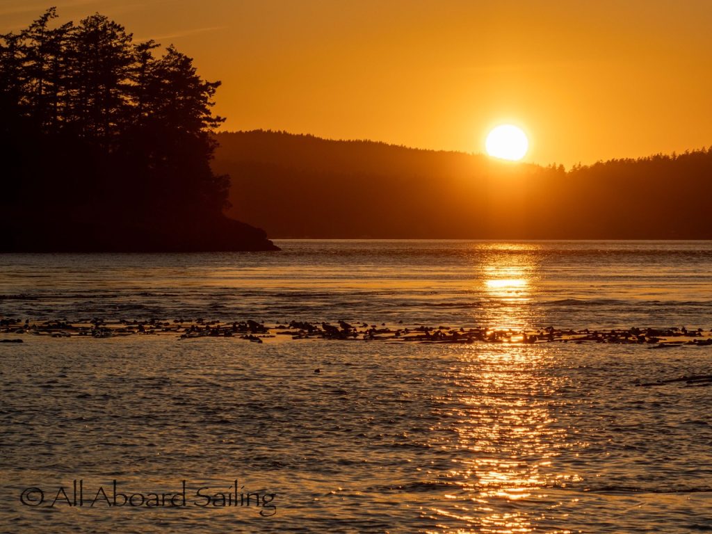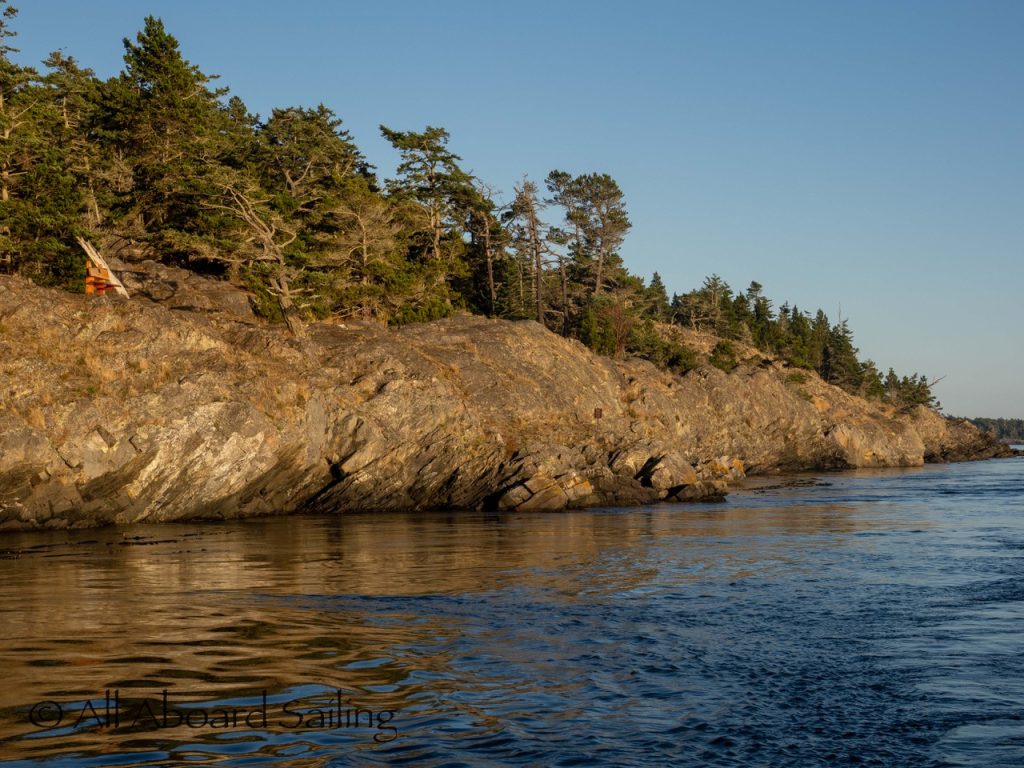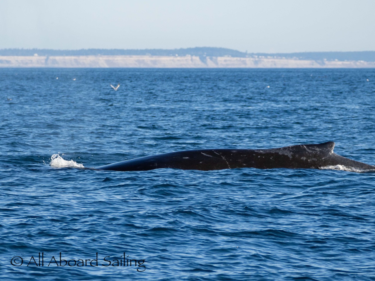 August 20, 2025 – Half day sail south to MacArthur Bank.We cast off from Friday Harbor and came inside of Turn Island spotting harbor seals hauled out and a bald eagle. Continued down San Juan Channel to Cattle Pass. On MacArthur Bank we had an encounter with humpback whale BCZ0345 “Victory – a humpback who has been hanging out in this area for at least a week now. Returned by way of Iceberg Point, Hall Island, Long Island and over to Whale Rocks to see the Steller sea lions and the roosting cormorants. Sailed near Deadman Island passing more harbor seals and up the channel to Turn Rock where we spotted a cute little sea otter. He/she has taken up residency in the Salish Sea and is often found by Bird Rocks on the east side of Lopez Island. Every now and again it hangs out by Turn Rock to our delight. We sailed back to Friday Harbor under the setting sun.
