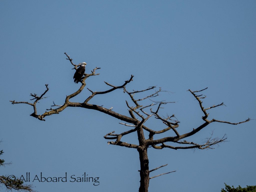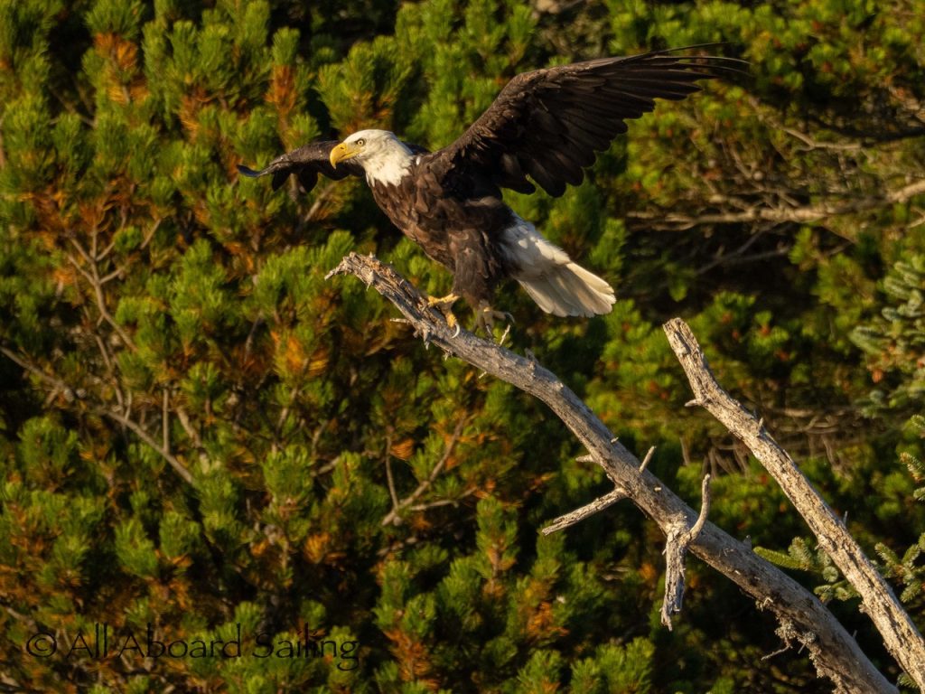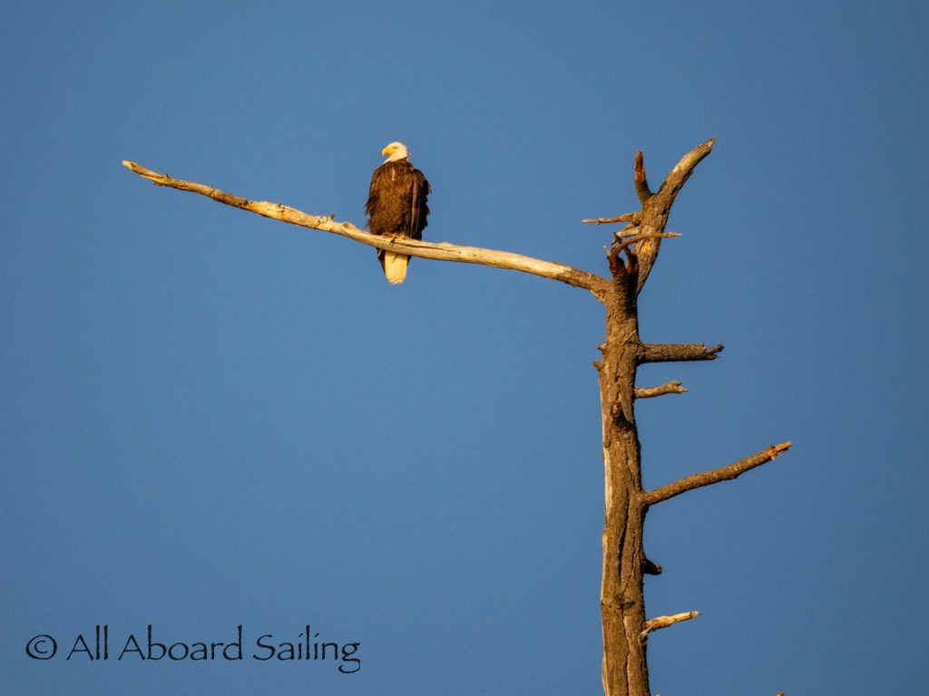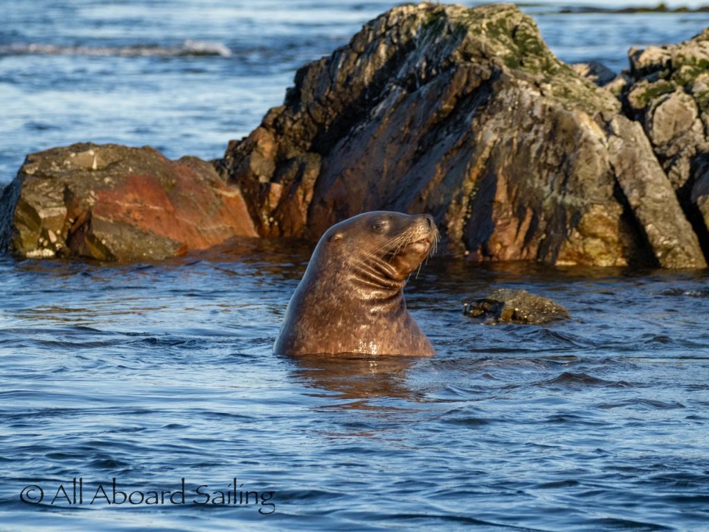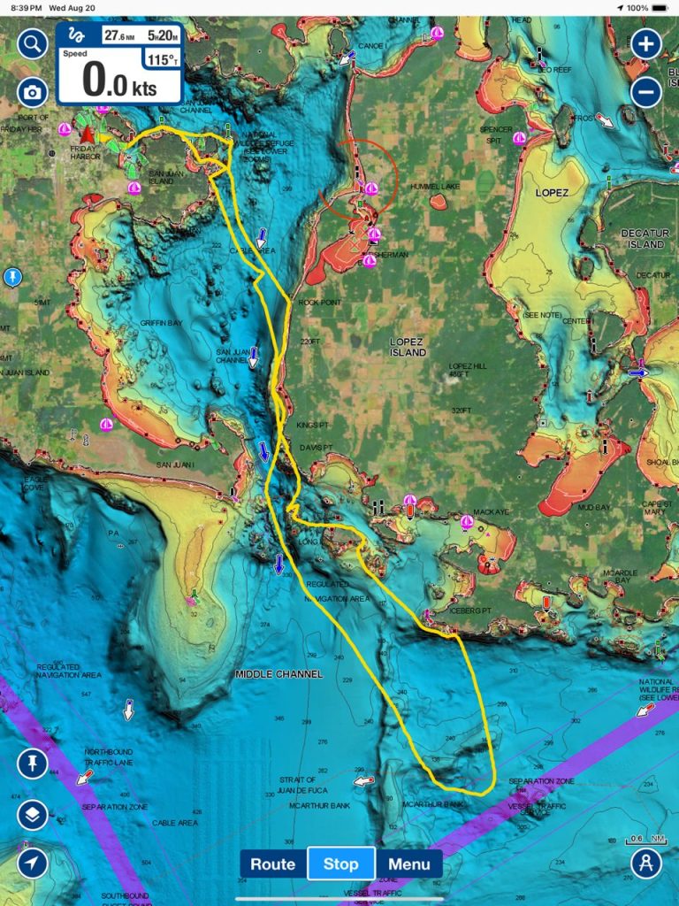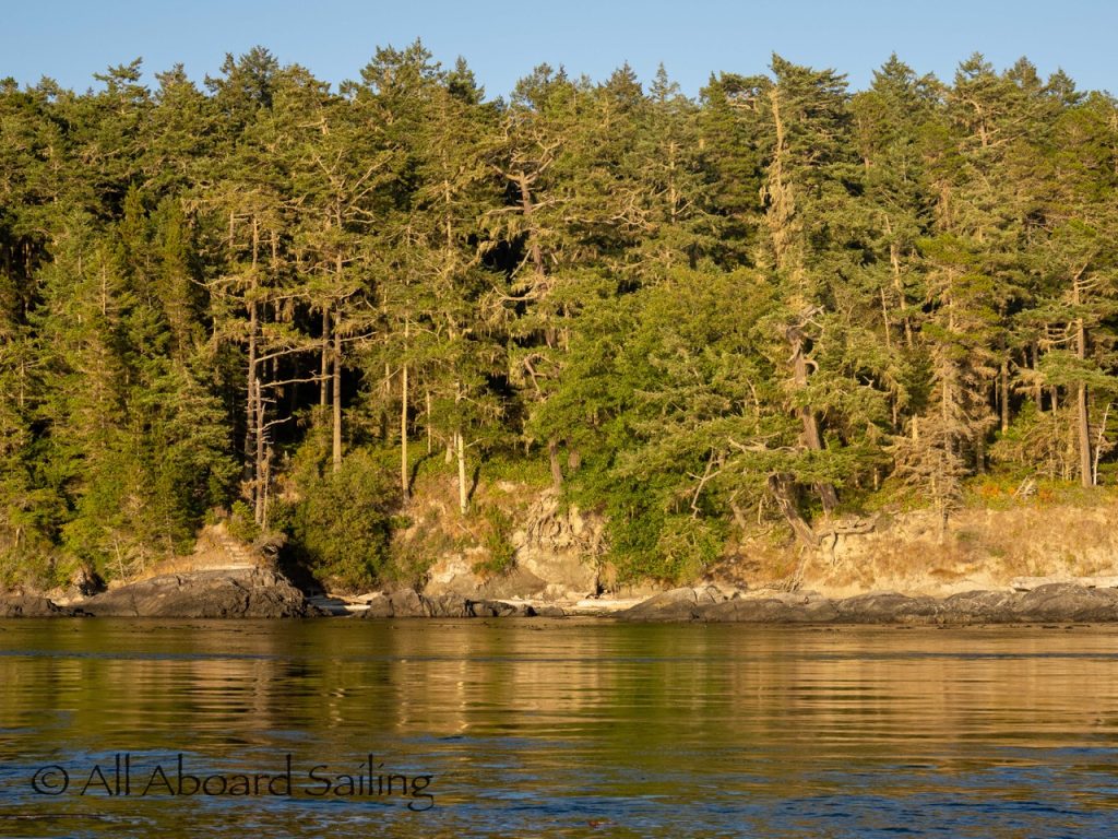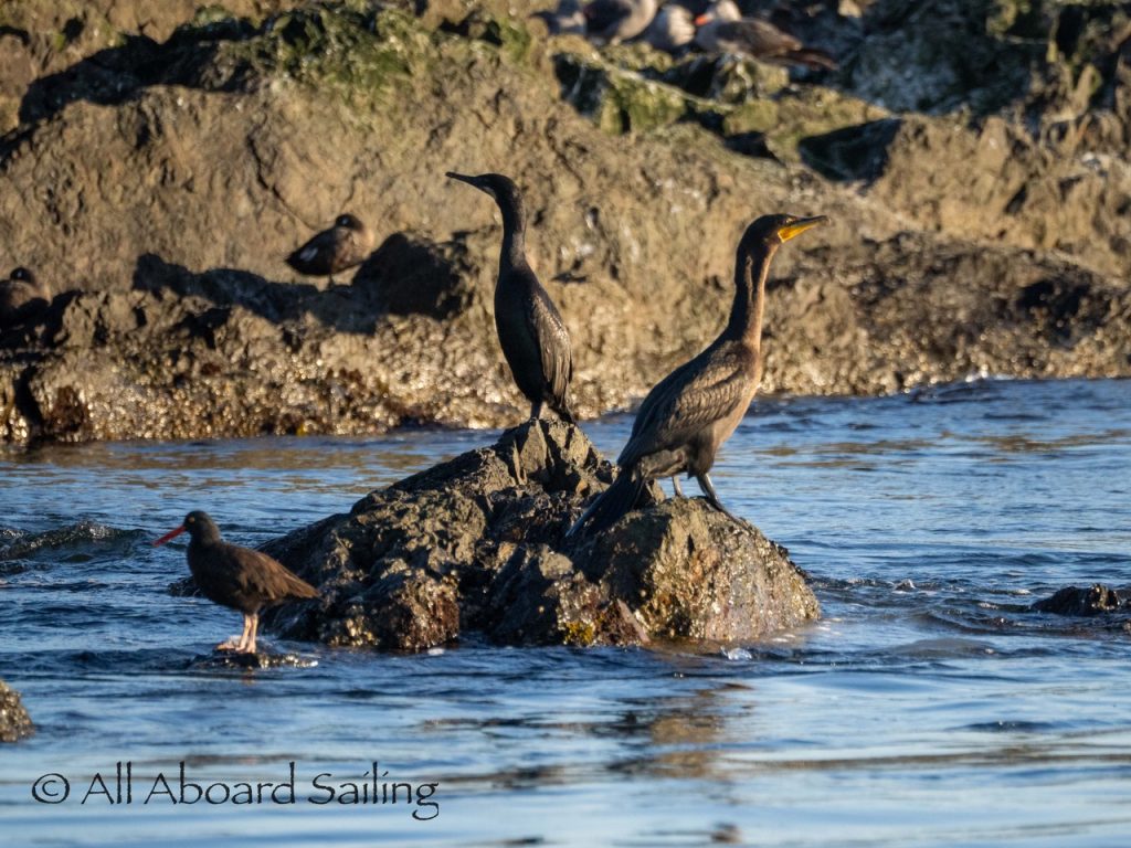 August 20, 2025 – Half day sail south to MacArthur Bank.We cast off from Friday Harbor and came inside of Turn Island spotting harbor seals hauled out and a bald eagle. Continued down San Juan Channel to Cattle Pass. On MacArthur Bank we had an encounter with humpback whale BCZ0345 “Victory – a humpback who has been hanging out in this area for at least a week now. Returned by way of Iceberg Point, Hall Island, Long Island and over to Whale Rocks to see the Steller sea lions and the roosting cormorants. Sailed near Deadman Island passing more harbor seals and up the channel to Turn Rock where we spotted a cute little sea otter. He/she has taken up residency in the Salish Sea and is often found by Bird Rocks on the east side of Lopez Island. Every now and again it hangs out by Turn Rock to our delight. We sailed back to Friday Harbor under the setting sun.