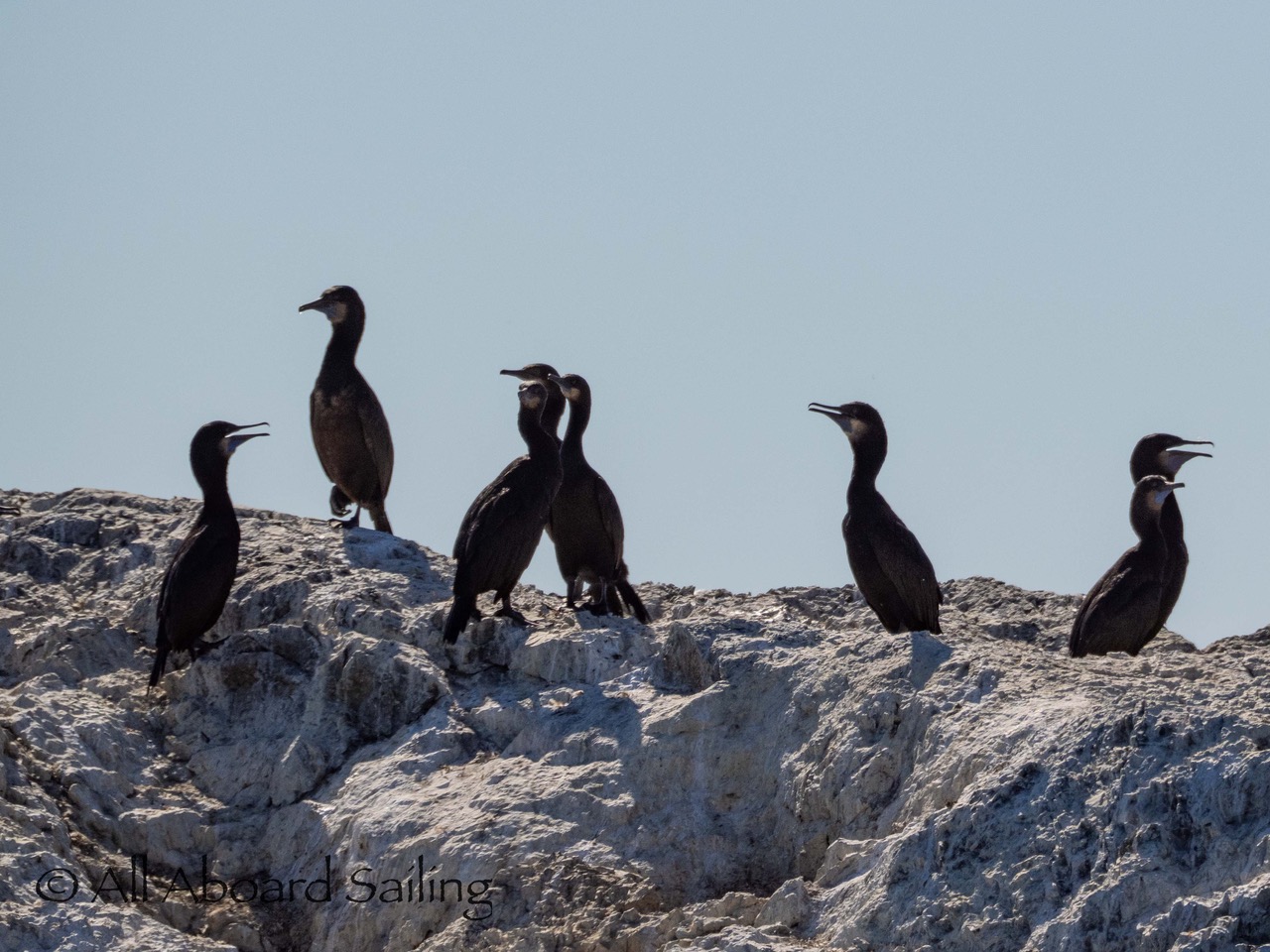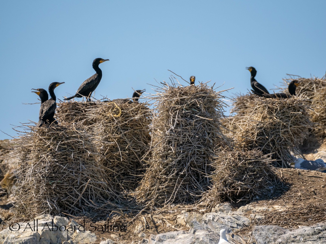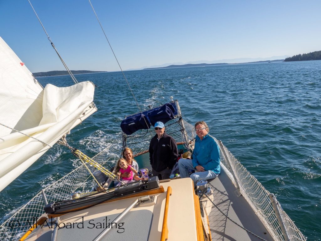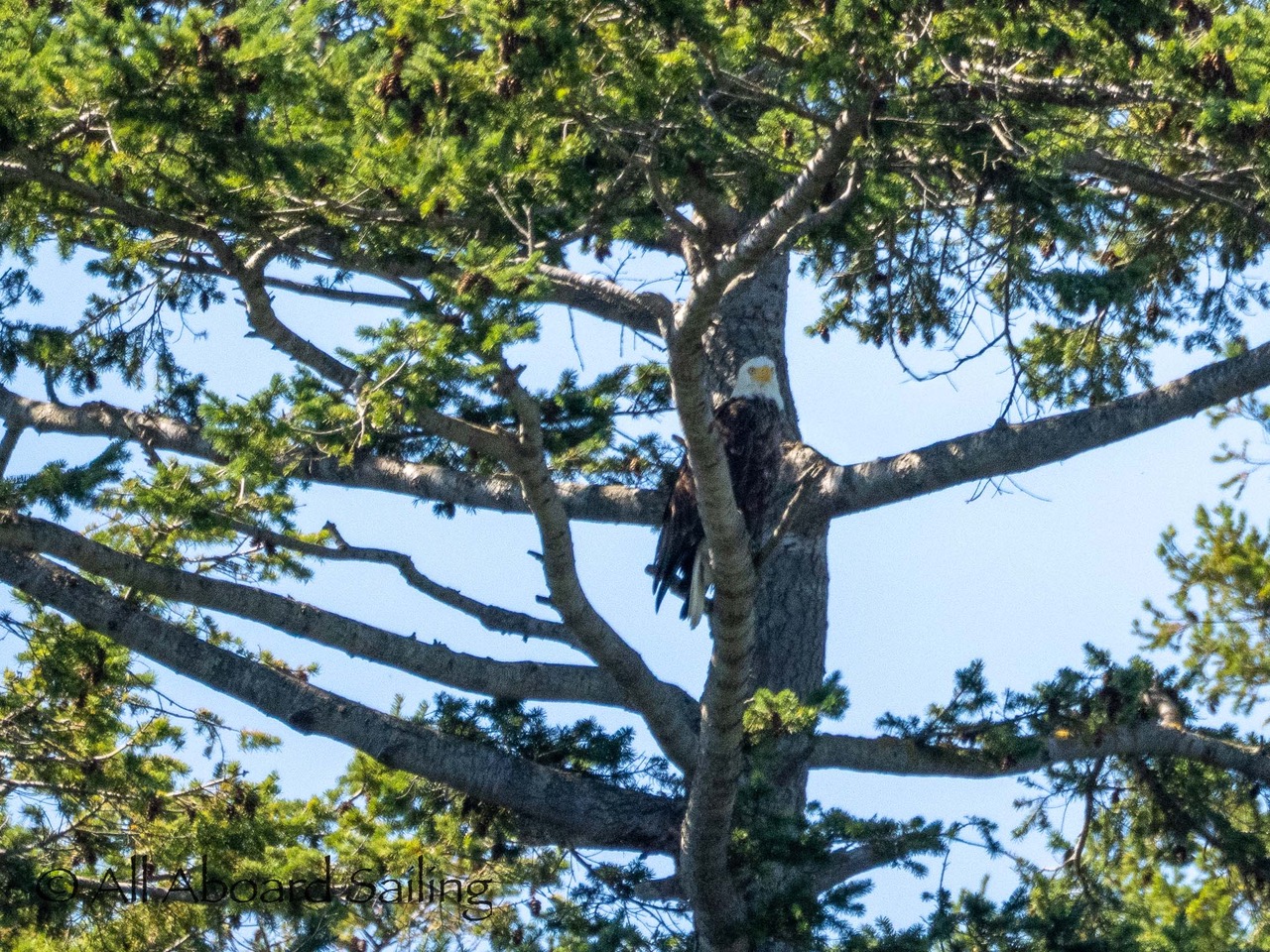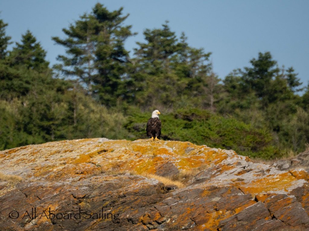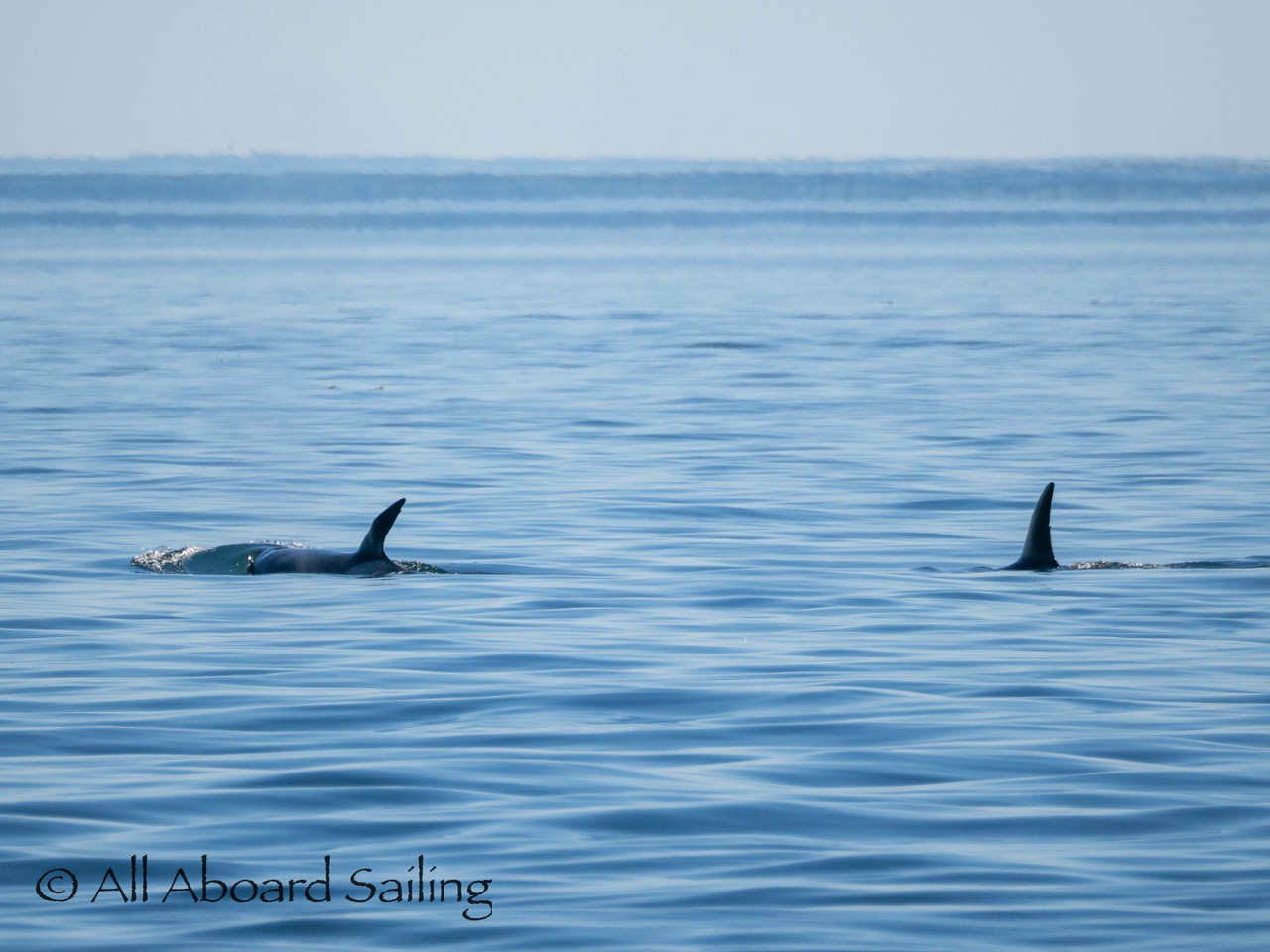 August 22, 2025 – Sailed out from Friday Harbor across the channel to Shaw Island debating on which direction to travel today. We tacked to come inside of Turn Island but running out of wind and the flood tide beginning we were pushed back to circle the island. We checked out Turn Rock for the sea otter which was not there today. Pushed south to Pear Pt evading the flood current to Harbor Rock, Goose Island and Cattle Pass. We came out to Salmon Bank and met Biggs/Transient orcas, the T37A’s. Some lovely views as they meandered their way changing directions before choosing south. We tacked and sailed back to meet humpback whale BCZ0345 “Victory”. She has been in the area for some time over a week. As we were nearing Iceberg Point we watched as she did a cartwheel followed by multiple tail lobs and inverted tail lobs showing off the white underside of her tail flukes. Returning south of Long Island where a bald eagle was watching everything to Whale Rocks where the Steller sea lions seemed to be increasing in numbers of large males. Passing Deadman Island a large number of black oystercatchers gathered and harbor seals rested as we caught the flood tide north. At Turn Island we resumed a fast close-hauled sail tacking at Shaw Island to return to Friday Harbor. Beautiful summer day sailing.