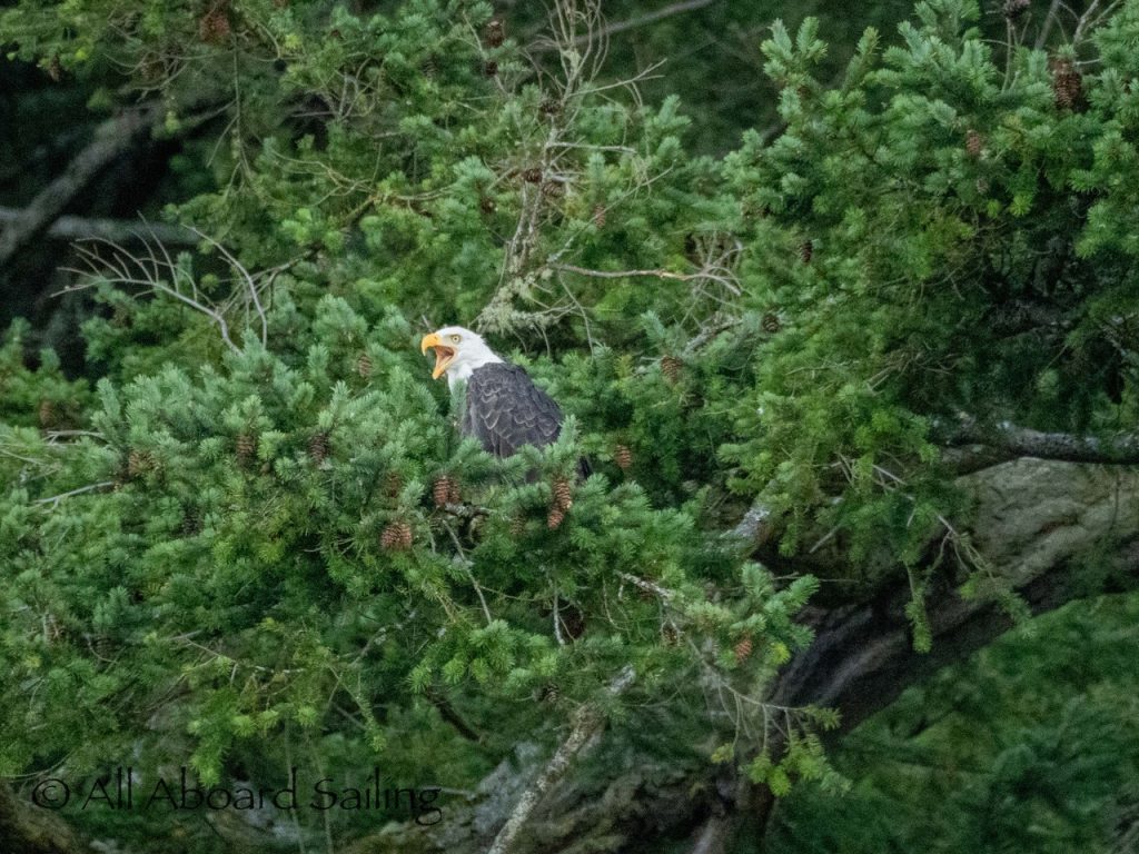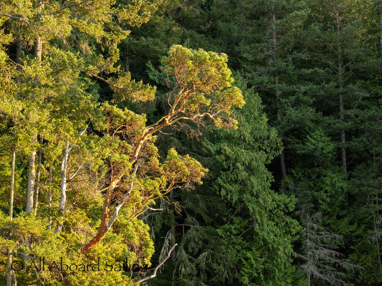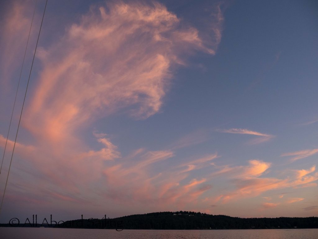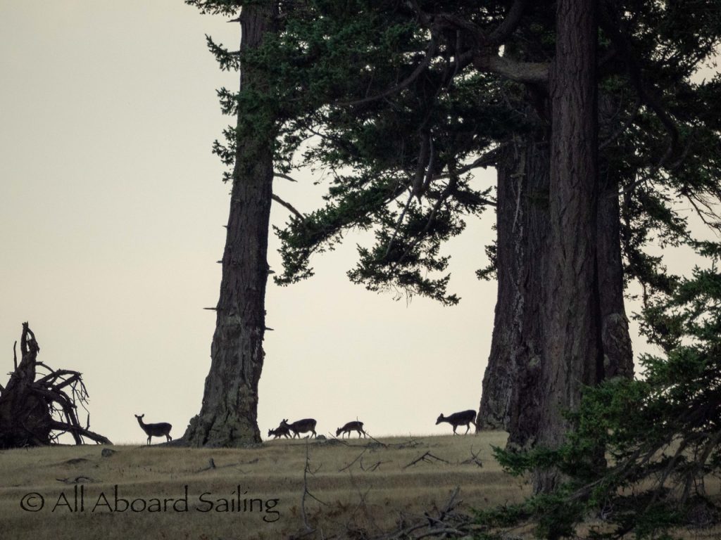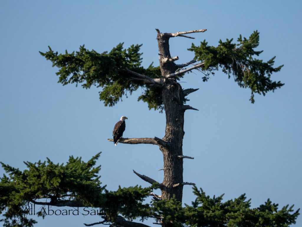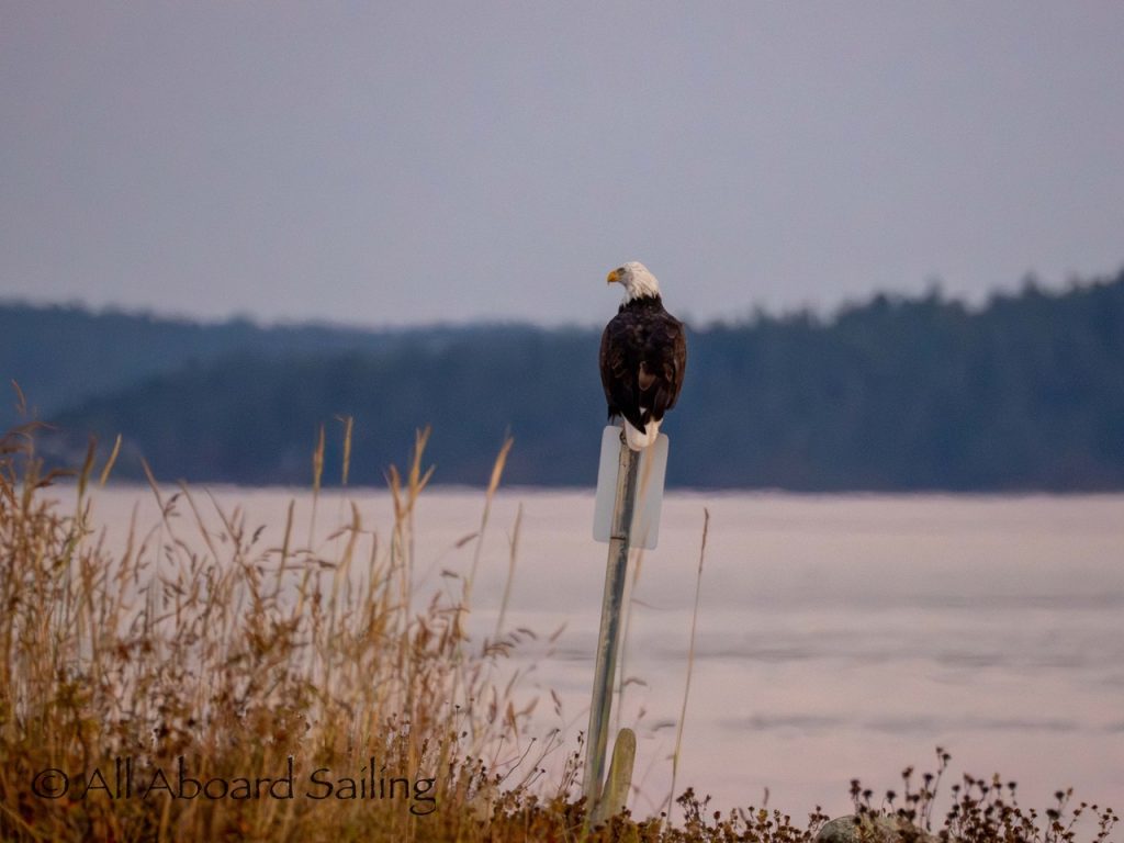 August 23, 2025 – With a report of Biggs/Transient orcas known as the T60’s northbound in Haro Strait near the westside of San Juan Island we sailed north. Keeping close to the San Juan Island shoreline through Spieden Channel to evade the flood current and cut through the pass by Battleship Island. We came down the Henry Island shoreline as the orcas came towards us after hunting in Open Bay, however they cut across the Strait towards Sidney Island and we met them after a fast sail. We sailed alongside listening to their blows in mirror calm water. Leaving them at Sidney Island to sail back to the north side of Spieden Island and take New Channel to Jones Island and the Wasp Islands. Gorgeous sunset as we headed back to Friday Harbor.