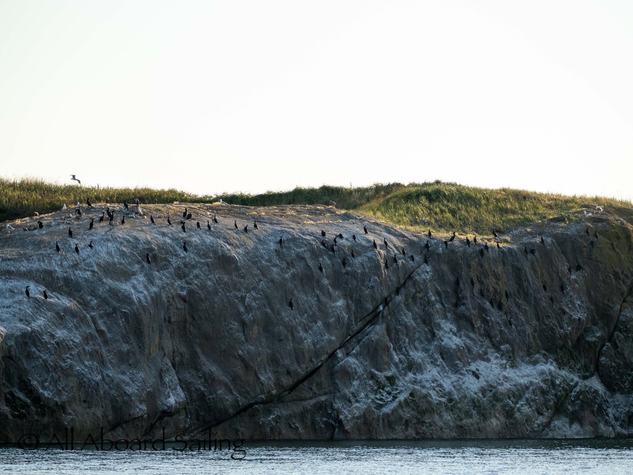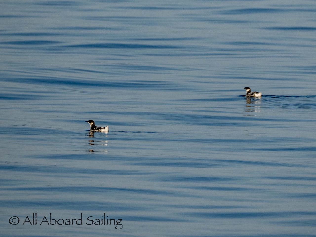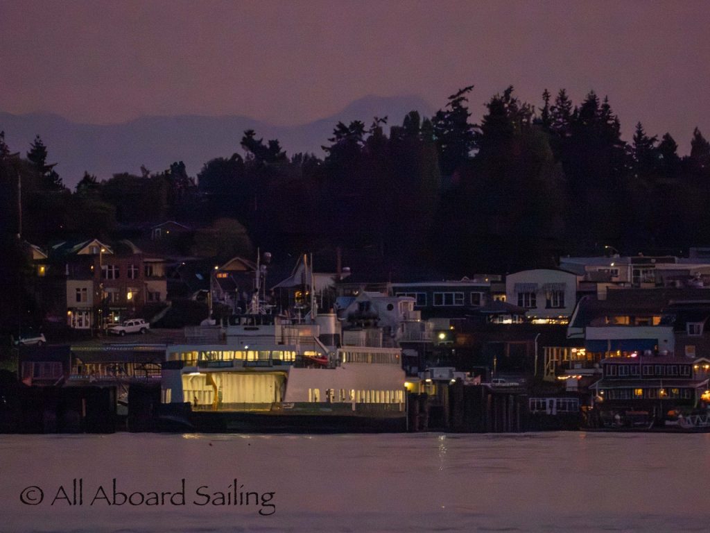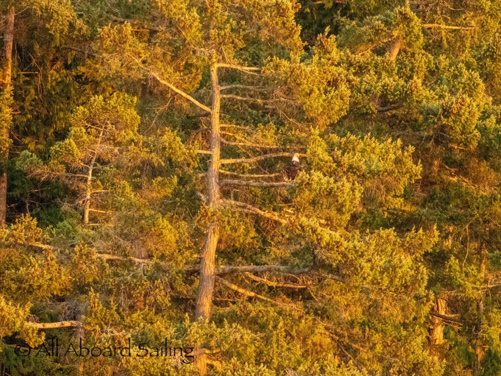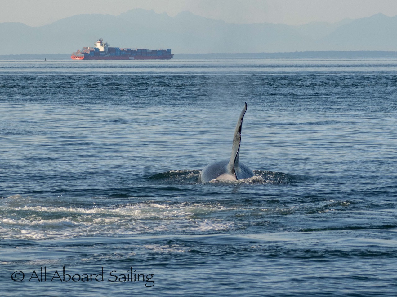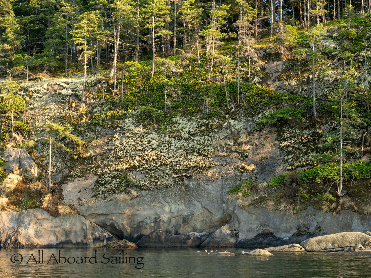 August 24, 2025 – With news of Biggs/Transient orcas T63 “Chainsaw” and mom T65 coming down President Channel we sailed north. We came through the Wasp Islands and Spring Pass and close to shore of Orcas Island up President Channel. The orcas had been hunting in Lovers Cove but when we were a mile out they took off to the north at speed. We met them as they approached Pt Hammond on Waldron Island and after two sets of surfacings they began hunting a harbor seal. Long dives with Chainsaw down for an extended time before lunges at the surface. Backwards swimming indicated success. We continued to Bare Island and Skipjack Island as the orcas continued west. The harbor seals on Skipjack were clearly aware of their presence. We returned by way of White Rock and the west side of Jones Island through sunset.