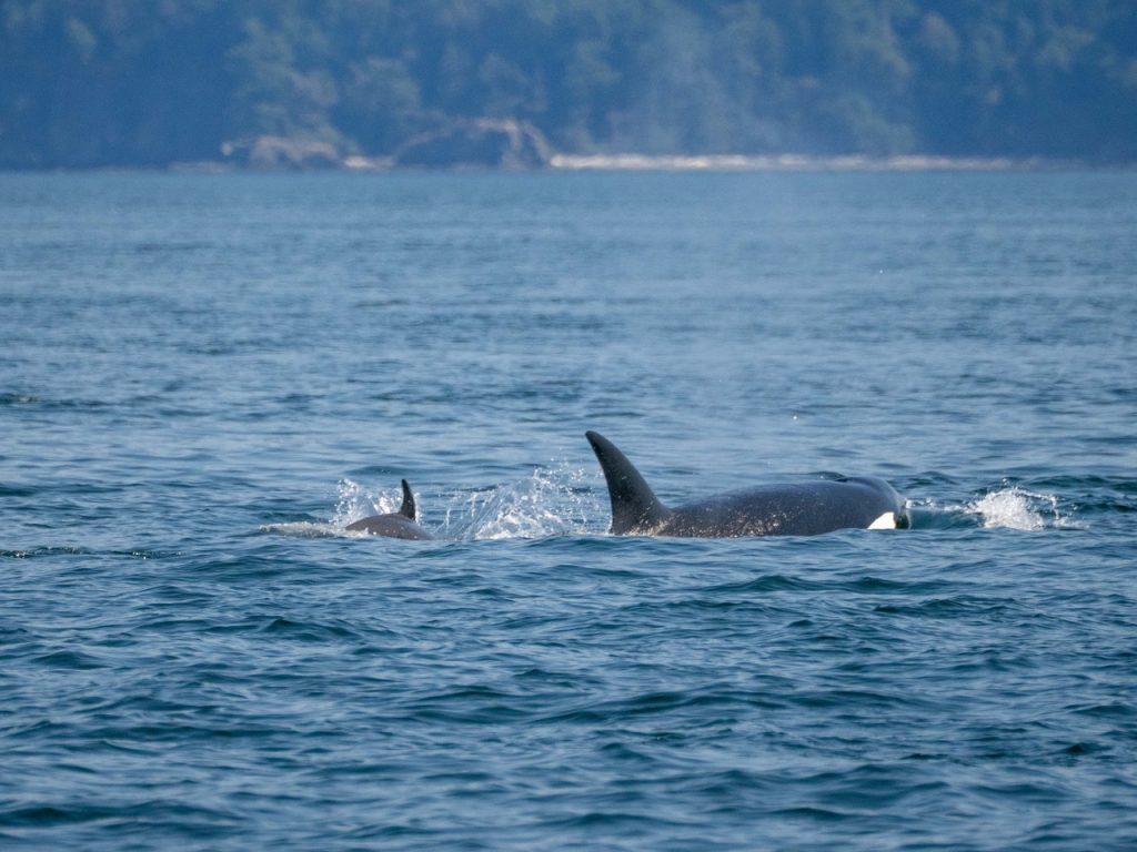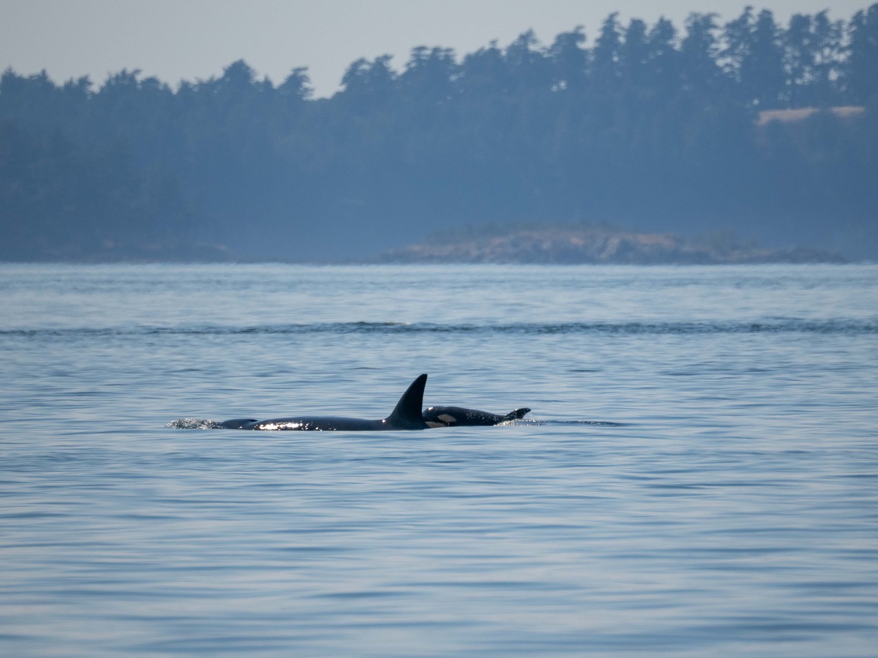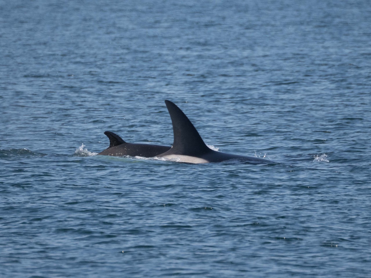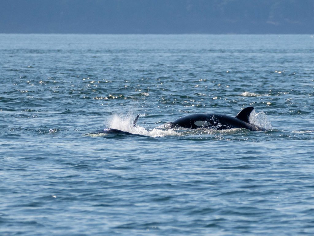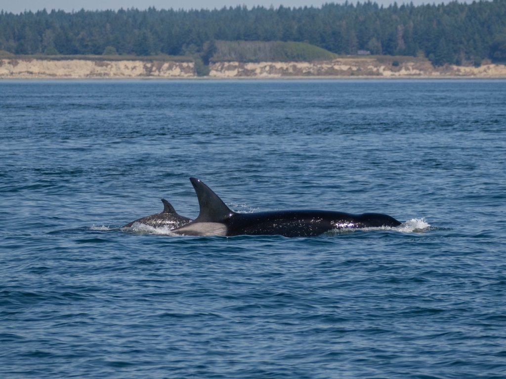 Biggs/Transient orca T75B with calf T75B5 – less than 2 months old