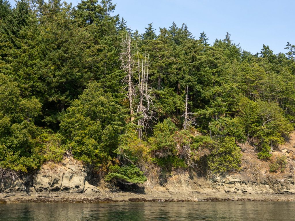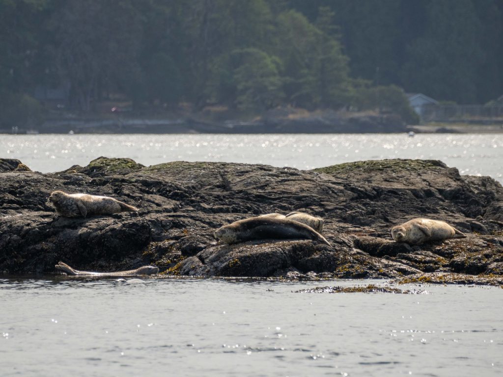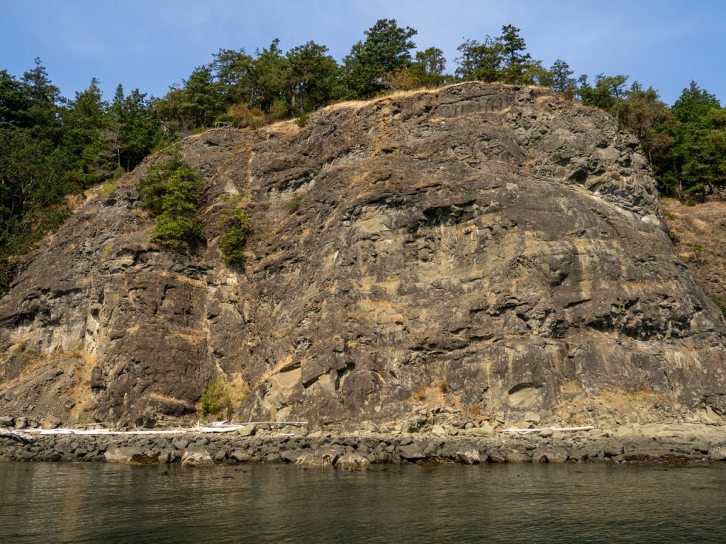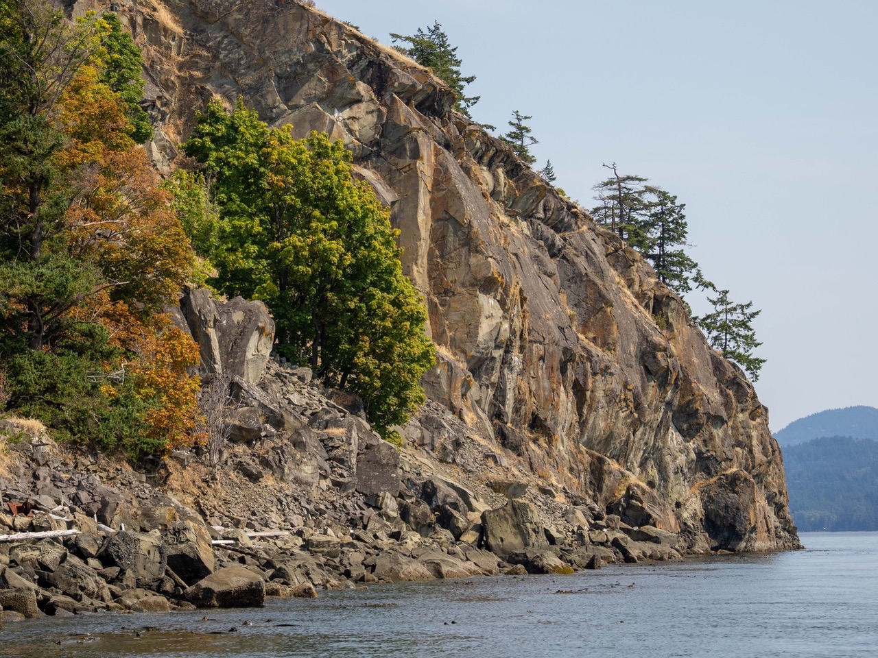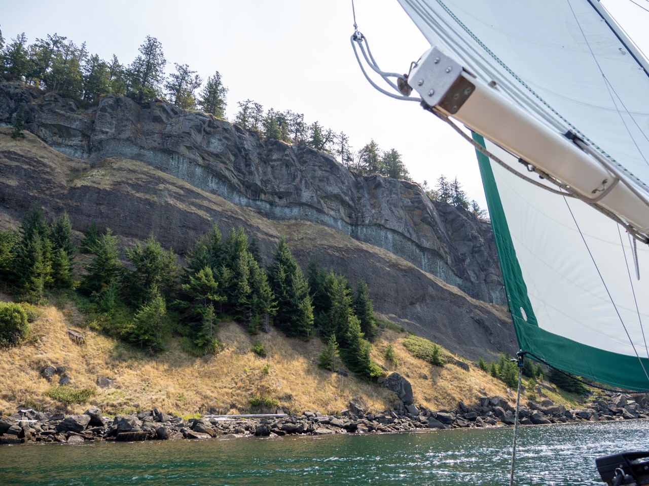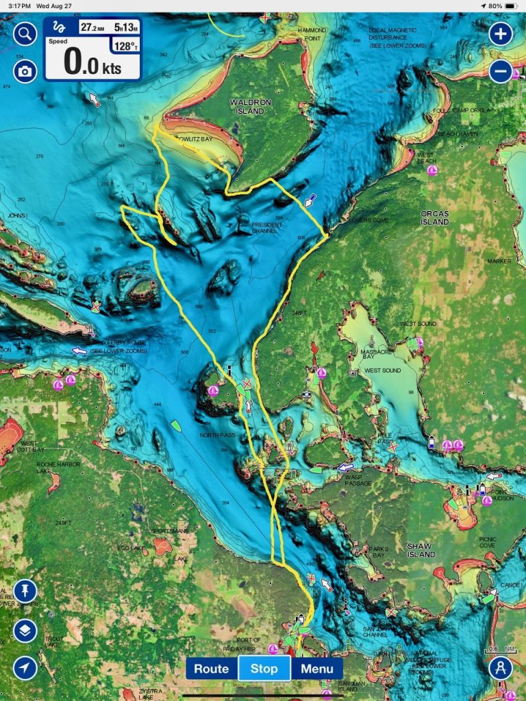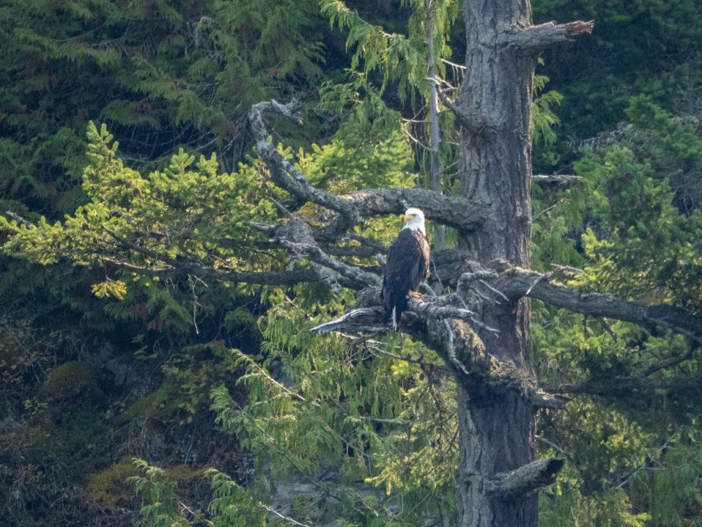 August 27, 2025 – We heard reports of Biggs/Transient orcas T49A’s hunting in New Channel so we sailed north. We cut through the Wasp Islands and Spring Pass seeing harbor seals and bald eagles and continued towards White Rock. The orcas had been sharing a meal west of White Rock and we met them there. As we arrived the orcas traveled at speed to White Rock giving a close pass to the island. They may have grabbed a harbor seal as we witnessed a couple spy hops and more milling before they passed White Rock again and headed north to Sandy Point, Waldron Island. We left them at Sandy Pt and sailed to Pt Disney. Continuing the Waldron coastline we saw a hawk before crossing to Turtleback Mountain on Orcas Island. Hugged the Orcas Island forested coastline and returned via the Wasp Islands to Friday Harbor.