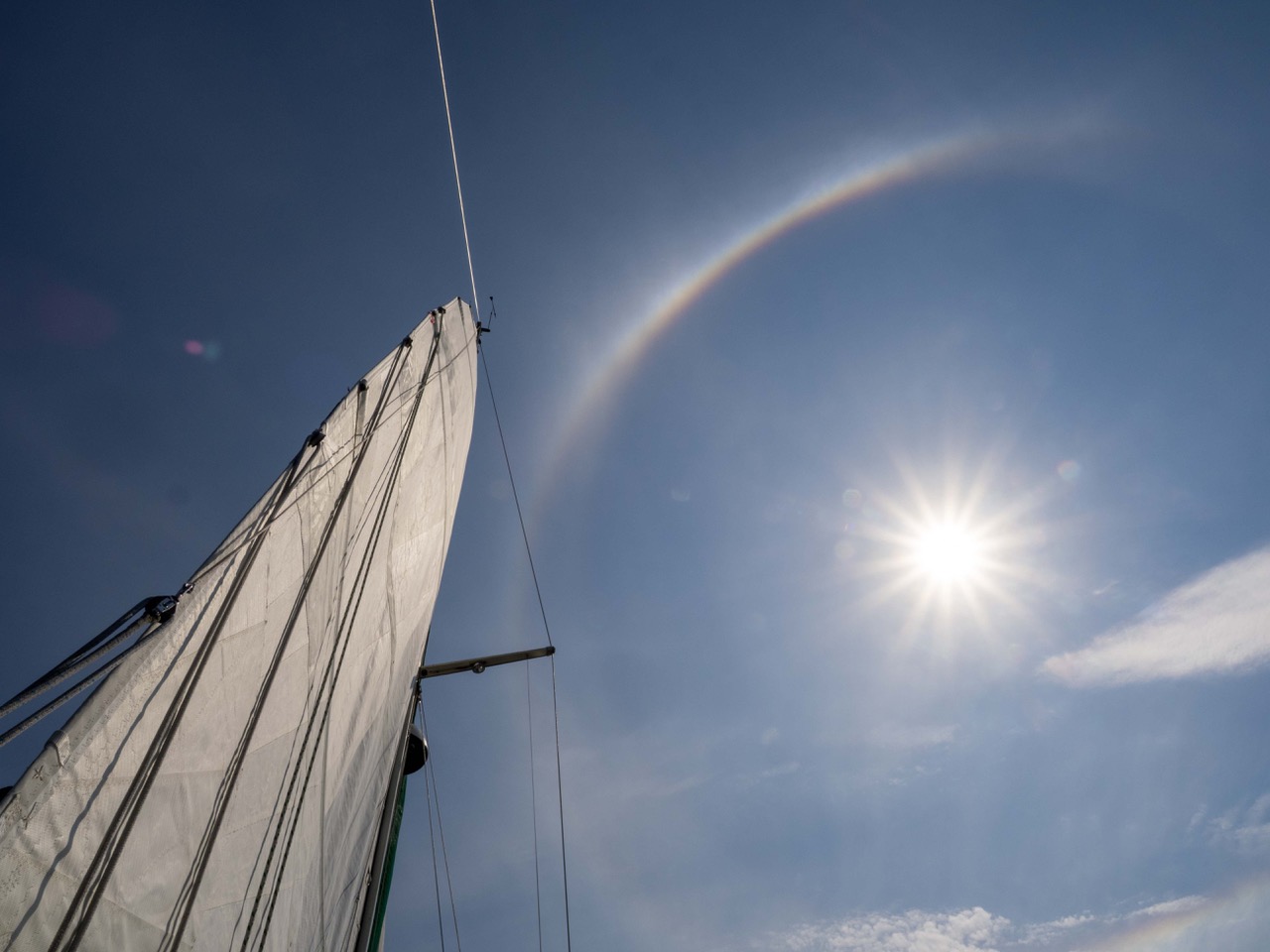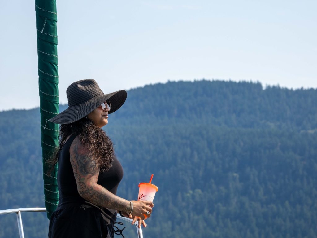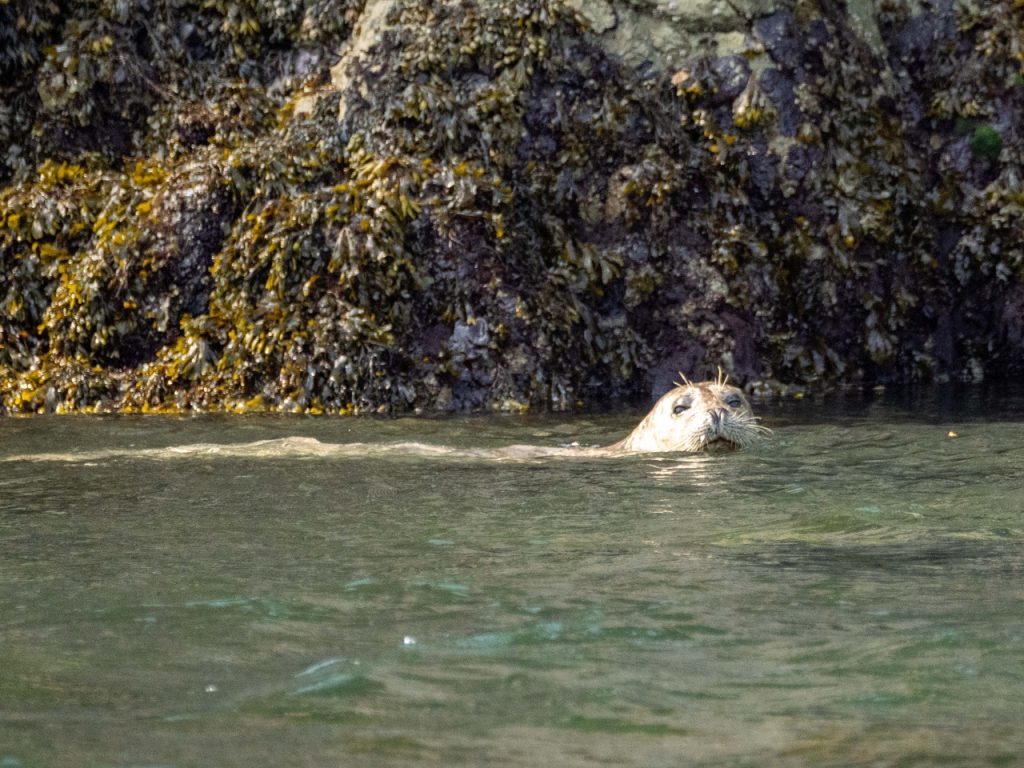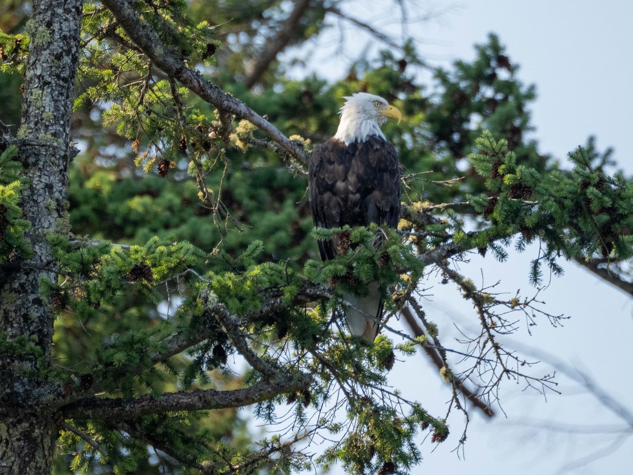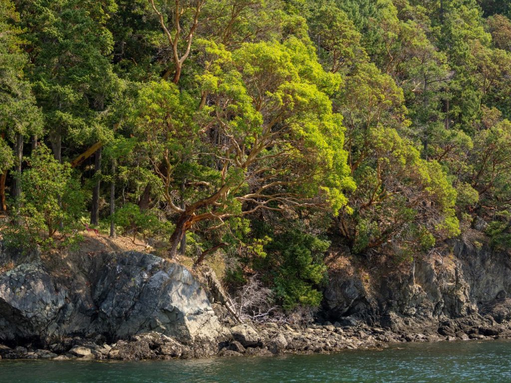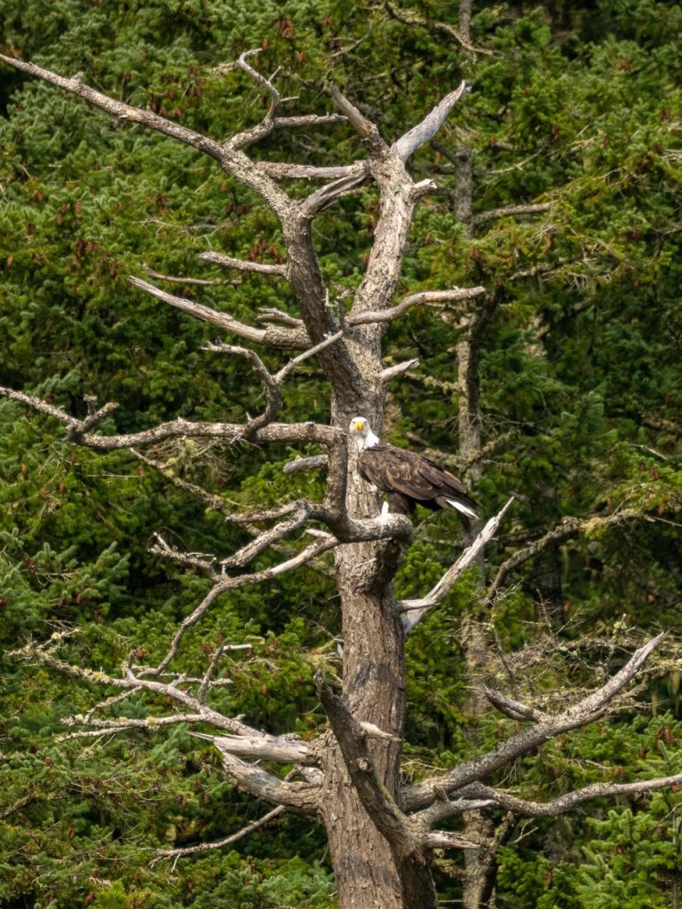 August 27, 2025 – We heard reports of Biggs/Transient orcas T49A’s hunting in New Channel so we sailed north. We cut through the Wasp Islands and Spring Pass seeing harbor seals and bald eagles and continued towards White Rock. The orcas had been sharing a meal west of White Rock and we met them there. As we arrived the orcas traveled at speed to White Rock giving a close pass to the island. They may have grabbed a harbor seal as we witnessed a couple spy hops and more milling before they passed White Rock again and headed north to Sandy Point, Waldron Island. We left them at Sandy Pt and sailed to Pt Disney. Continuing the Waldron coastline we saw a hawk before crossing to Turtleback Mountain on Orcas Island. Hugged the Orcas Island forested coastline and returned via the Wasp Islands to Friday Harbor.