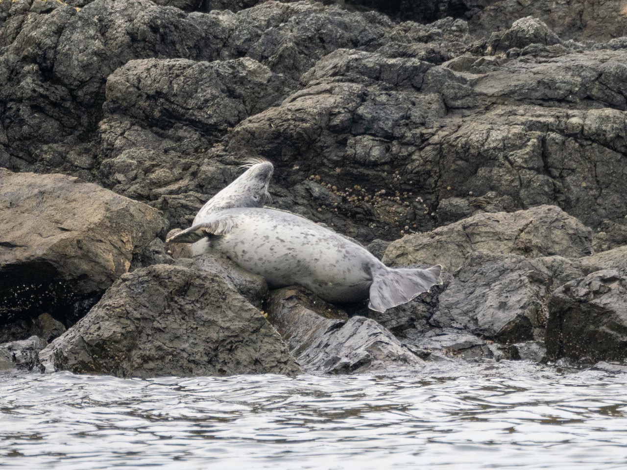 Harbor seal stretching, Low Island