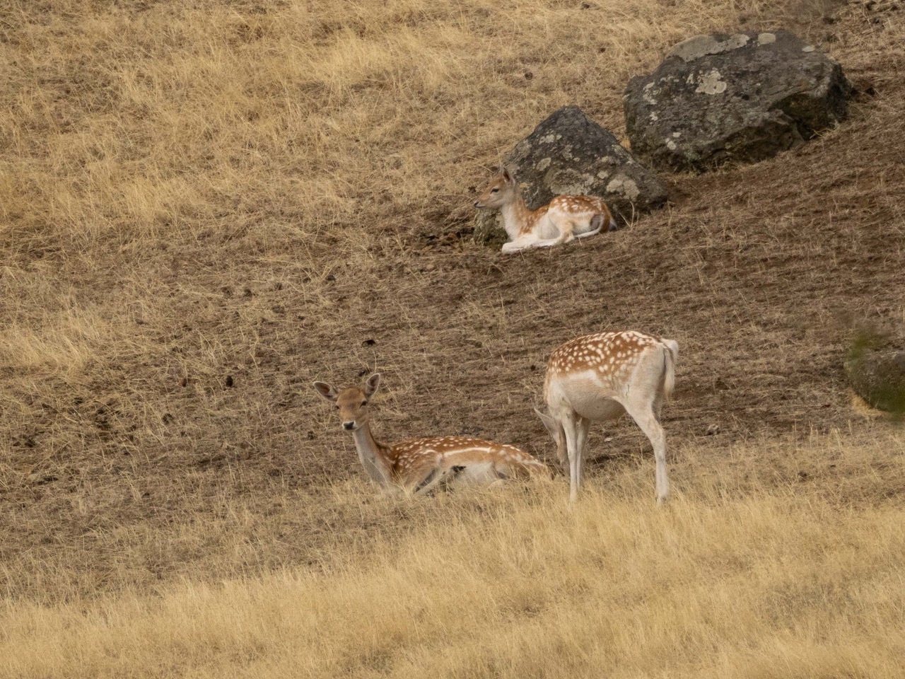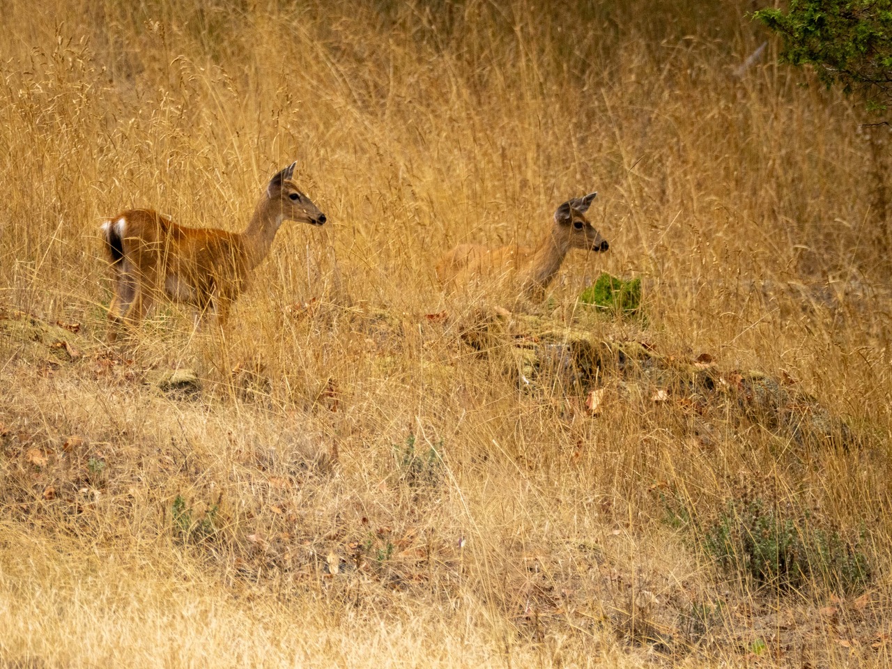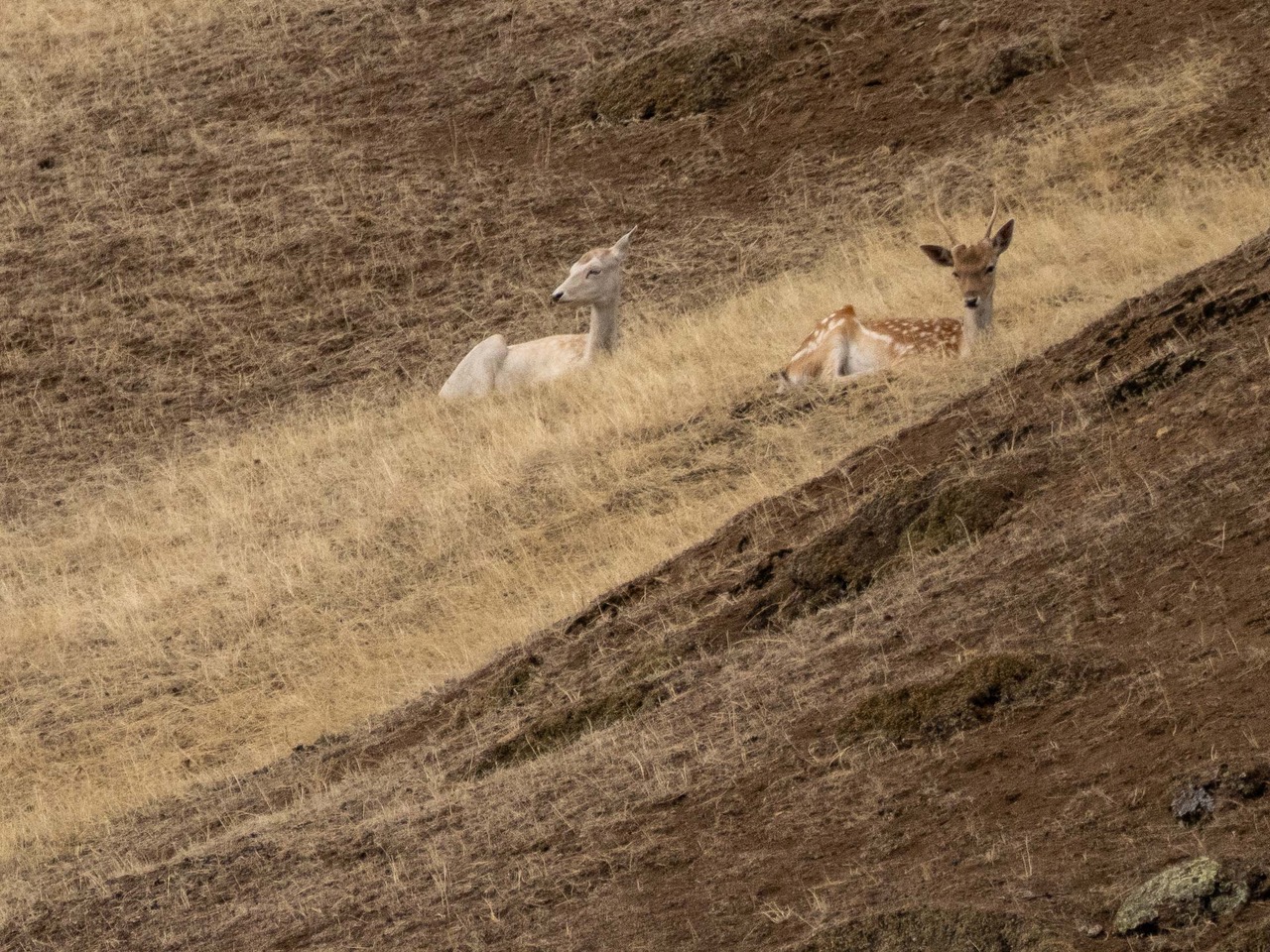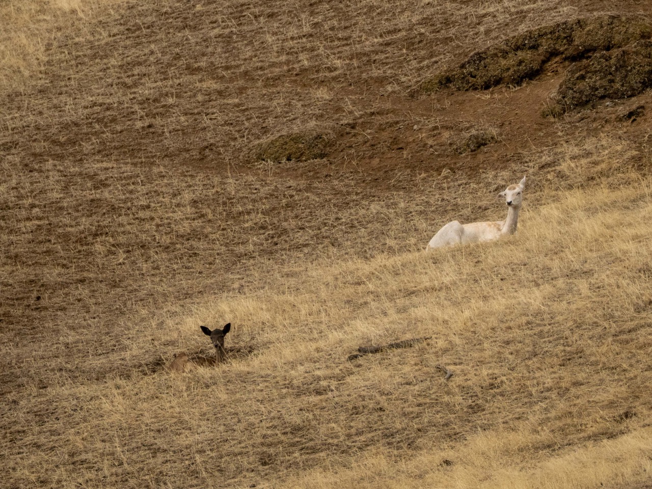 Leucistic (?) fallow deer and sika deer, Spieden Island