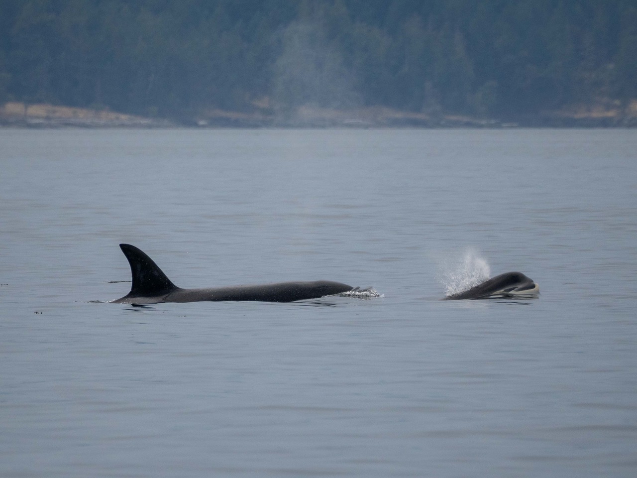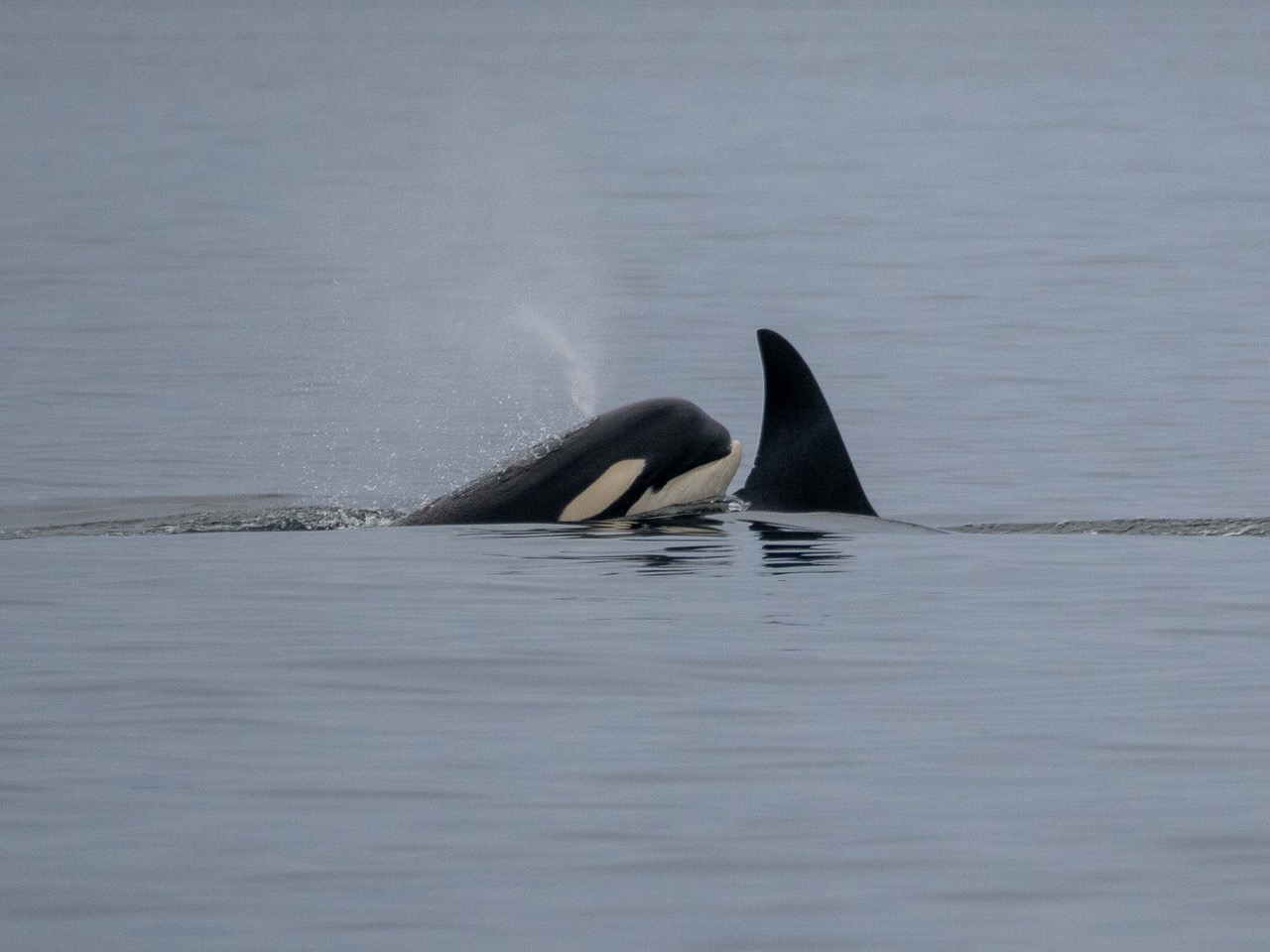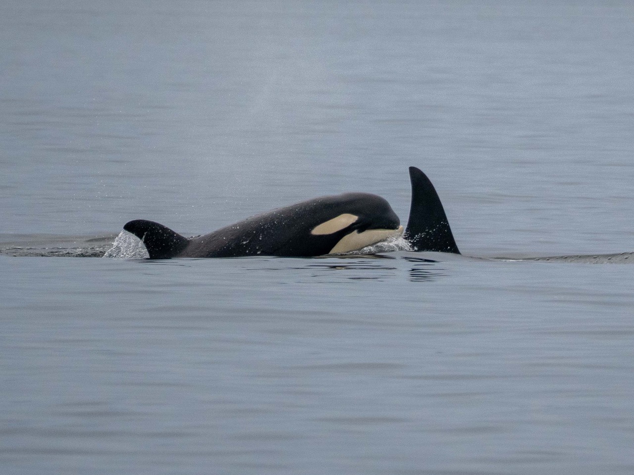 Biggs/Transient orca T49A with youngest T49A6 revealing underbite