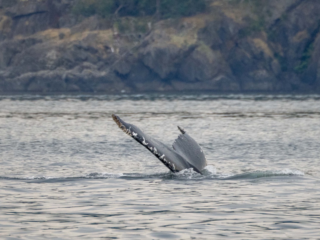 Tail flukes of Humpback whale BCX1675 “Strike” north of Stuart Island