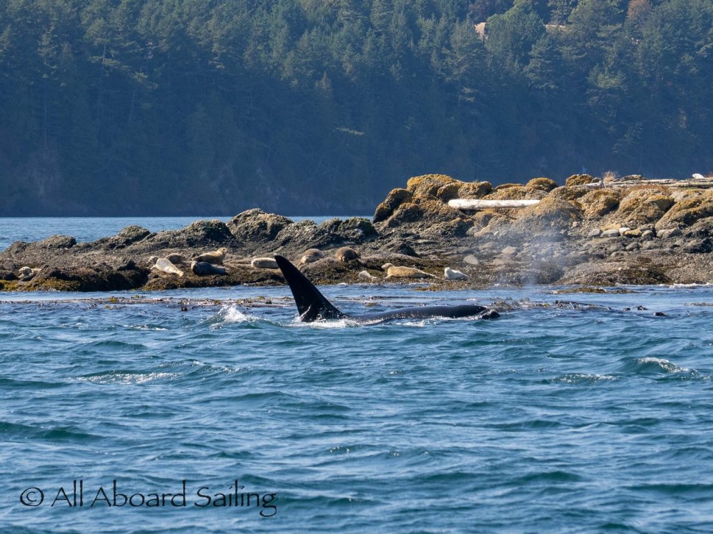 Biggs/Transient orca T60D passing harbor seals at Cactus Island