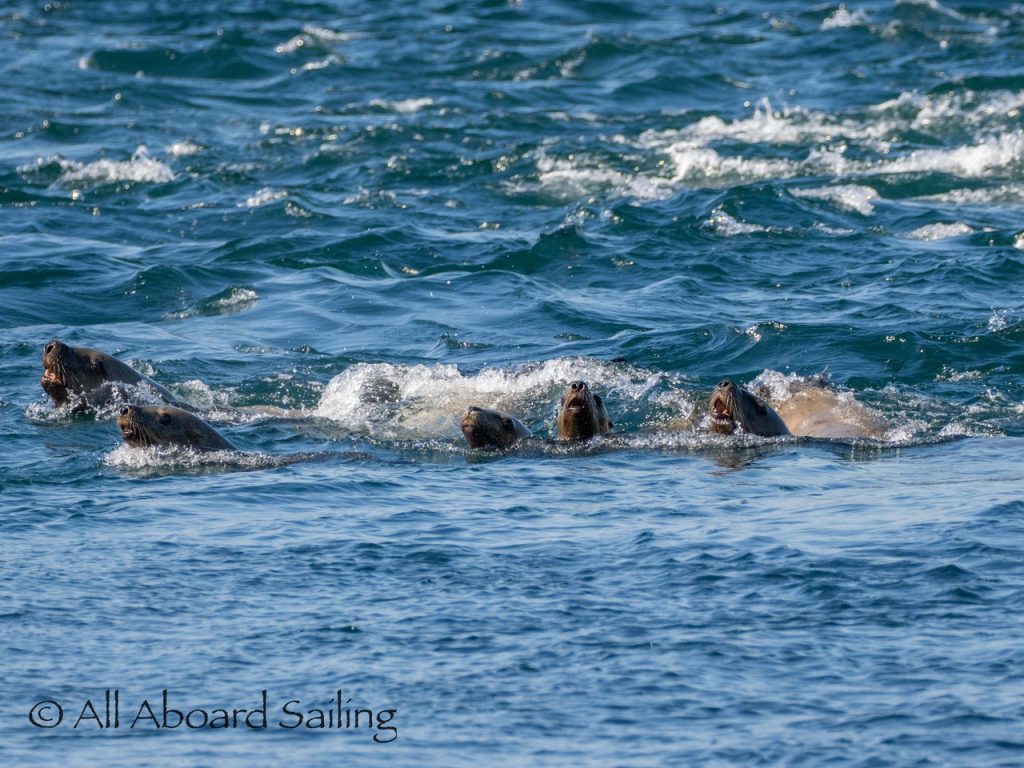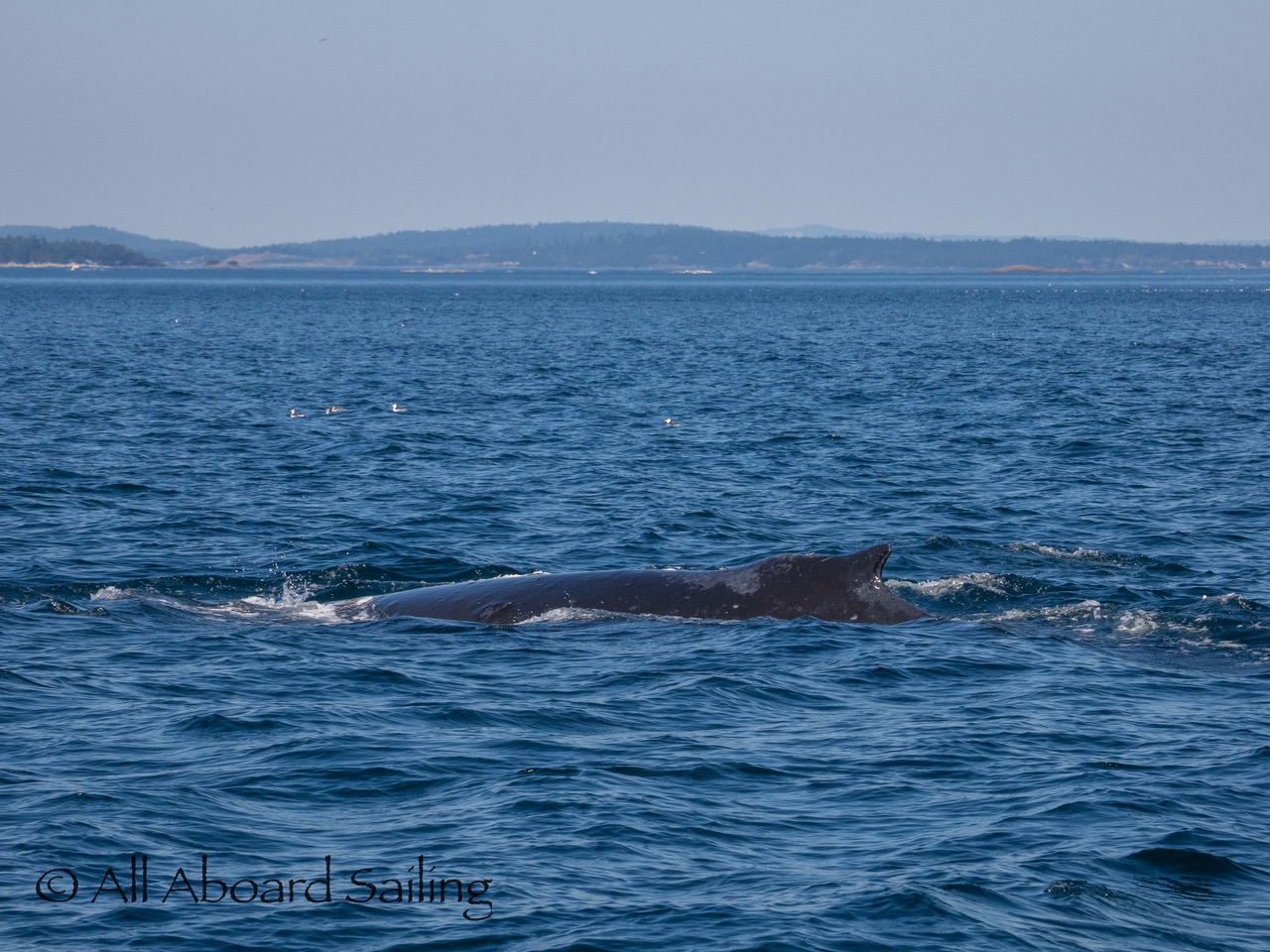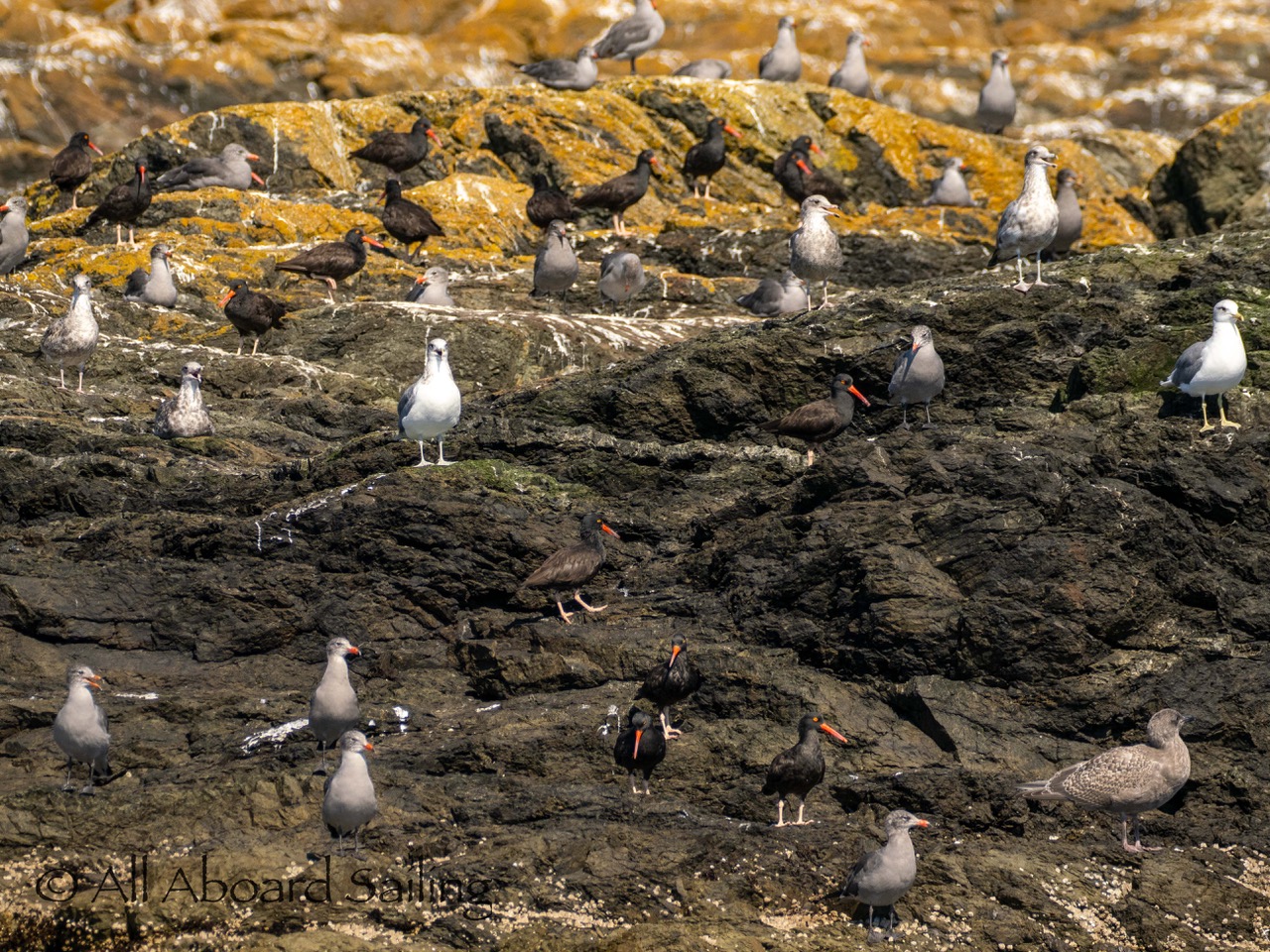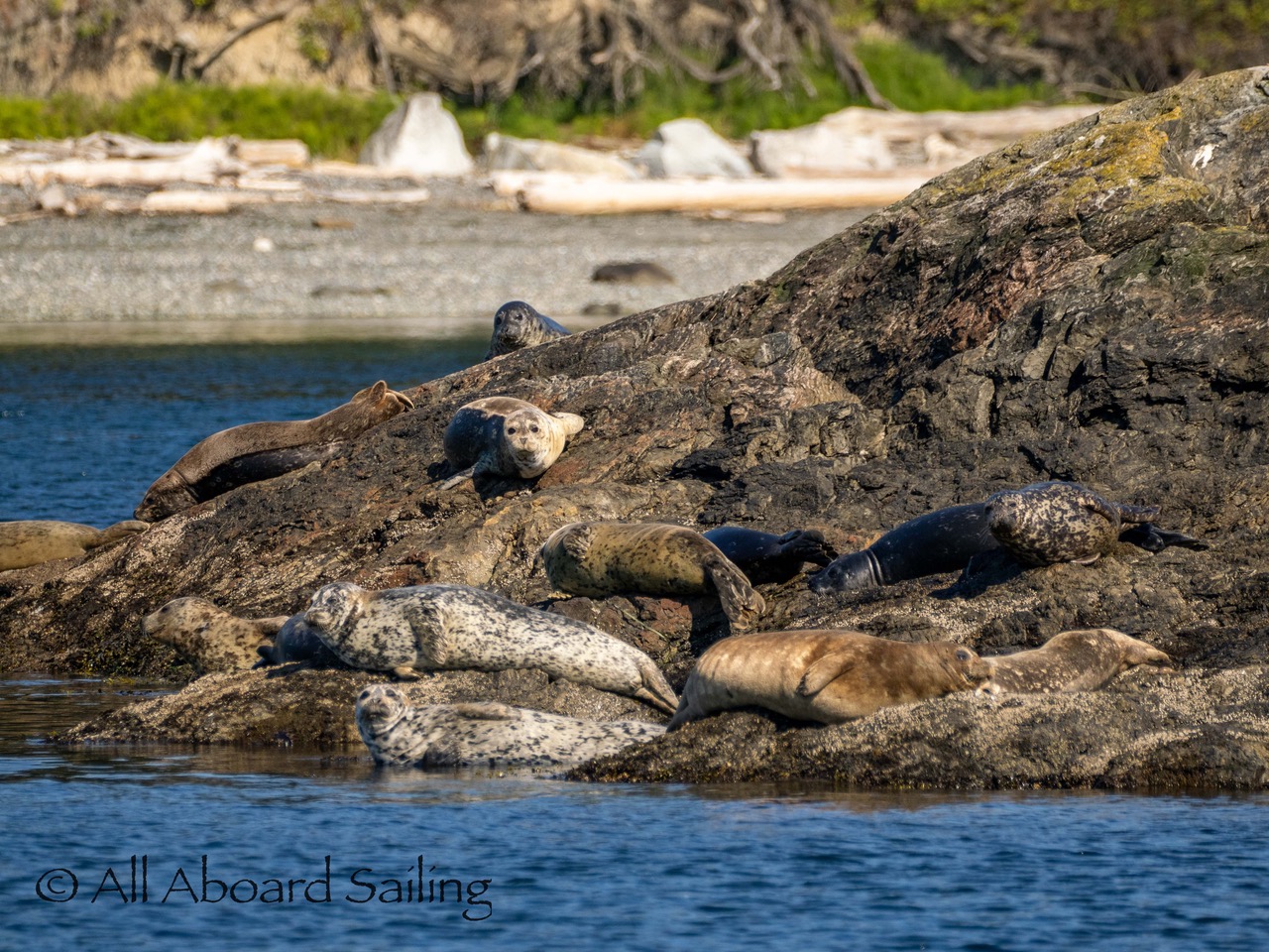 Sept 16, 2025 – A great trip sailing south today. We found the sea otter by Danger Rock eating clams. Viewed the cormorant rookery at Goose Island before checking out the rowdy Steller sea lion colony at Whale Rocks. A bald eagle with lunch in its talons and a large group of black oystercatchers were hanging out on Long Island. Great blue herons were fishing on bull kelp forests. On MacArthur Bank we had amazing views of humpback whale BCZ0345 “Victory” as she was lunge feeding on bait fish. We also saw a minke whale, too. Harbor seals were resting by Deadman Island as we came up through Cattle Pass. A really fun full day sail.