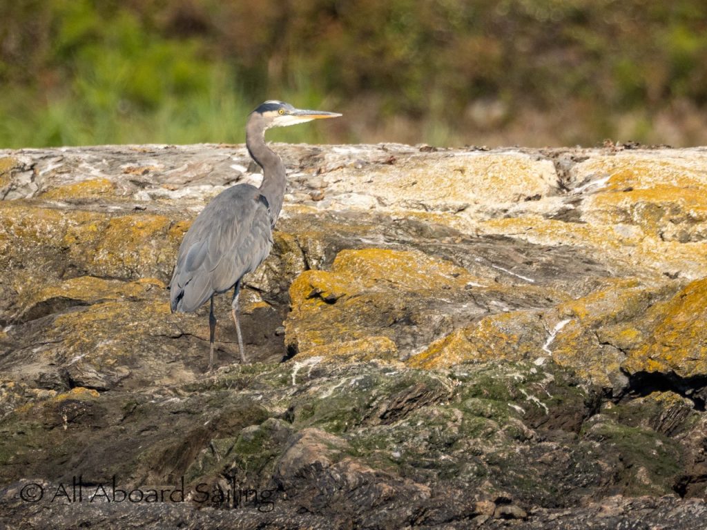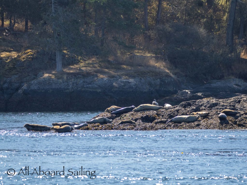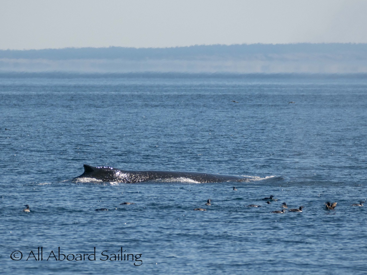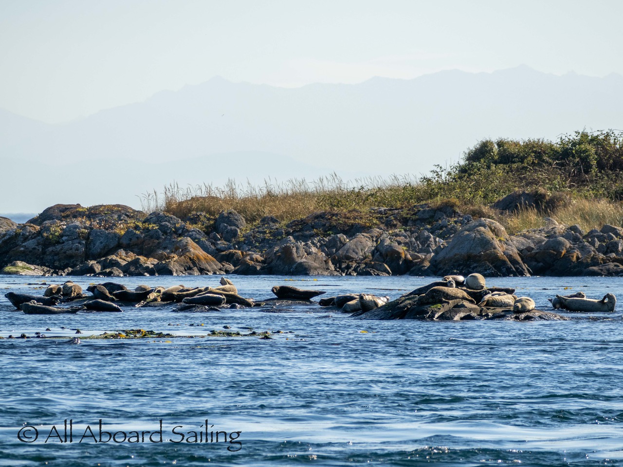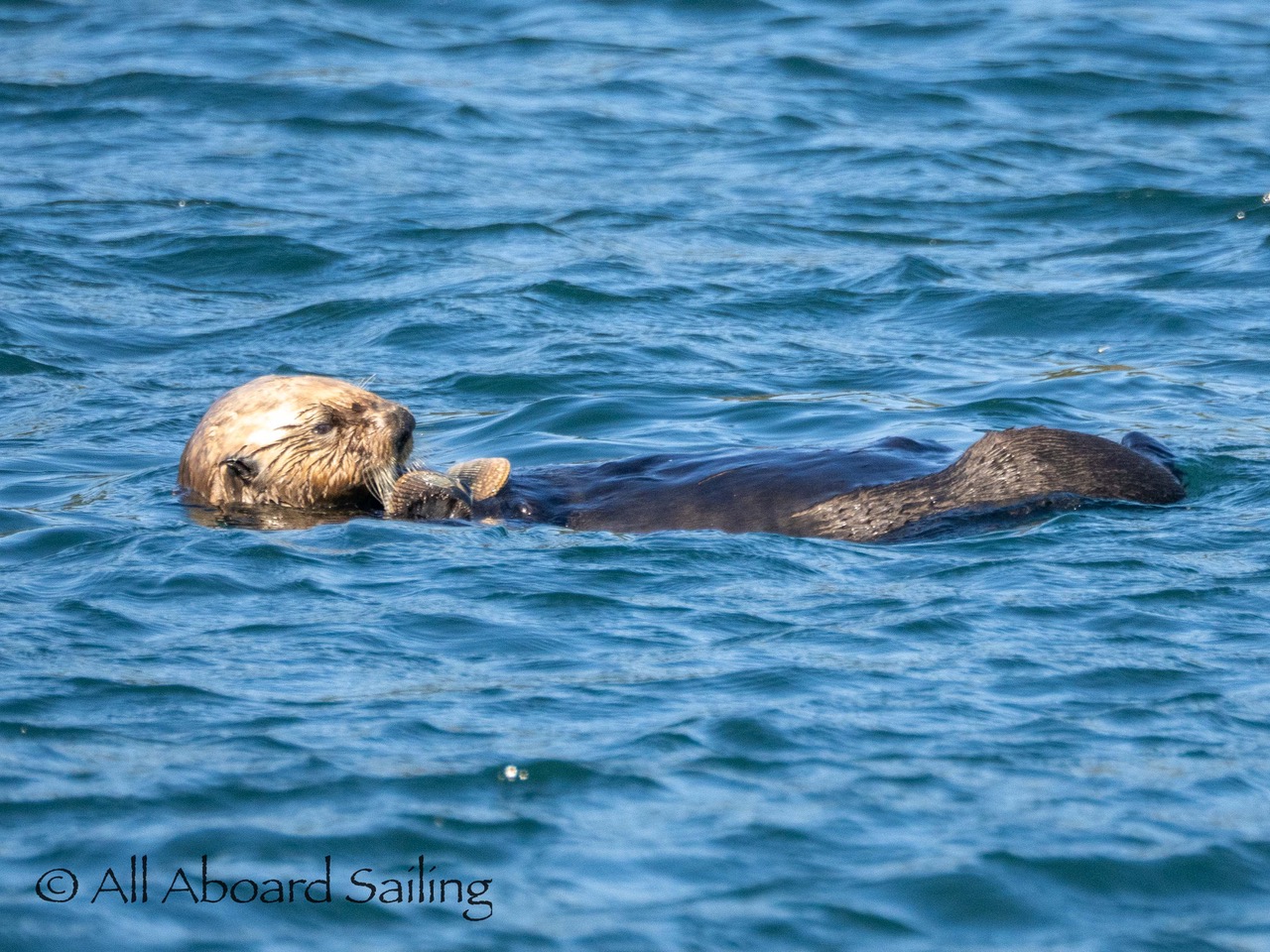 Sept 16, 2025 – A great trip sailing south today. We found the sea otter by Danger Rock eating clams. Viewed the cormorant rookery at Goose Island before checking out the rowdy Steller sea lion colony at Whale Rocks. A bald eagle with lunch in its talons and a large group of black oystercatchers were hanging out on Long Island. Great blue herons were fishing on bull kelp forests. On MacArthur Bank we had amazing views of humpback whale BCZ0345 “Victory” as she was lunge feeding on bait fish. We also saw a minke whale, too. Harbor seals were resting by Deadman Island as we came up through Cattle Pass. A really fun full day sail.