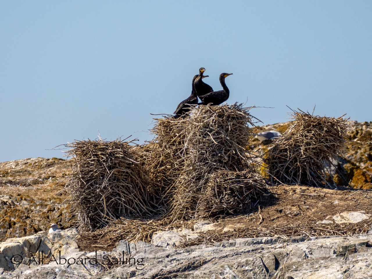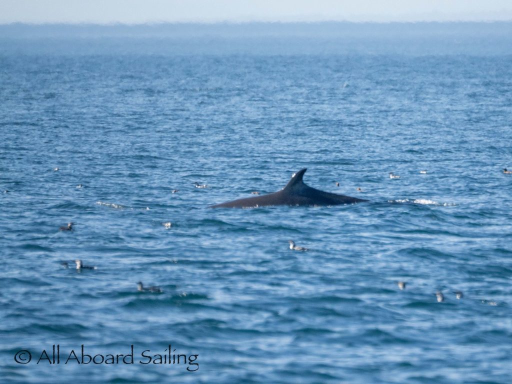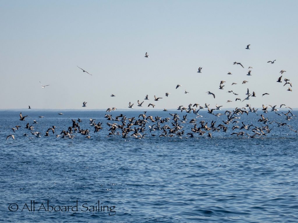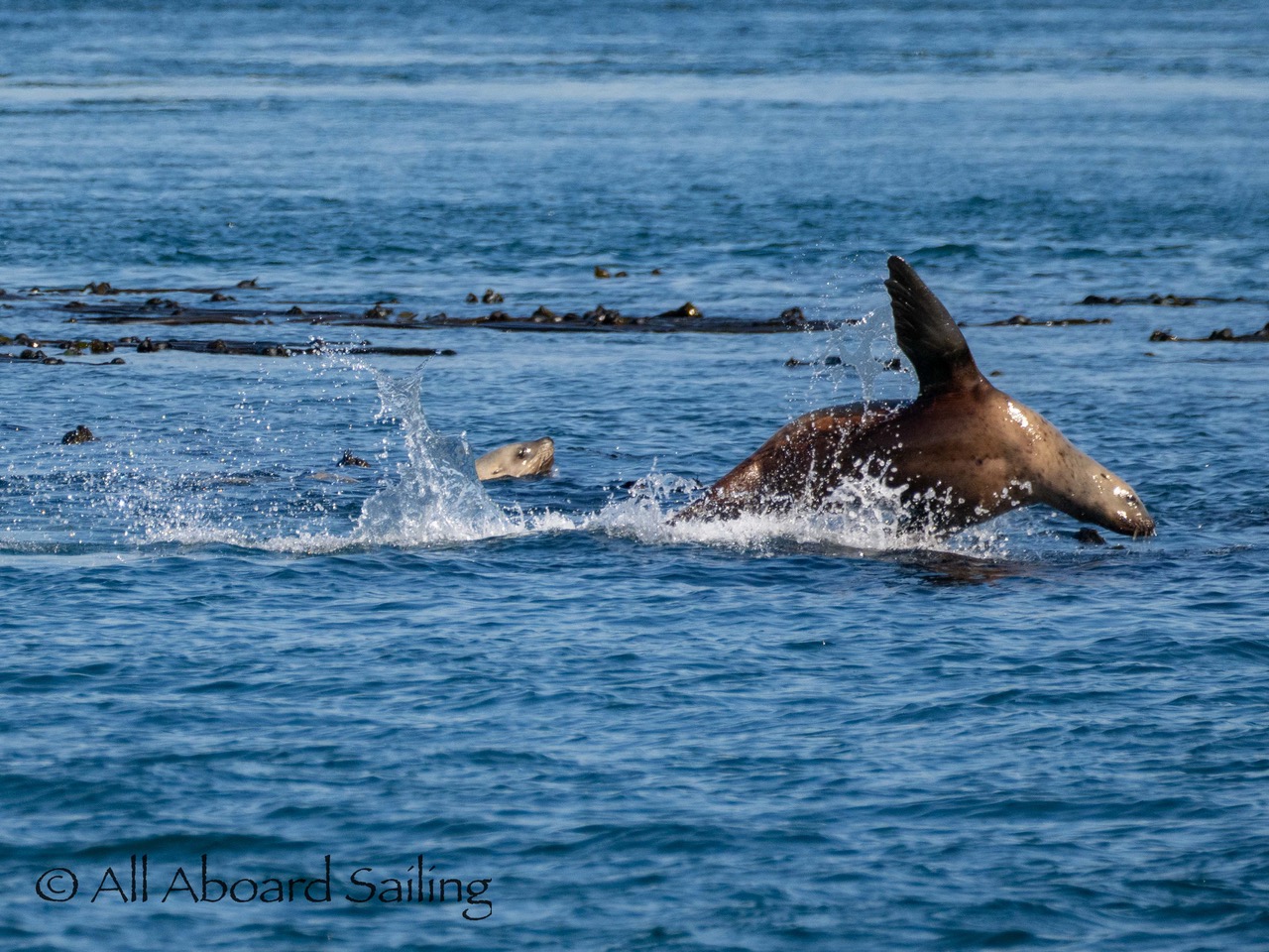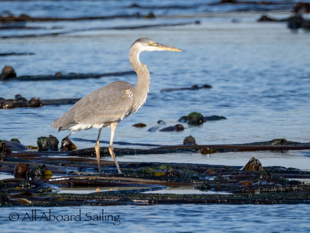 Sept 16, 2025 – A great trip sailing south today. We found the sea otter by Danger Rock eating clams. Viewed the cormorant rookery at Goose Island before checking out the rowdy Steller sea lion colony at Whale Rocks. A bald eagle with lunch in its talons and a large group of black oystercatchers were hanging out on Long Island. Great blue herons were fishing on bull kelp forests. On MacArthur Bank we had amazing views of humpback whale BCZ0345 “Victory” as she was lunge feeding on bait fish. We also saw a minke whale, too. Harbor seals were resting by Deadman Island as we came up through Cattle Pass. A really fun full day sail.