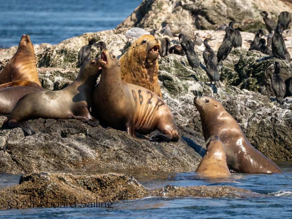 Branded Steller sea lion “962R” at Whale Rocks, San Juan Islands