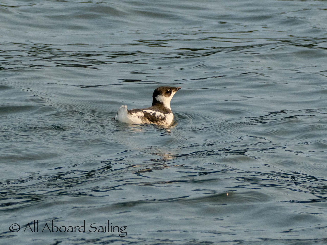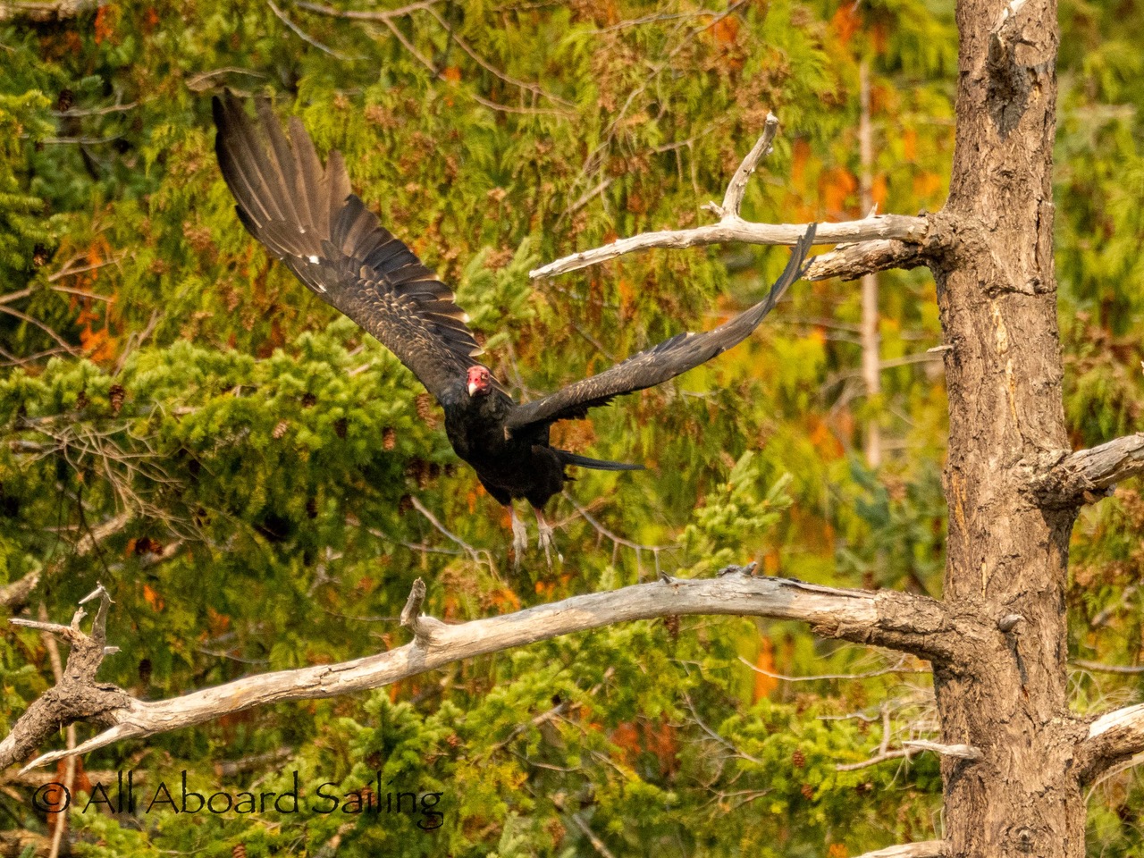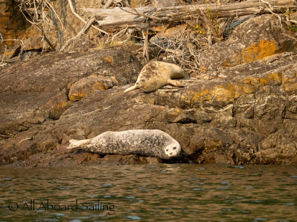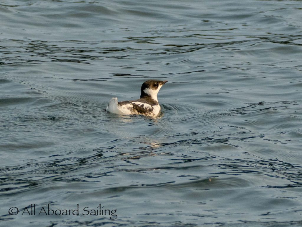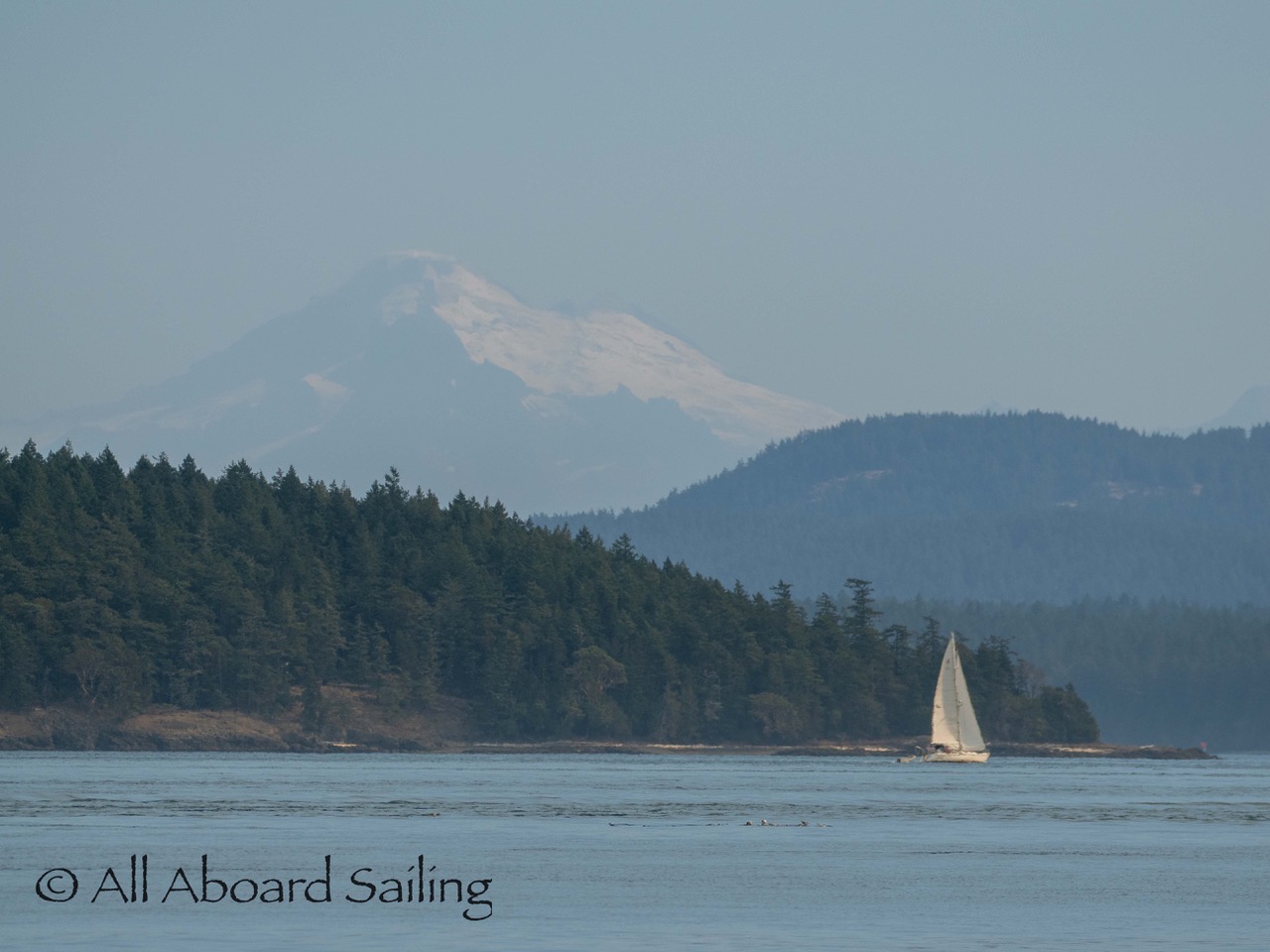 Sept 17, 2025 – Today’s adventure began with fantastic views of an adorable sea otter resting in a kelp bed by Turn Rock. This little animal couldn’t be any cuter if he/she tried! After hearing a report of a lone male orca southbound on the east side of Orcas Island we picked a route inter-island with hopes to meet him. After hugging the coastline near Upright Head, Lopez Island, we crossed towards Peavine Pass. The male orca had been identified as T49A1 (born 2001) and he was southbound after milling near Pea Pod Rocks for awhile. Soon after we got on scene and had some great views as we sailed alongside. He decided to take the pass by Obstruction Island and travel inter-island back in the direction where we just came from conveniently taking us back towards Friday Harbor. At the bottom of Upright Channel he decided to go south and we decided to go north and cruse the coastline by Shaw Island spotting bald eagles, harbor seals, a great blue heron, common murres, and turkey vultures before crossing the channel back to the harbor.