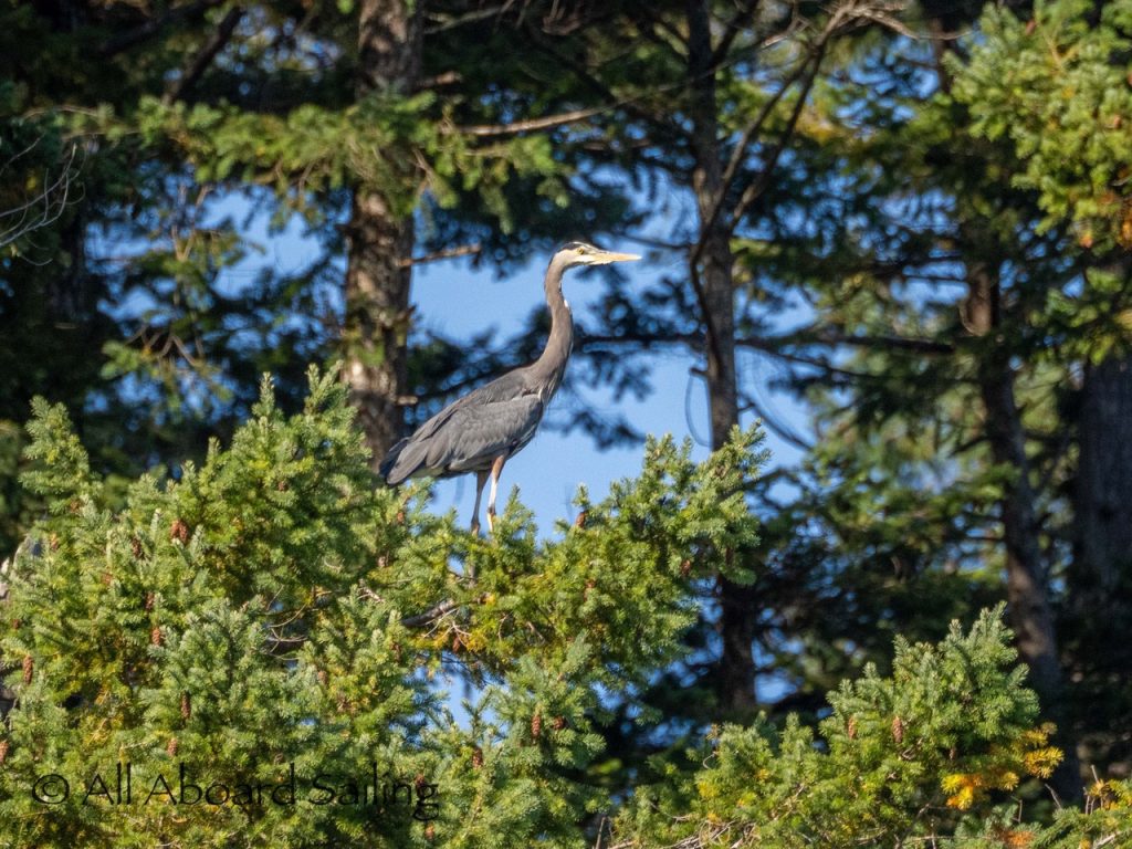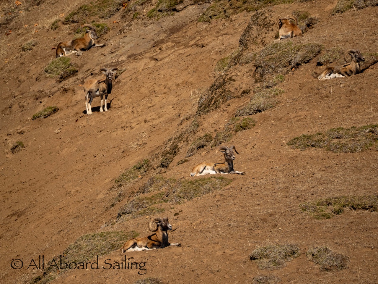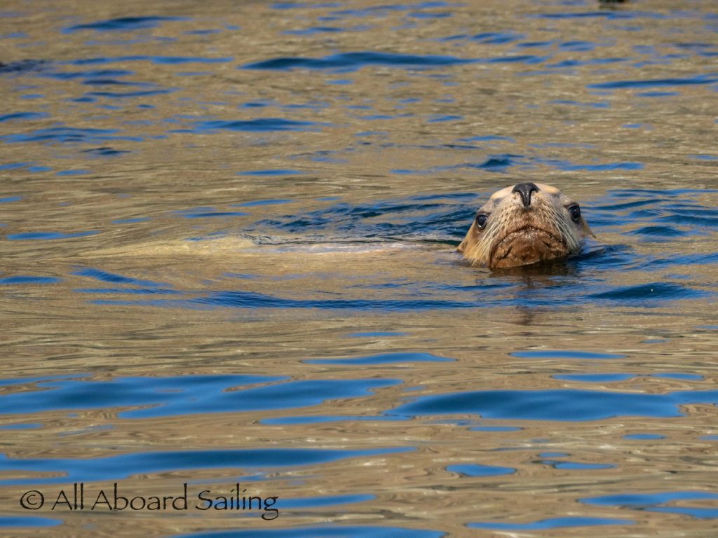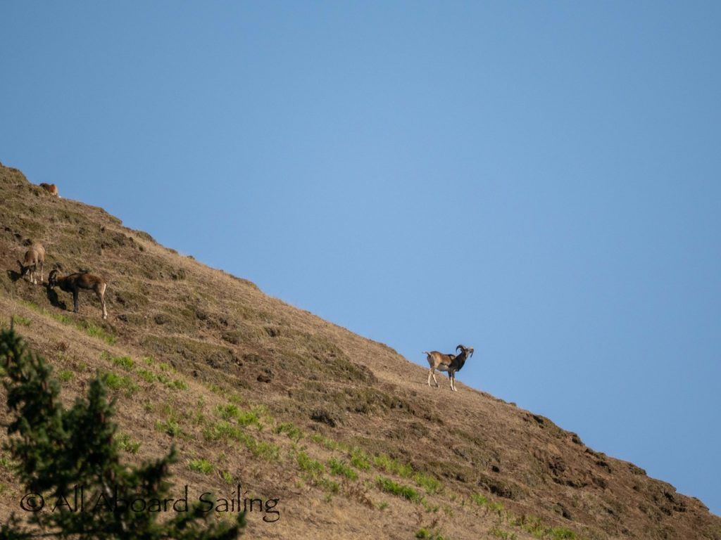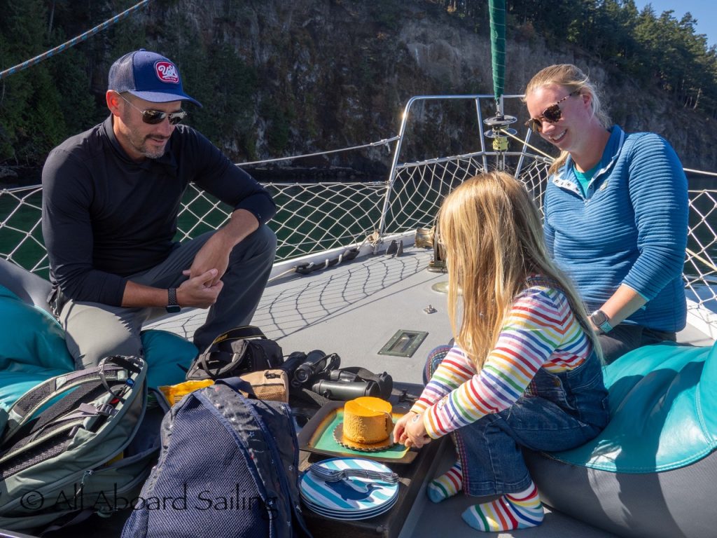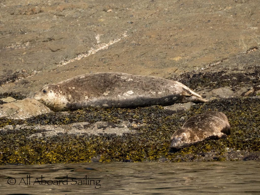 Sept 21, 2025 – Half day sail north. Harbor seals, harbor porpoise, bald eagles, great blue herons, a hawk, Mouflon sheep, fallow deer, Steller sea lions. Mirror calm waters in New Channel. Harbor porpoise exhales. Bald eagle and Peregrine falcon calls. Birthday cake. A gorgeous day.