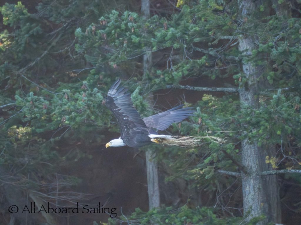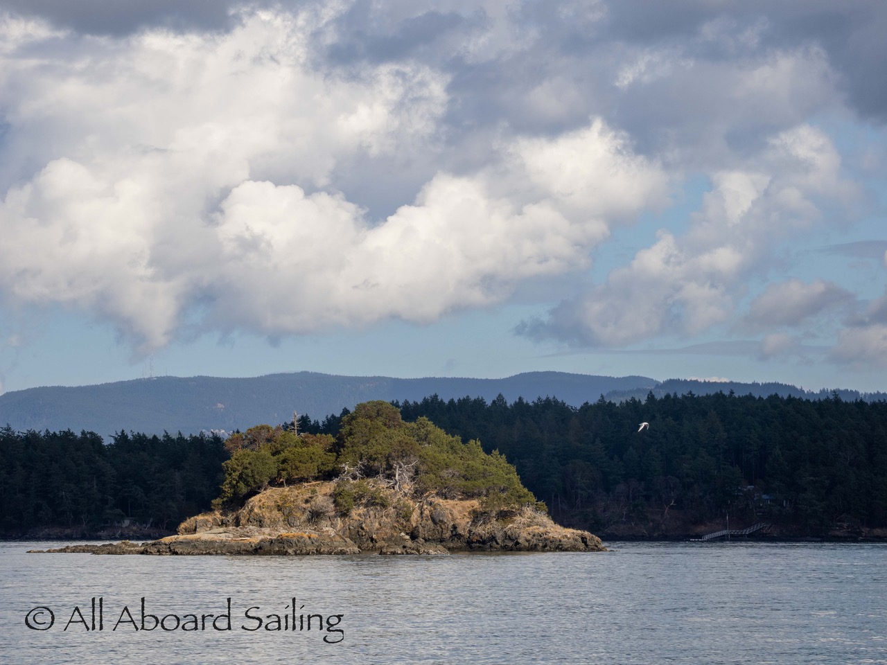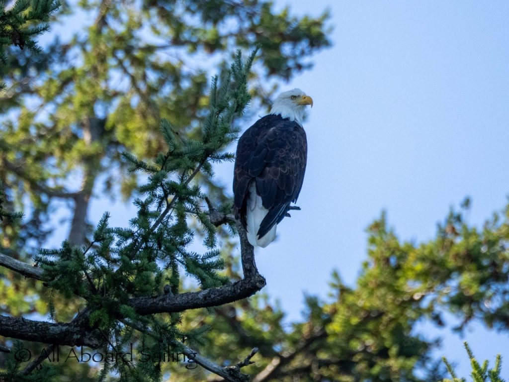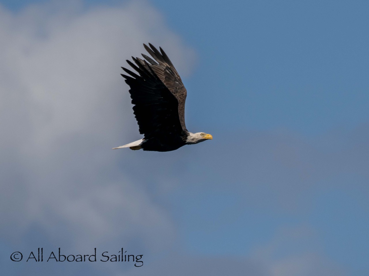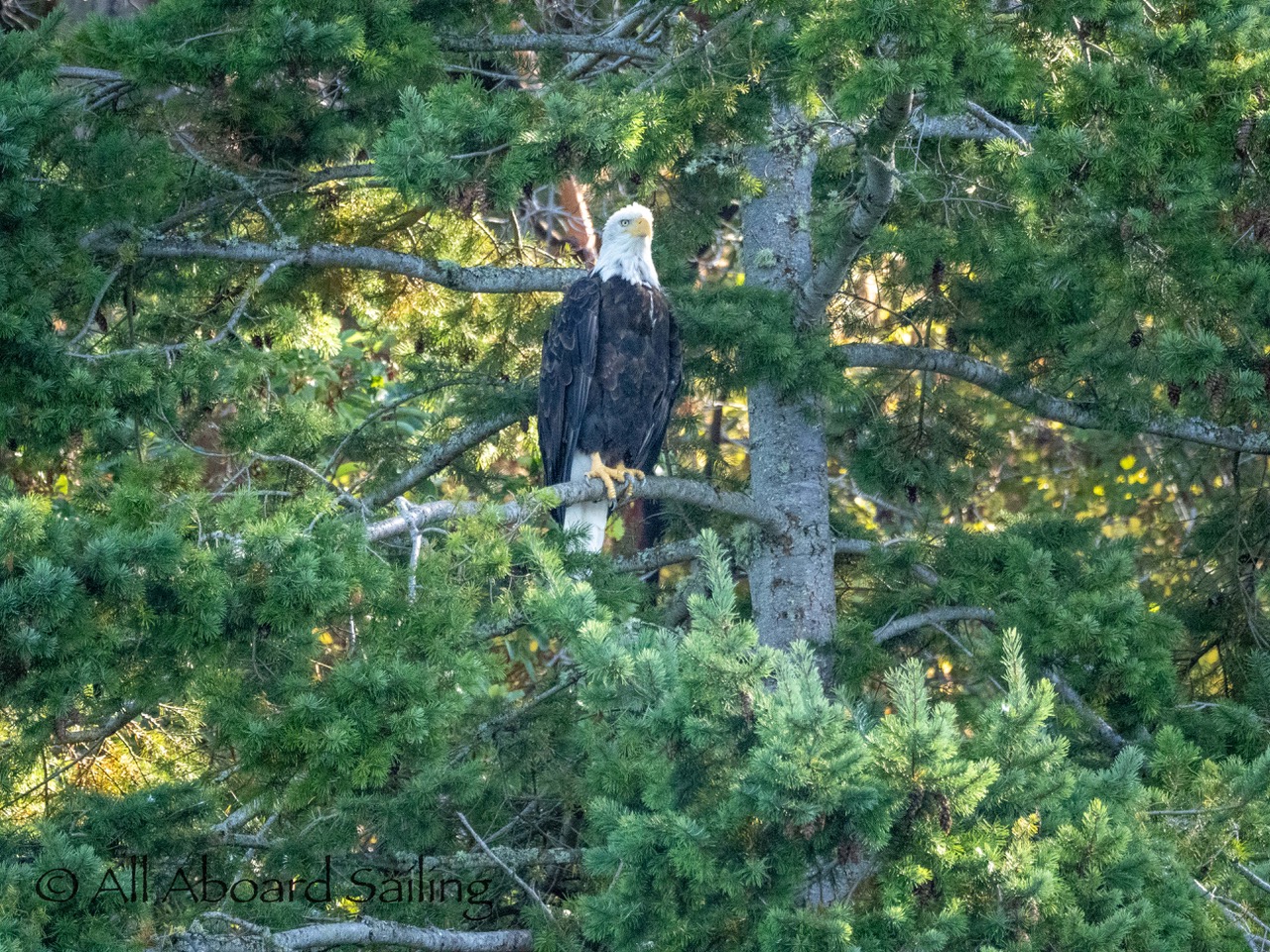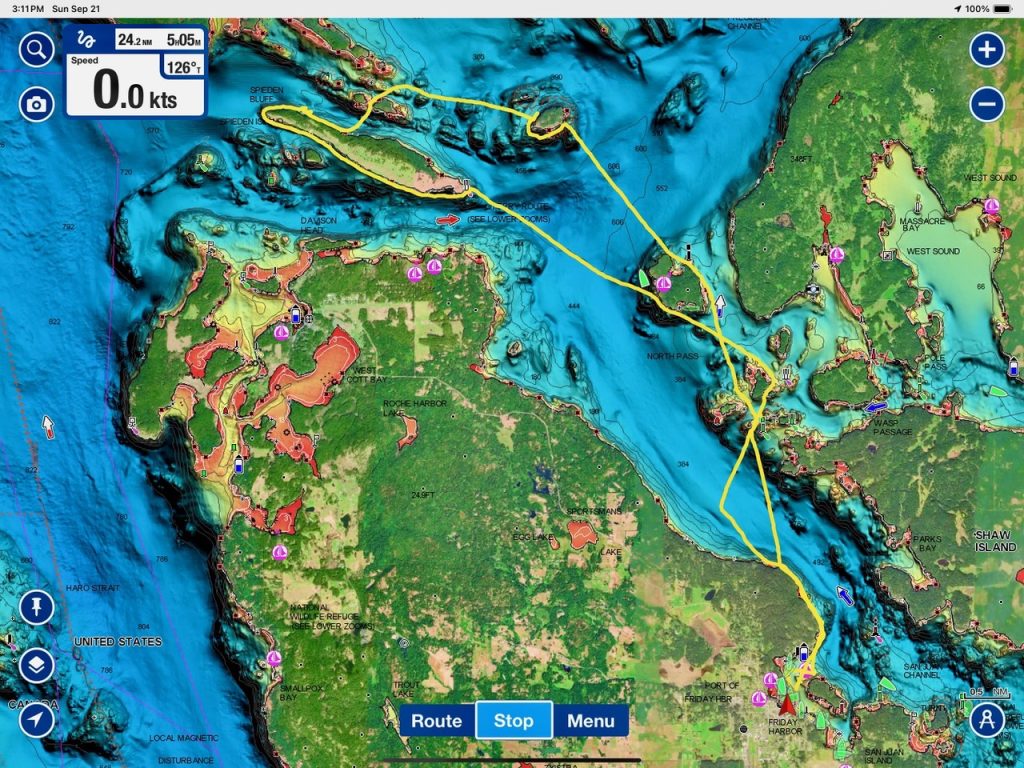 Sept 21, 2025 – Half day sail north. Harbor seals, harbor porpoise, bald eagles, great blue herons, a hawk, Mouflon sheep, fallow deer, Steller sea lions. Mirror calm waters in New Channel. Harbor porpoise exhales. Bald eagle and Peregrine falcon calls. Birthday cake. A gorgeous day.