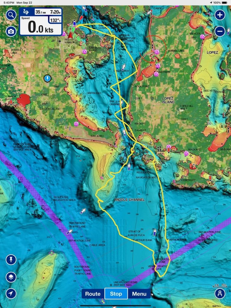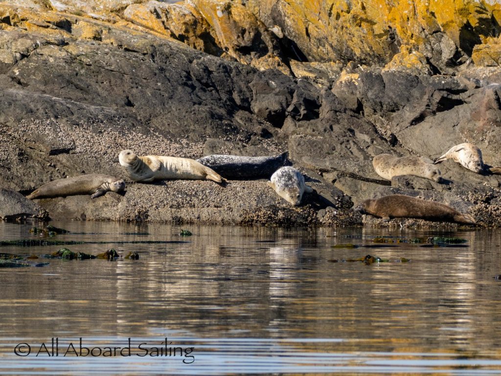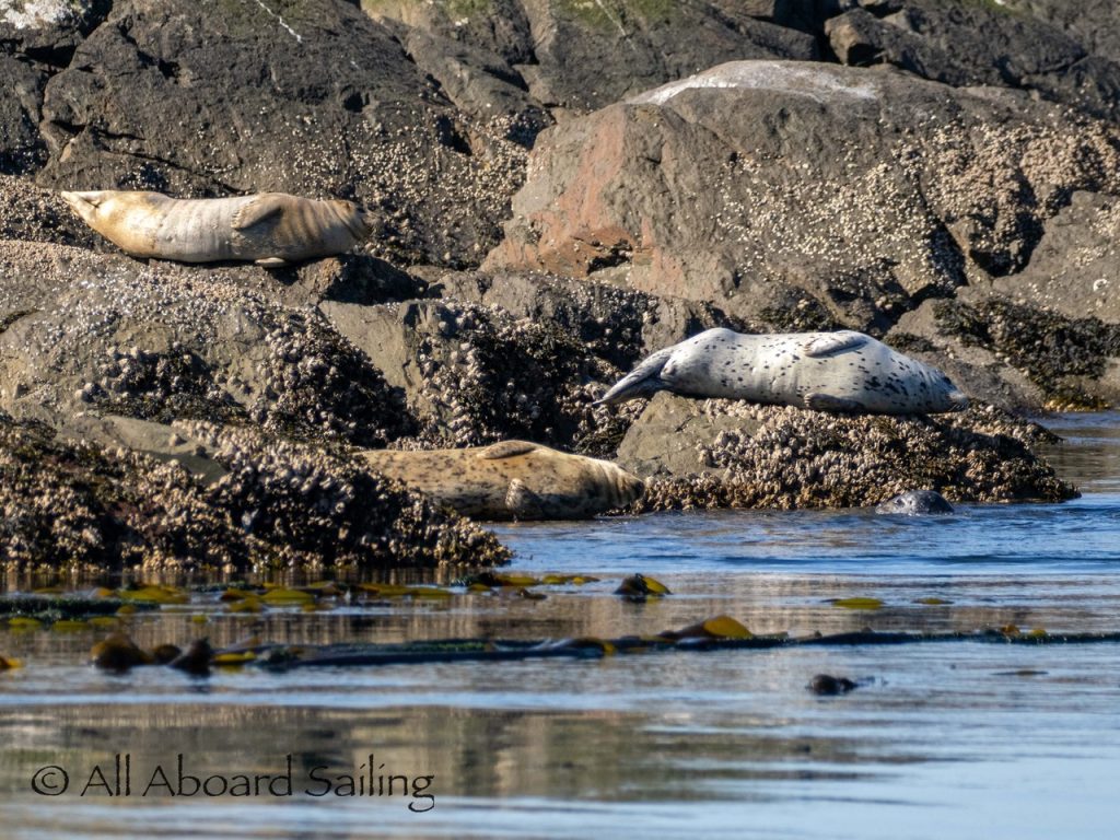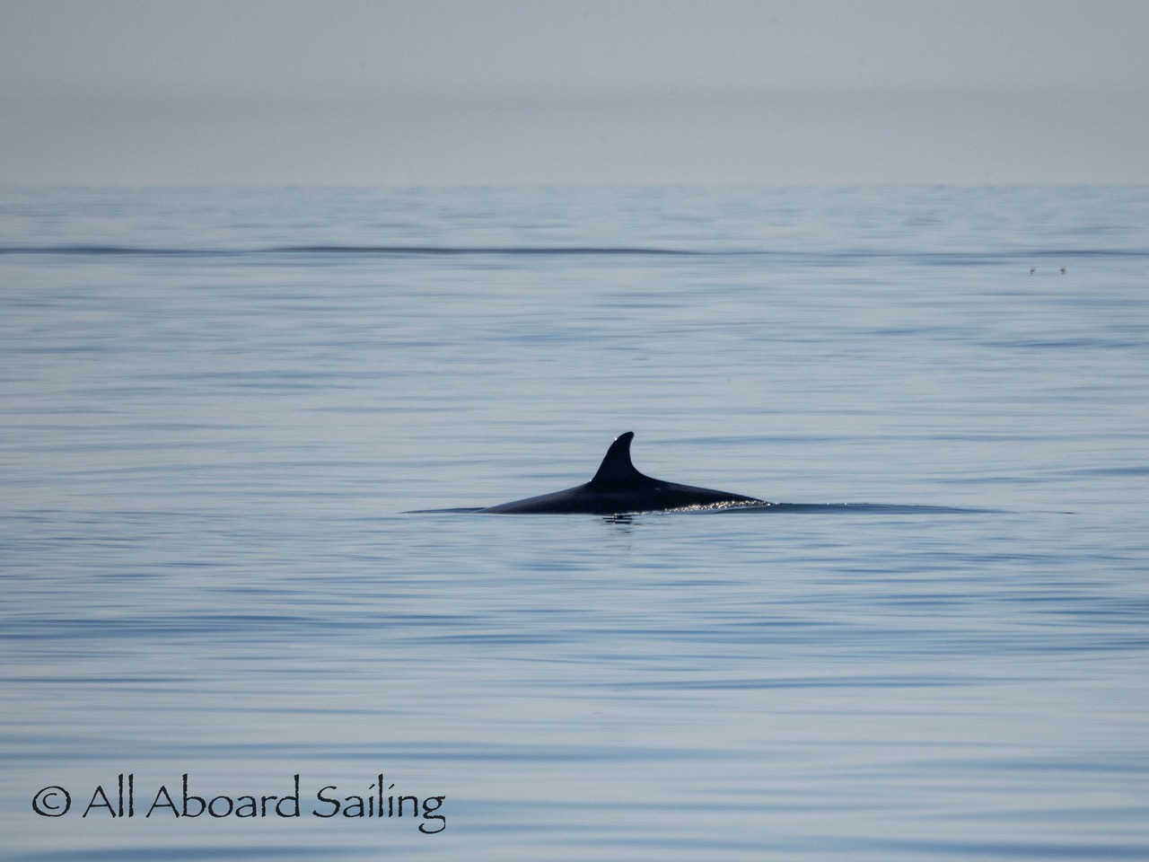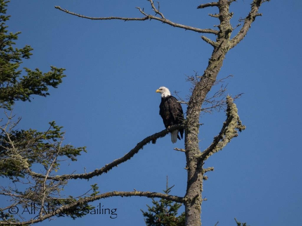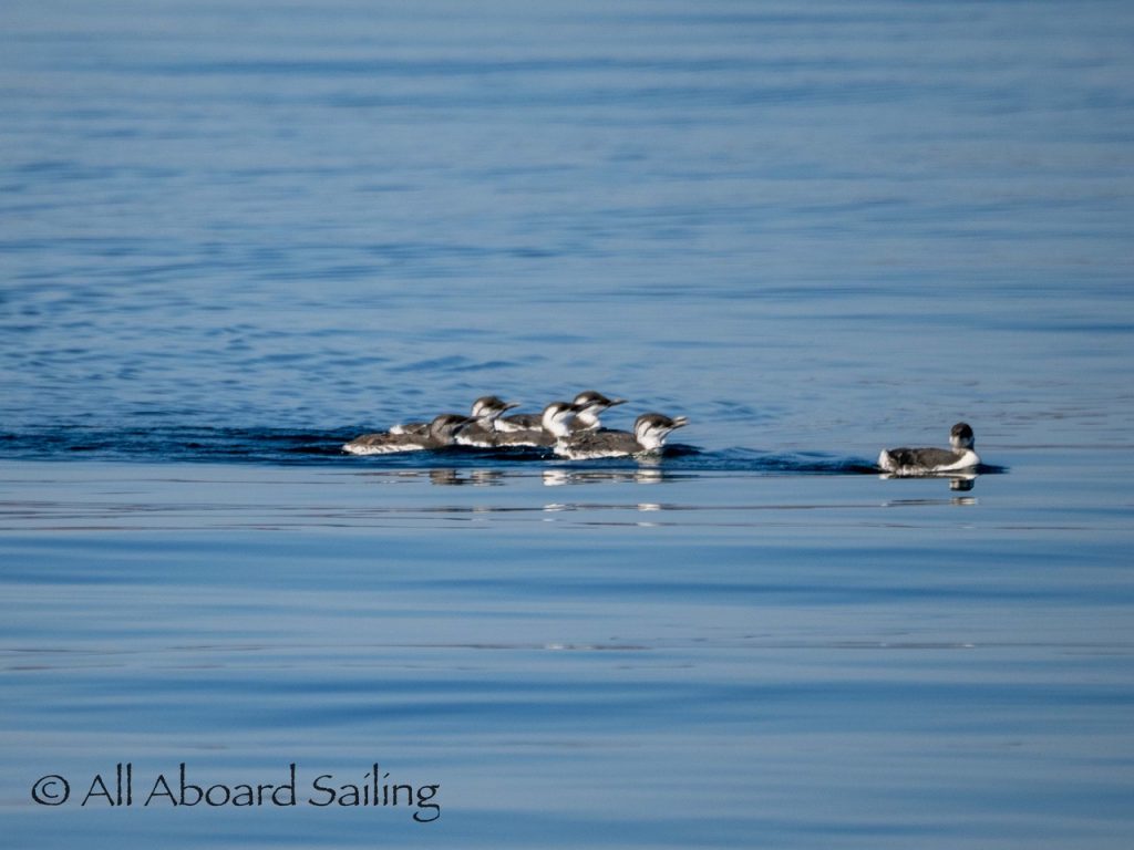Sept 22, 2025 – We sailed south today and with a decent breeze and an ebb current were able to tack our way down to Cattle Pass for some nice sailing. After viewing the harbor seals and a bald eagle at Deadman Island we came out to Whale Rocks to view the Steller sea lions. The sea lions were quite playful and we noted a tiny pup in with the large animals. Coming out to Salmon Bank we had some views of a minke whale (aka “Dent”) near the southern tip of the bank. We moved south to MacArthur Bank seeing a humpback whale, BCZ0345 “Victory” who was heading north looking for bait balls as the current passed maximum flood. We continued north coming in the east side of Long Island seeing many black oystercatchers both adults and this year’s chicks. Came in quickly on the flood current stopping to see the sea otter at Turn Rock with quite a number of Bonaparte’s gulls.