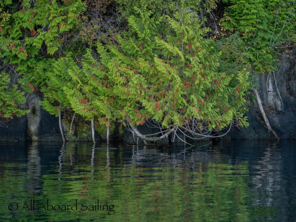 Red cedar tree reflections