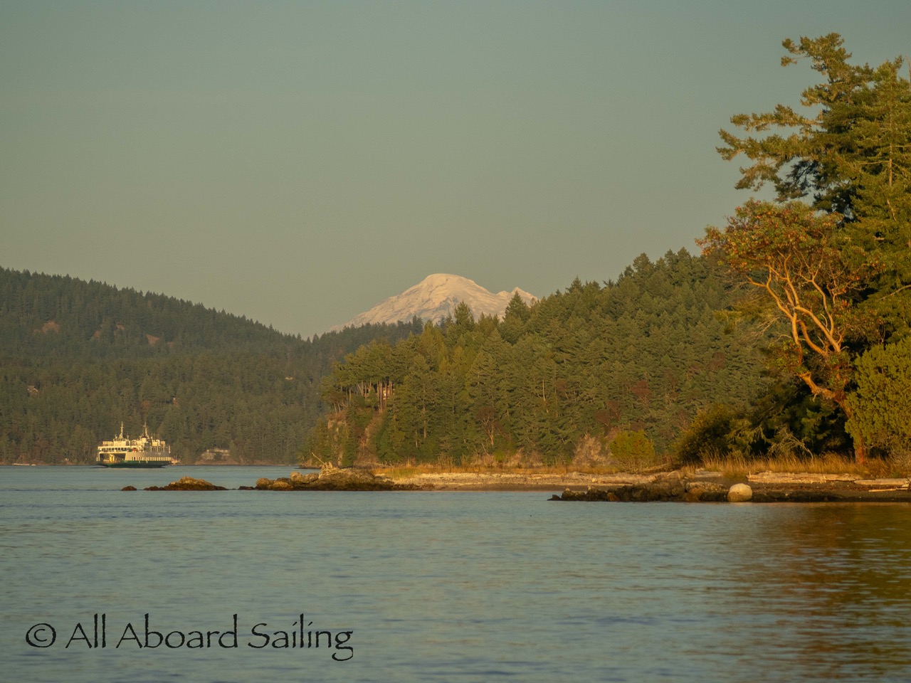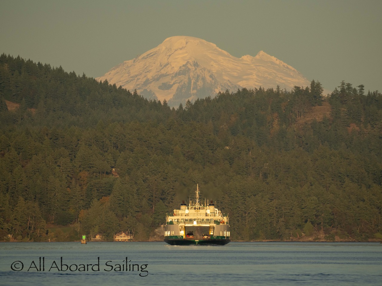 Ferry with Mt Baker in sunset light