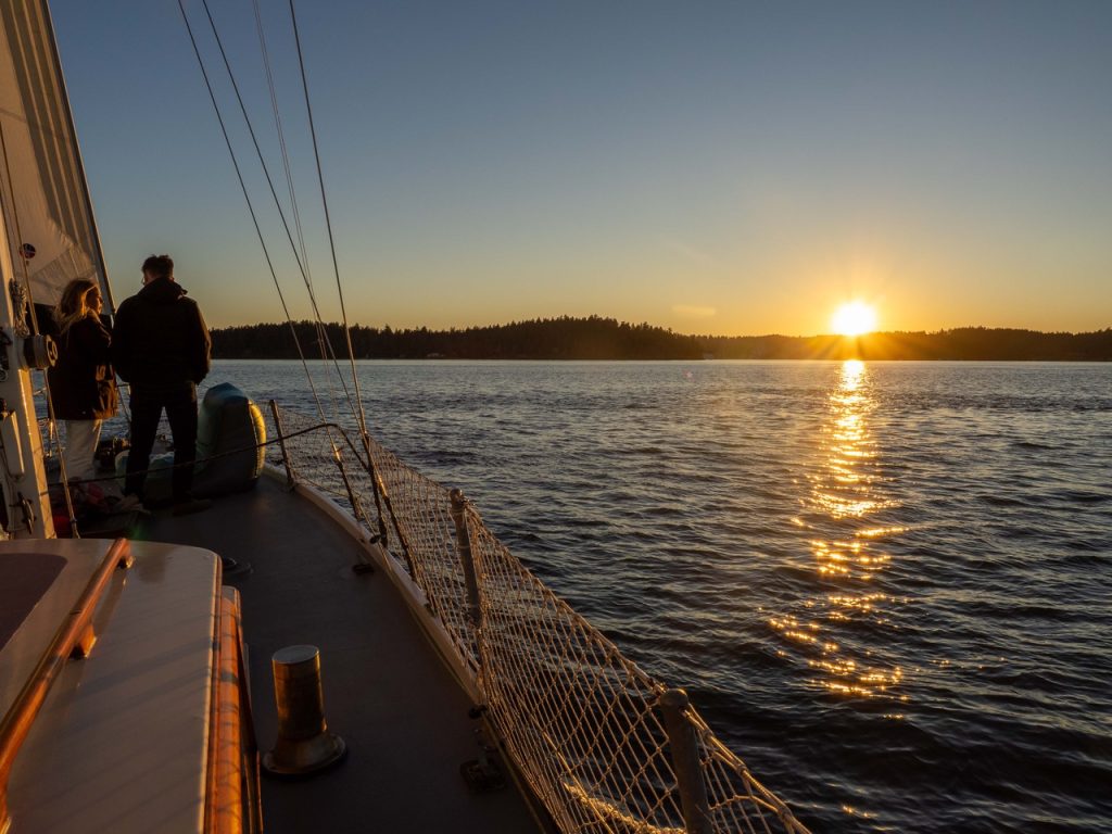 October 14, 2025 – Honeymoon celebration with a short sunset sail. Across to Shaw Island and around Turn Island