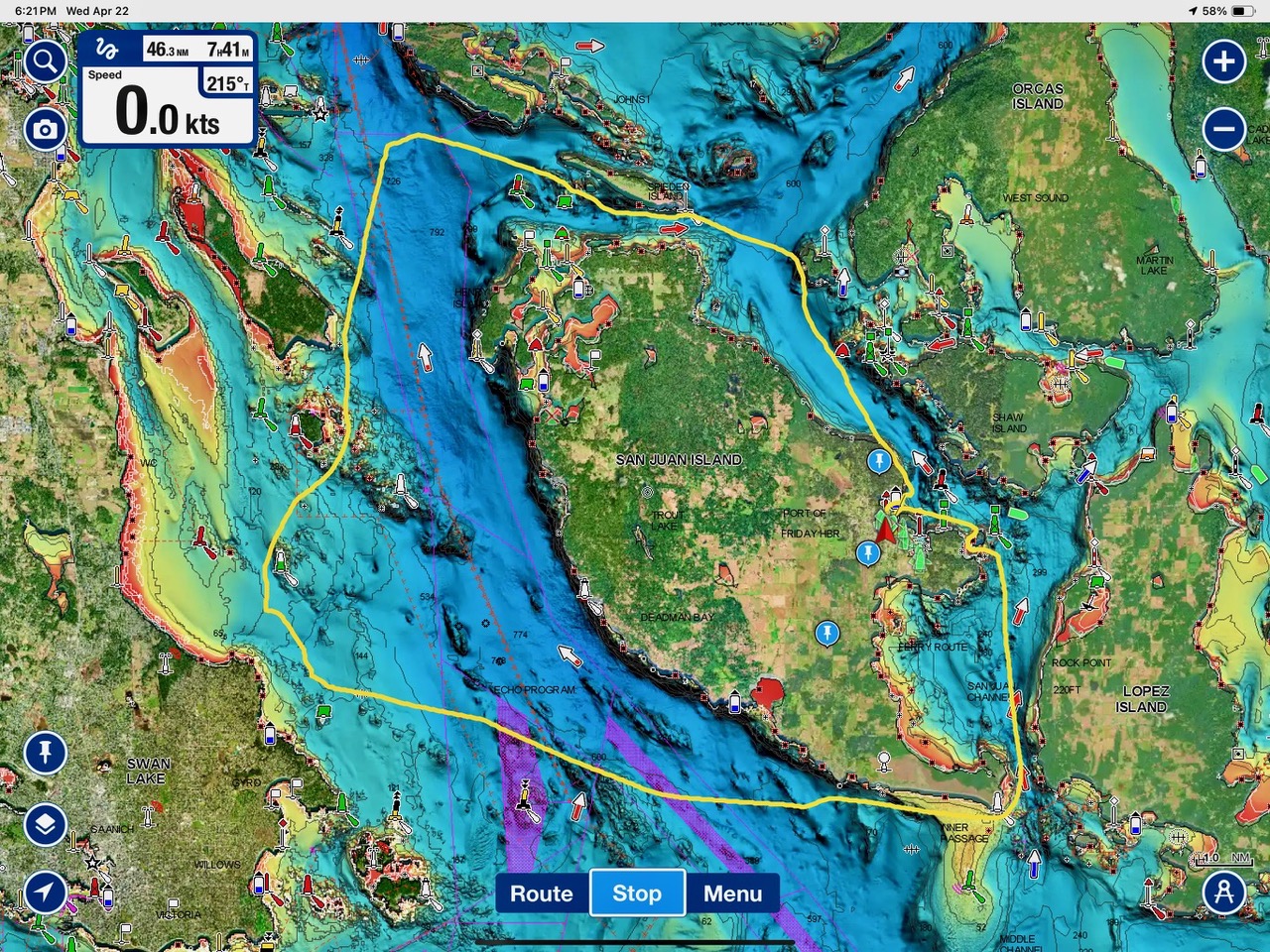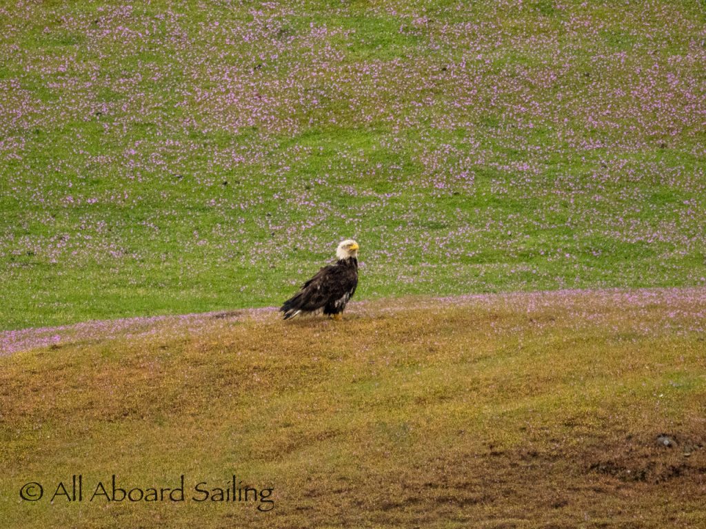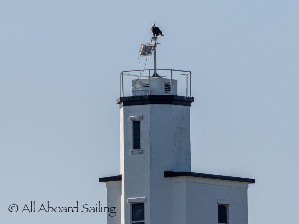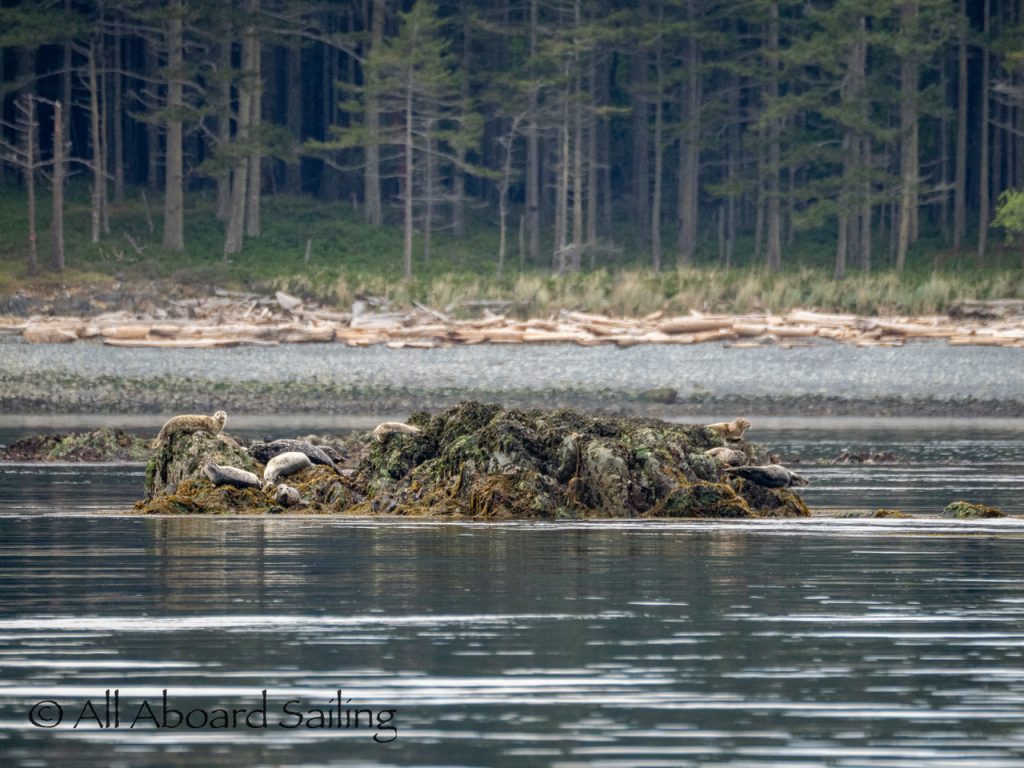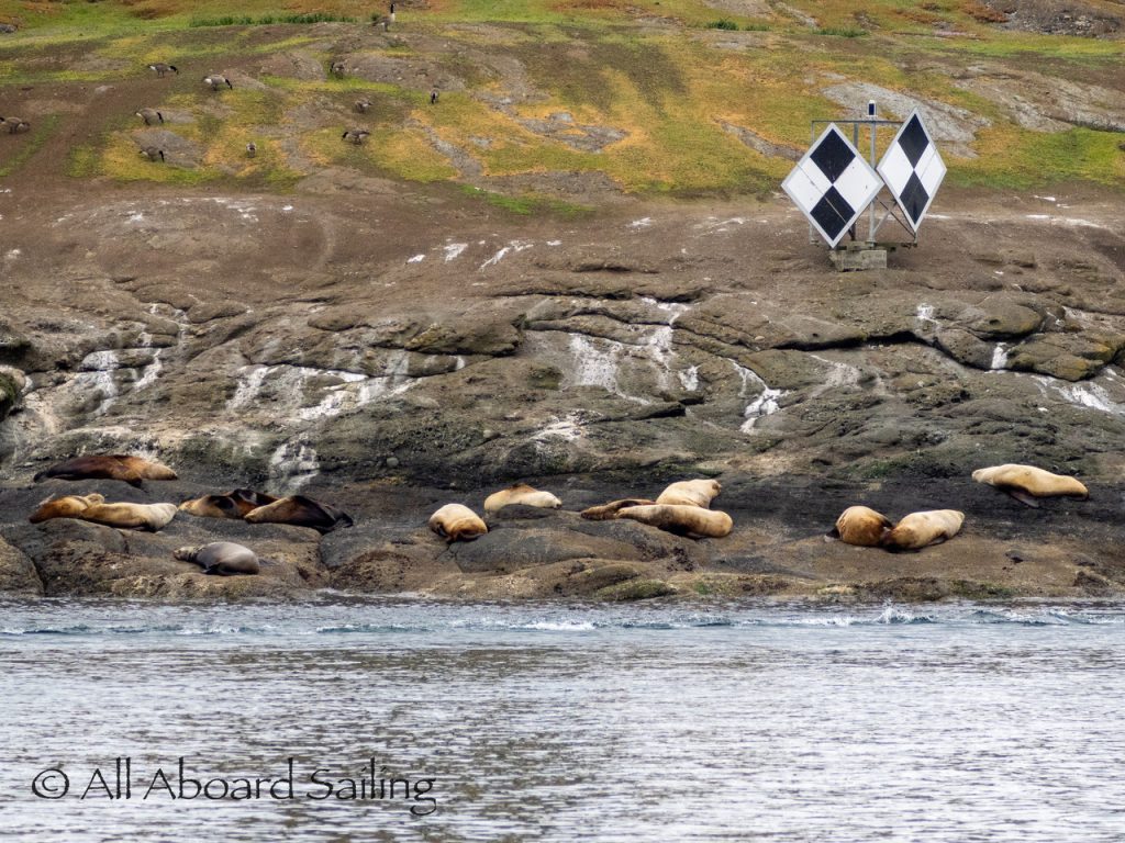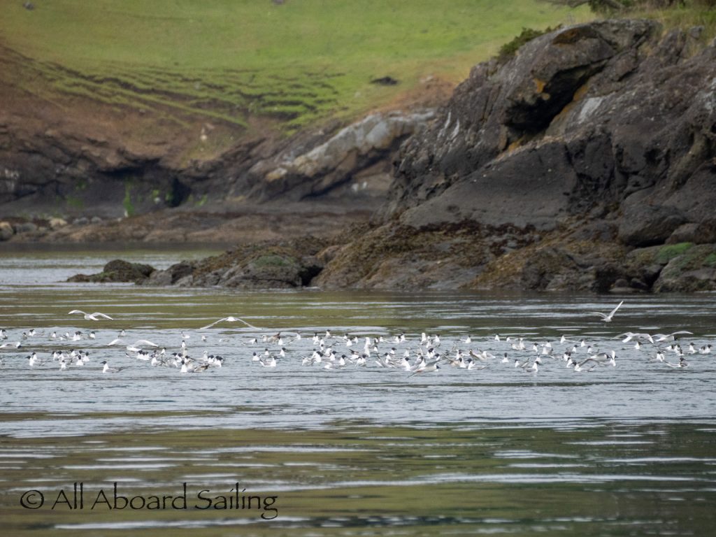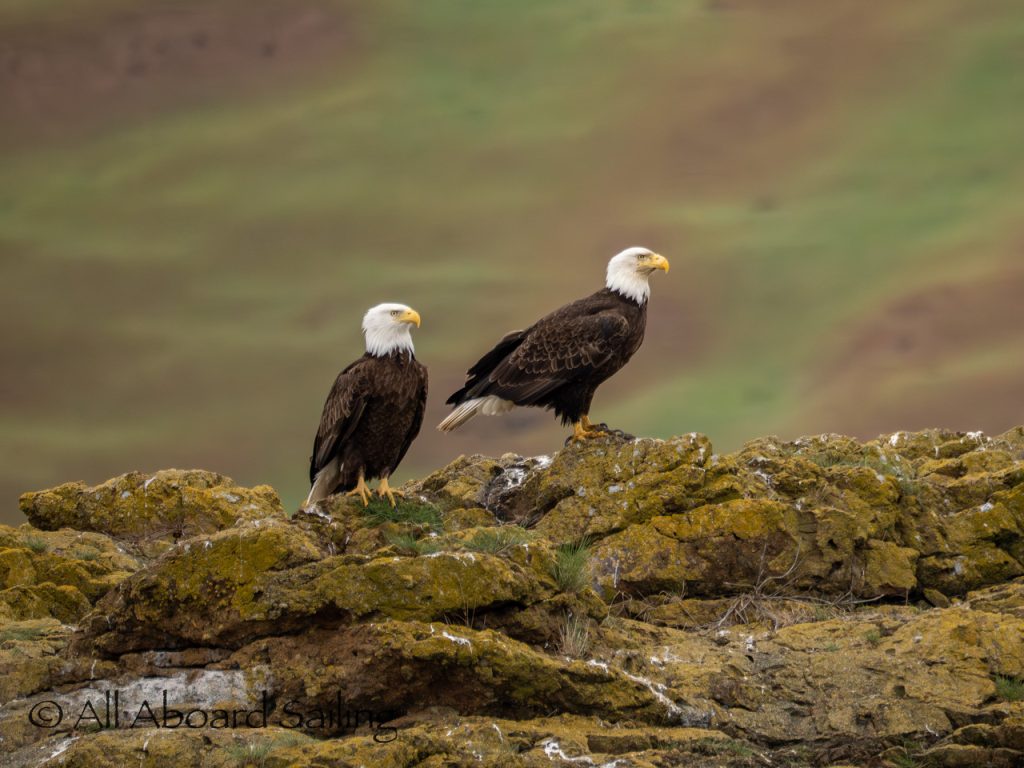 April 22, 2026 – After casting off from Friday Harbor we headed North after hearing reports of two Biggs/Transient male orcas over by D’Arcy Island. They had crossed Haro from Henry Island earlier that morning. Spieden Island was full of activity today. Steller sea lions hauled out including branded sea lion “929R”, bald eagles on shore, Mouflon sheep/rams and fallow deer in large herds and loads of Bonaparte’s gulls in the channel. We had a beautiful drift in the fast moving ebb current. Harbor seals were abundant on Sentinel Rock. After sticking close to Stuart Island to stay out of the strong ebb coming down Haro we made our crossing into Canada towards the orcas. The orcas identified as T49A2 (born 2007) and T51 (born ~1981) had traveled north to the top of Sidney Channel but flipped direction heading back south. We arrived on scene near D’Arcy and had some great views as they continued south. After departing the orcas we had a fast sail about 7+ knots towards Cattle Pass where we rode in on the flood current. Sailed through the narrow pass around Turn Island before returning back to Friday Harbor.