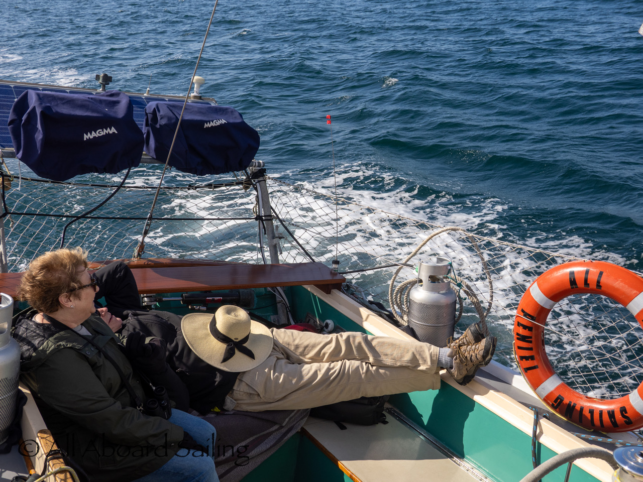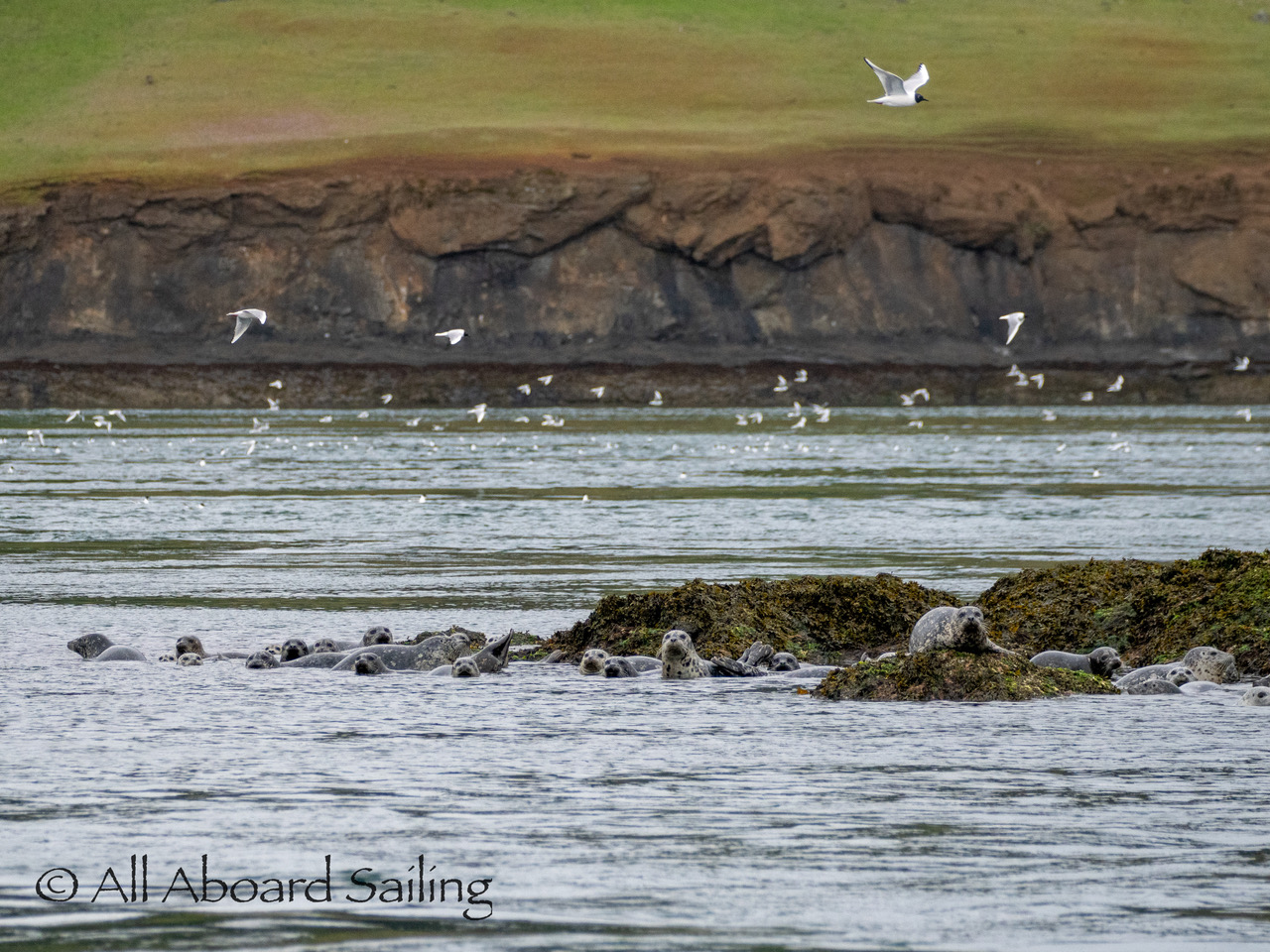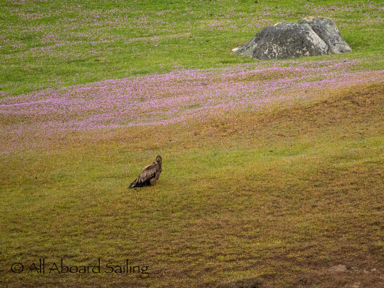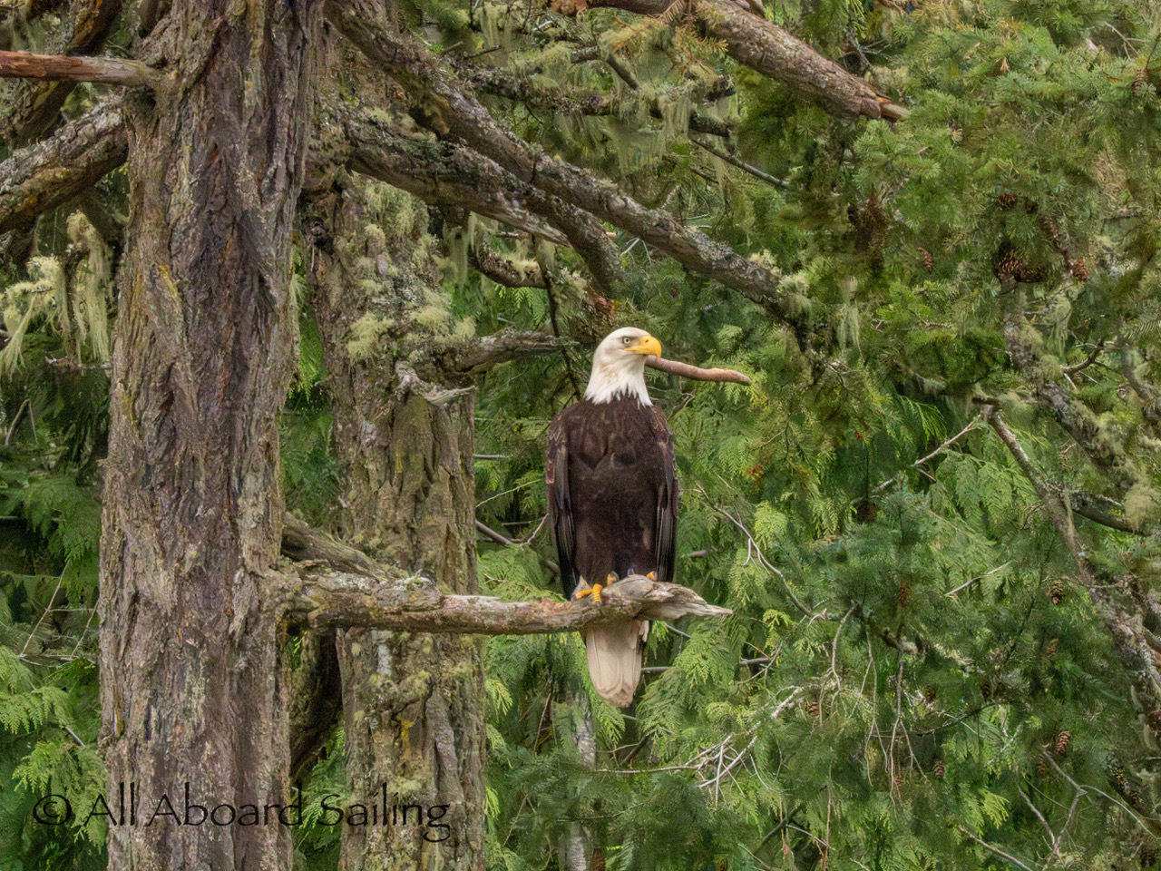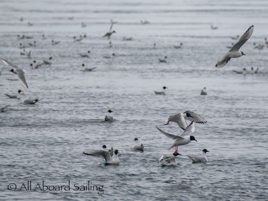 April 22, 2026 – After casting off from Friday Harbor we headed North after hearing reports of two Biggs/Transient male orcas over by D’Arcy Island. They had crossed Haro from Henry Island earlier that morning. Spieden Island was full of activity today. Steller sea lions hauled out including branded sea lion “929R”, bald eagles on shore, Mouflon sheep/rams and fallow deer in large herds and loads of Bonaparte’s gulls in the channel. We had a beautiful drift in the fast moving ebb current. Harbor seals were abundant on Sentinel Rock. After sticking close to Stuart Island to stay out of the strong ebb coming down Haro we made our crossing into Canada towards the orcas. The orcas identified as T49A2 (born 2007) and T51 (born ~1981) had traveled north to the top of Sidney Channel but flipped direction heading back south. We arrived on scene near D’Arcy and had some great views as they continued south. After departing the orcas we had a fast sail about 7+ knots towards Cattle Pass where we rode in on the flood current. Sailed through the narrow pass around Turn Island before returning back to Friday Harbor.